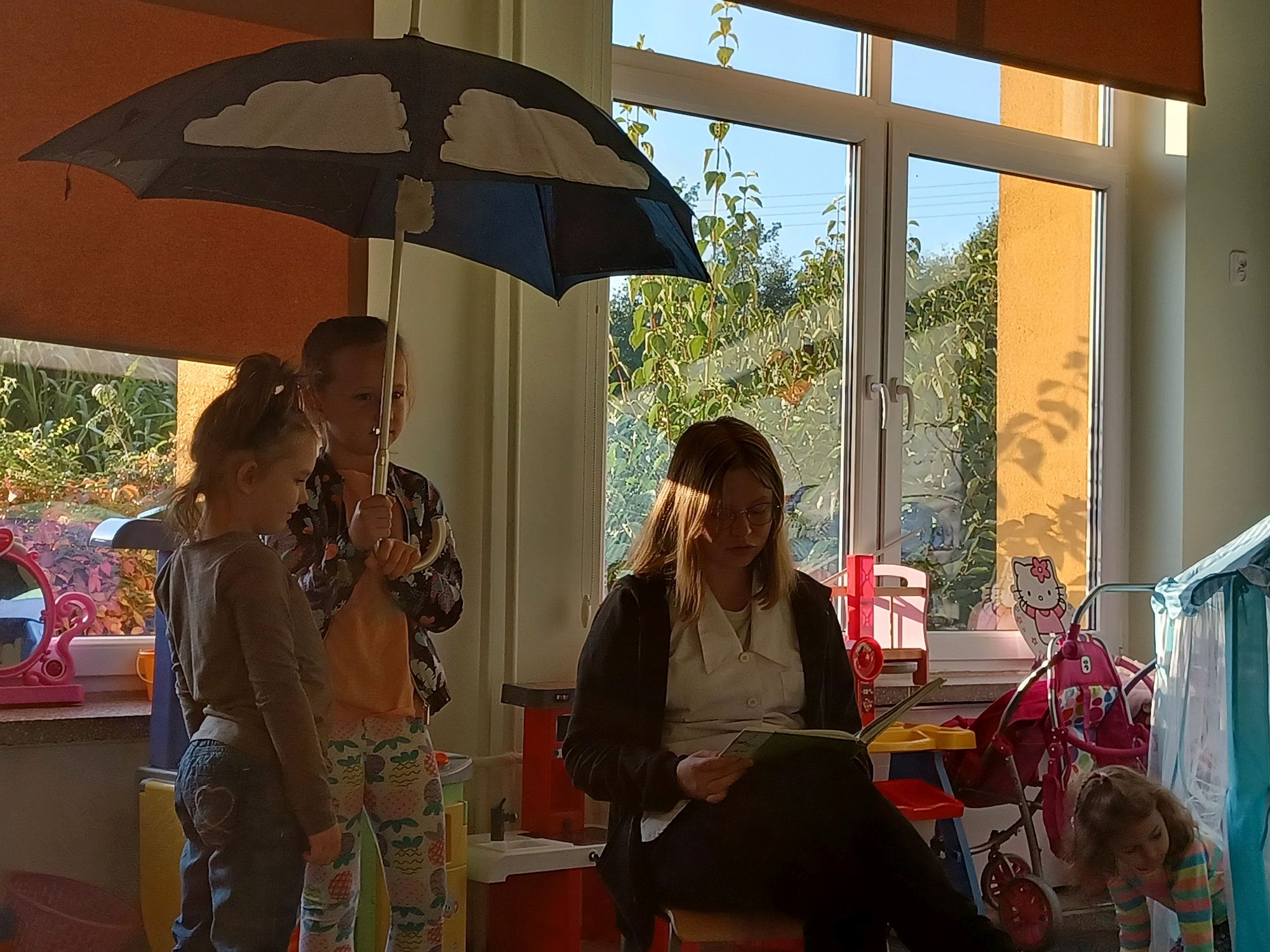 Kolejne „Czytanie pod chmurką” z okazji Miesiąca Bibliotek Szkolnych”, odbyło się ósmego października w zerówce. Dzieci dowiedziały się o tym jak opiekować się zwierzętami. Opowiadanie Barbary Kosmowskiej „Noga w nogę, łapa w łapę” ze zbioru „Opowiadania o zwierzętach” przeczytała Aurelia Giza. Była to także okazja do zachęcenia dzieci do odwiedzin w bibliotece i udziału w akcji „Mała książka wielki człowiek” . Dwoje dzieci z tej grupy otrzymało już w ubiegłym roku szkolnym imienne dyplomy za udział w tej akcji.