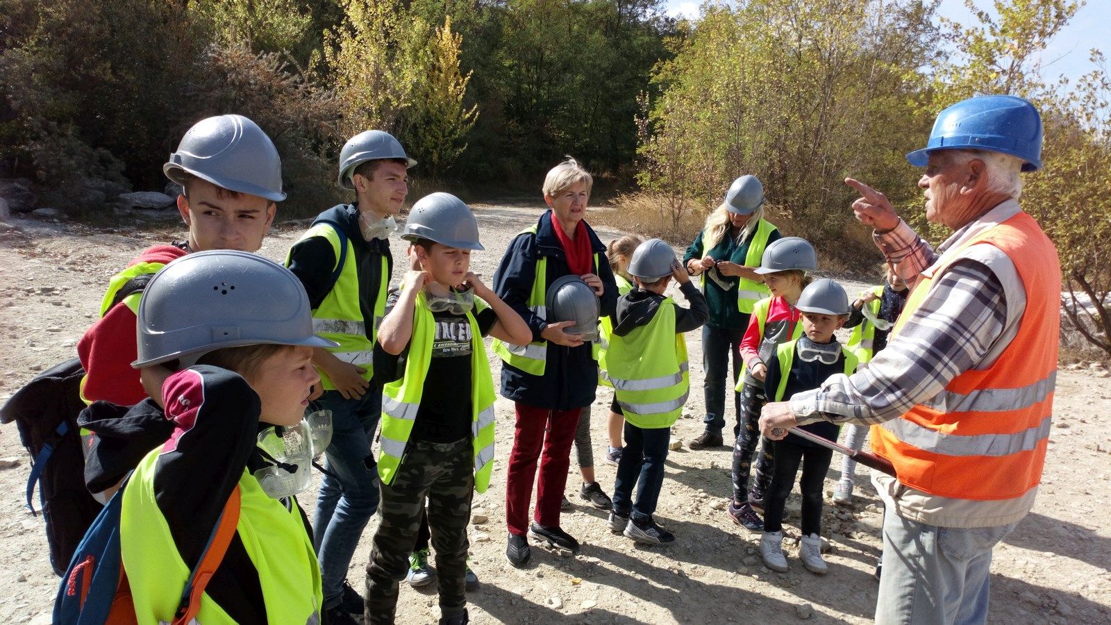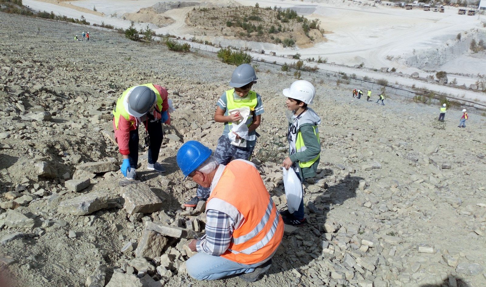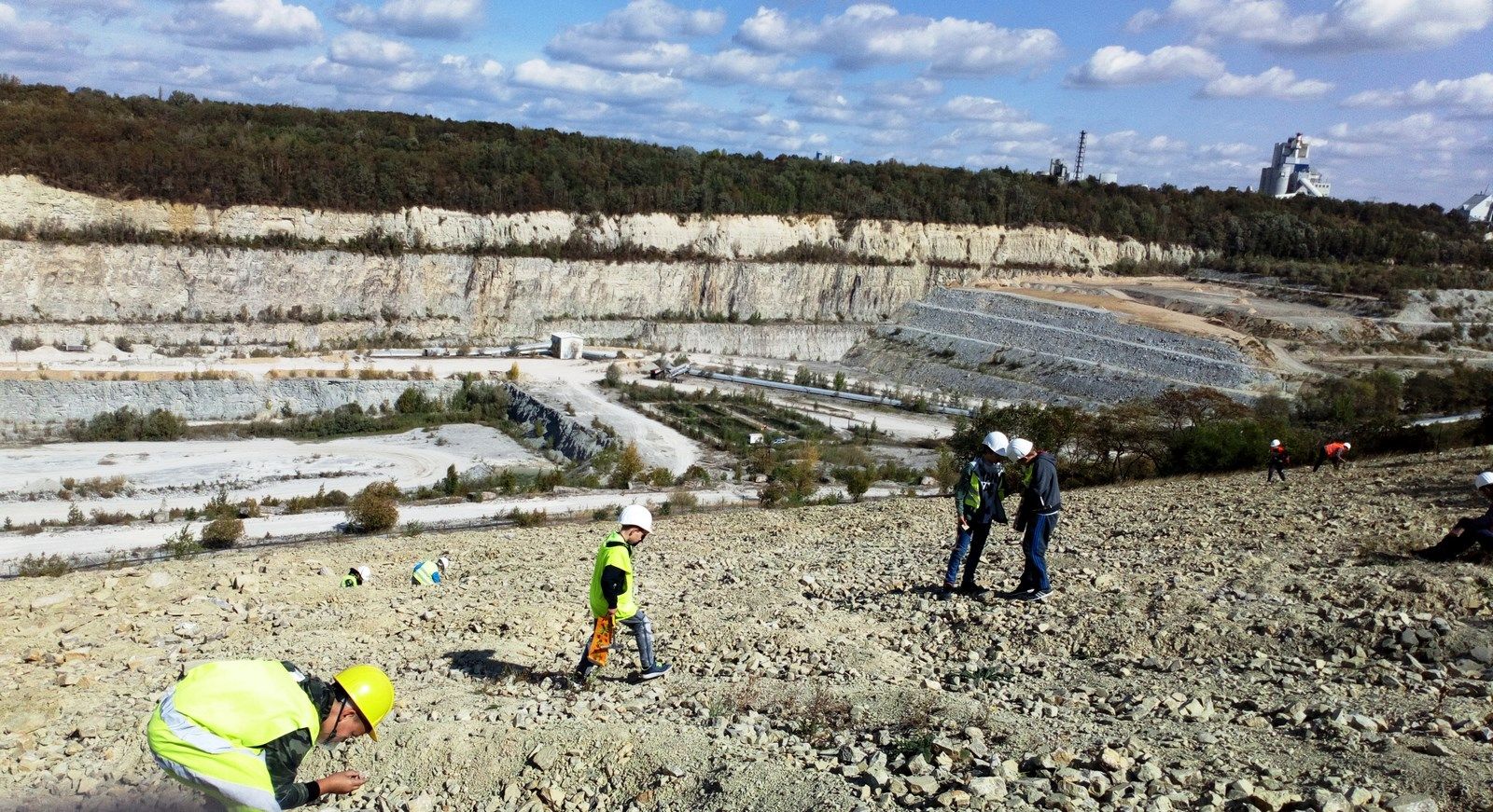 Byliśmy w Rudersdorf, w mieście z ogromnym kamieniołomem a właściwie kopalnią odkrywkową, z której pochodzą kamienie wapienne , z których wybudowano m.in Bramę Brandenburską, pałac Sanssouci, twierdzę Spandau, wiele berlińskich kościołów. Zwiedziliśmy wystawę ukazującą muszle, fragmenty wapieni, celestynów i innych minerałów a także zdjęcia przedstawiające pracę kopalni, dawne narzędzia górnicze, sposoby wykorzystania wapieni. Do ogromnego wyrobiska( 55m głębokości, 2 km długości) dowieziono nas terenowymi Land-Roverami. Tam uzbrojeni w kaski i młotki poszukiwaliśmy skarbów pozostawionych przez prehistoryczne morze. Śniadanie i obiad zjedliśmy w uroczej kawiarence, która mieści się w dawnym magazynie cementu. W spotkaniu uczestniczyło 18 dzieci z Niemiec i 15 uczniów z naszej szkoły. Organizatorami spotkania były Kluby Kiwanis z Frankfurtu nad Odrą i Zielonej Góry.