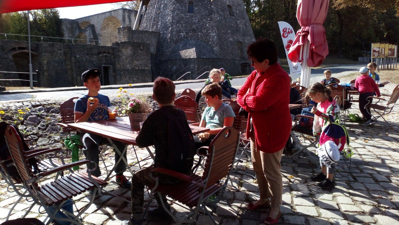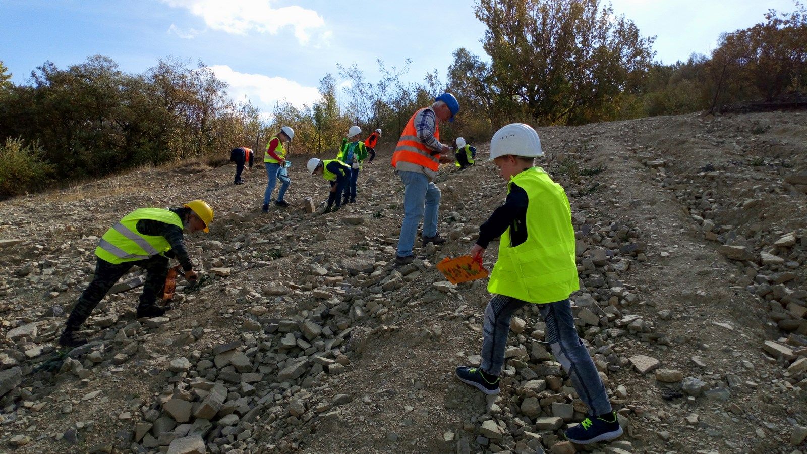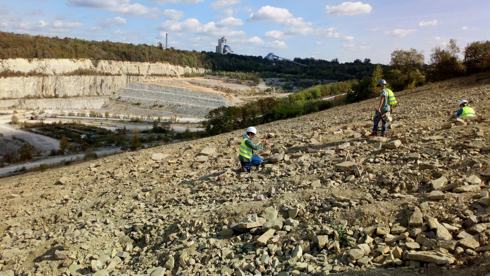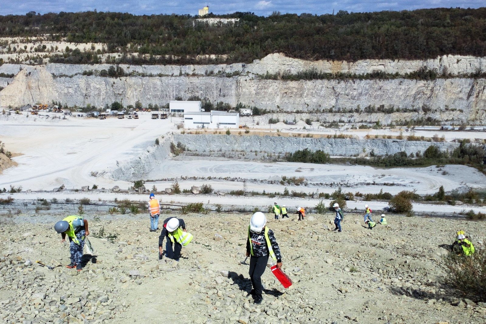 Byliśmy w Rudersdorf, w mieście z ogromnym kamieniołomem a właściwie kopalnią odkrywkową, z której pochodzą kamienie wapienne , z których wybudowano m.in Bramę Brandenburską, pałac Sanssouci, twierdzę Spandau, wiele berlińskich kościołów. Zwiedziliśmy wystawę ukazującą muszle, fragmenty wapieni, celestynów i innych minerałów a także zdjęcia przedstawiające pracę kopalni, dawne narzędzia górnicze, sposoby wykorzystania wapieni. Do ogromnego wyrobiska( 55m głębokości, 2 km długości) dowieziono nas terenowymi Land-Roverami. Tam uzbrojeni w kaski i młotki poszukiwaliśmy skarbów pozostawionych przez prehistoryczne morze. Śniadanie i obiad zjedliśmy w uroczej kawiarence, która mieści się w dawnym magazynie cementu. W spotkaniu uczestniczyło 18 dzieci z Niemiec i 15 uczniów z naszej szkoły. Organizatorami spotkania były Kluby Kiwanis z Frankfurtu nad Odrą i Zielonej Góry.