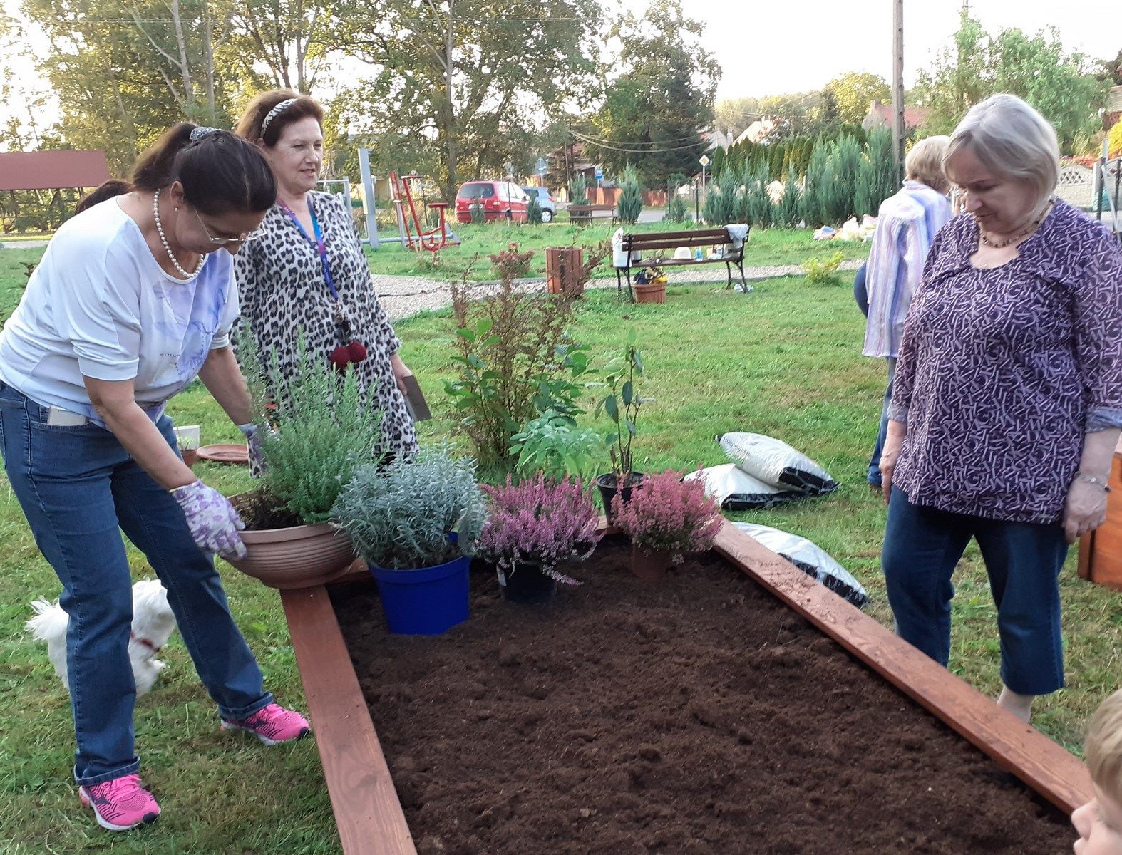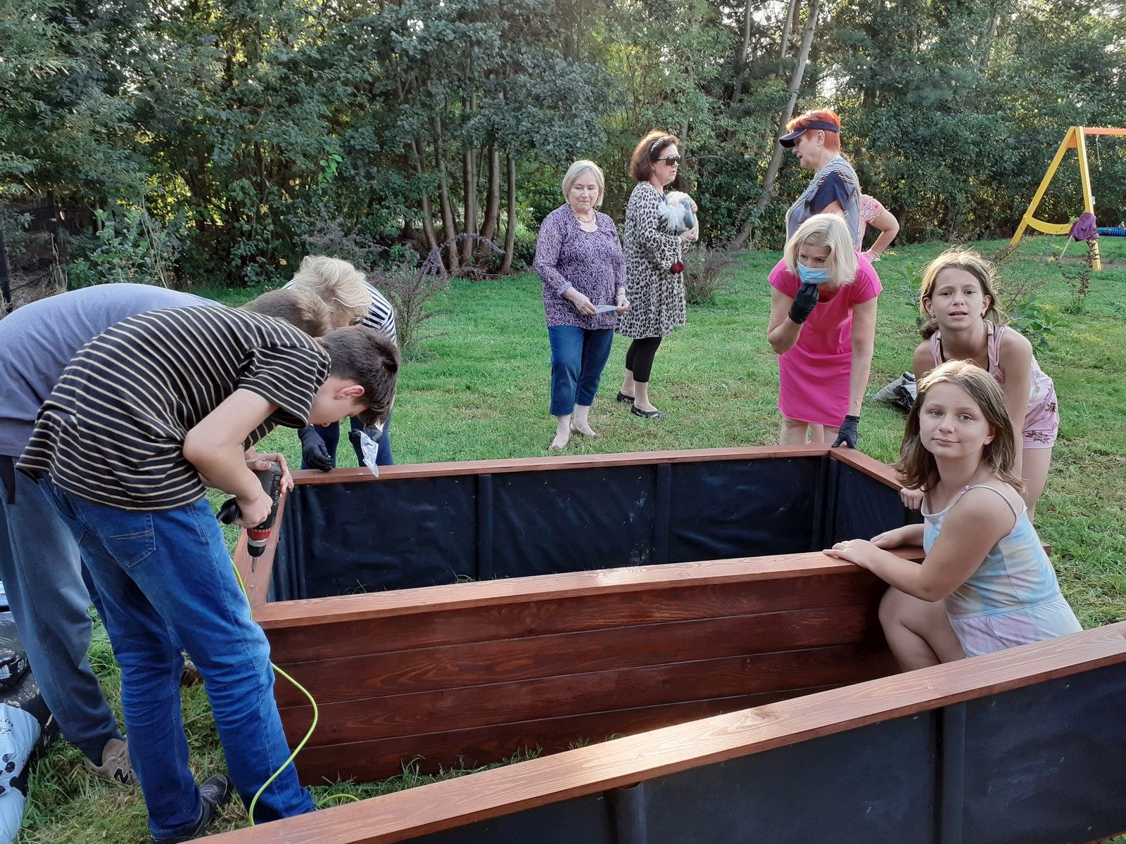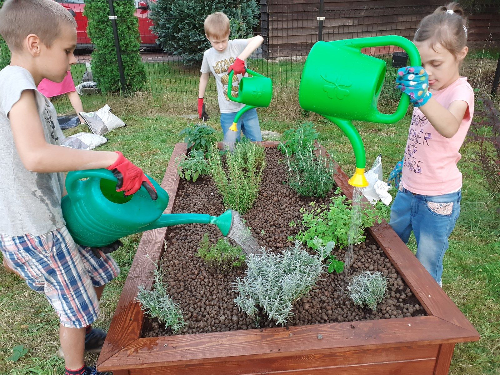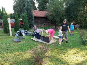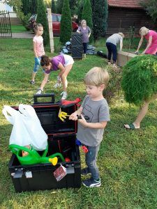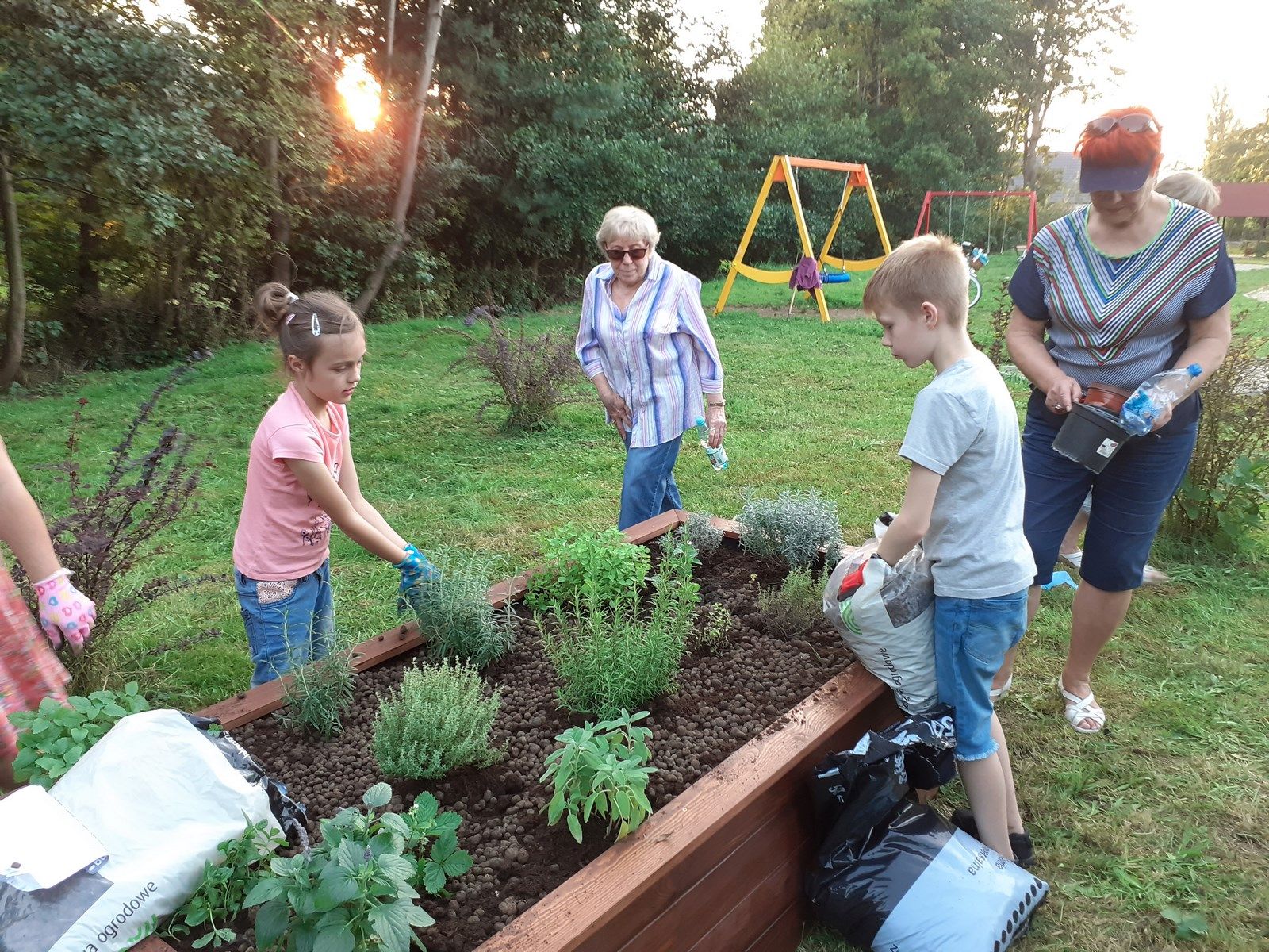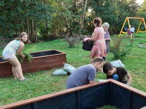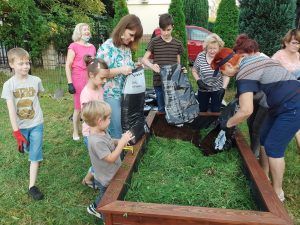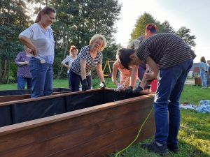 We wtorek po godzinie szesnastej, bardzo mocno zmobilizowana grupa uczniów i Pań z Klubu Kiwanis Zielona Góra ADSUM zaczęła plany Projektu Klima(t) wprowadzać w życie. Na terenie placu zabaw w Słonem stanęły dwie wzniesione grządki. Posadziliśmy w nich pierwsze rośliny : zioła, poziomki, wrzosy. Do prac spontanicznie włączyli się mieszkańcy Słonego i dzięki nim skręcanie skrzyń i dźwiganie worków z ziemię nie było już takie uciążliwe. Piękna pogoda, świetne towarzystwo, możliwość wspólnego działania i słuszny cel pracy spowodowały , że uśmiechy często gościł na naszych twarzach.