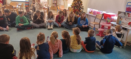 Akcja Adwentowe czytanie zainicjowana przezbibliotekę szkolną ma na celu wyrabianie nawykucodziennego czytania wśród dzieci. Zaczęliśmy czytaćz początkiem grudnia, codziennie po jednejopowieści z książki pt. „24 opowieści adwentowe.Czekając na Jezusa”. Jest to przykład książki, która pełni równocześnie rolę kalendarza adwentowego.Każde z opowieści niesie przesłanie nawiązujące do Świąt Bożego Narodzenia. Była zatem okazja dopodkreślenia tego, co jest ważne w oczekiwaniu na nie oraz jak obchodzi się je w innych krajach. Doczytania włączyły się dzieci przebywające w świetlicy, wychowawcy świetlicy, Pani katechetka i całaklasa siódma. Spotykamy się w bibliotece, świetlicy, odwiedziliśmy także zerówkę. Adwentoweczytanie będziemy kontynuować do dwudziestego drugiego grudnia.