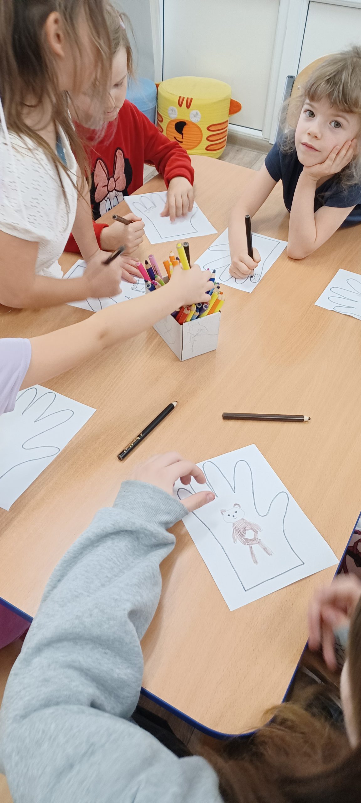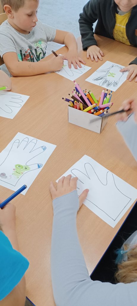 „Rękawiczka”. Po jej wysłuchaniu dzieci brały udział w zabawie plastycznej umieszczając wszystkich