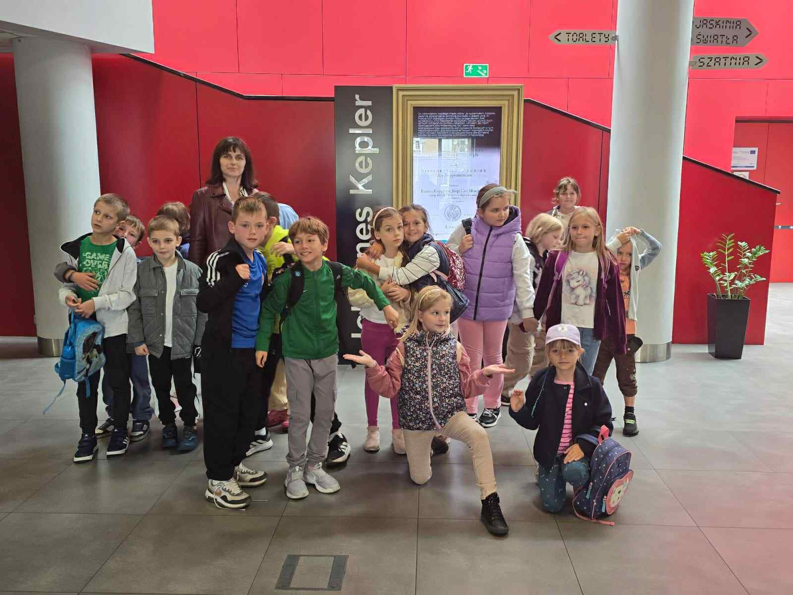 na zdjęciu uczniowie z wychowawcą w centrum Keplera