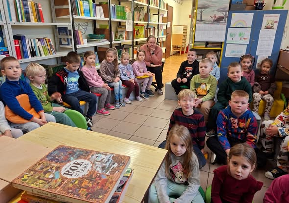 Drugiego grudnia bibliotekę szkolną odwiedziły dzieci z zerówki i oddziału przedszkolnego. Zapoznały się z różnorodnymi formami książek zgromadzonymi w jej zbiorach- obrazkowymi, z otwieranym okienkiem, trójwymiarowymi, kreatywnymi, audiobookami. Oglądały także i wysłuchały książki obrazkowej w formie teatru kamishibai pt. „Dwa ptaszki” Juliana Brudzewskiego z pięknymi ilustracjami Piotra Zatorskiego. Dzieci zostały zachęcone do regularnego odwiedzania biblioteki wraz z rodzicami w ramach kampanii społecznej Mała Książka Wielki Człowiek. Przedszkolak, który przyjdzie do biblioteki biorącej udział w projekcie otrzymuje w prezencie Wyprawkę Czytelniczą, a w niej Kartę Małego Czytelnika. Za każde odwiedzenie biblioteki Mały Czytelnik otrzymuje naklejkę, a po zebraniu dziesięciu zostaje uhonorowany dyplomem.