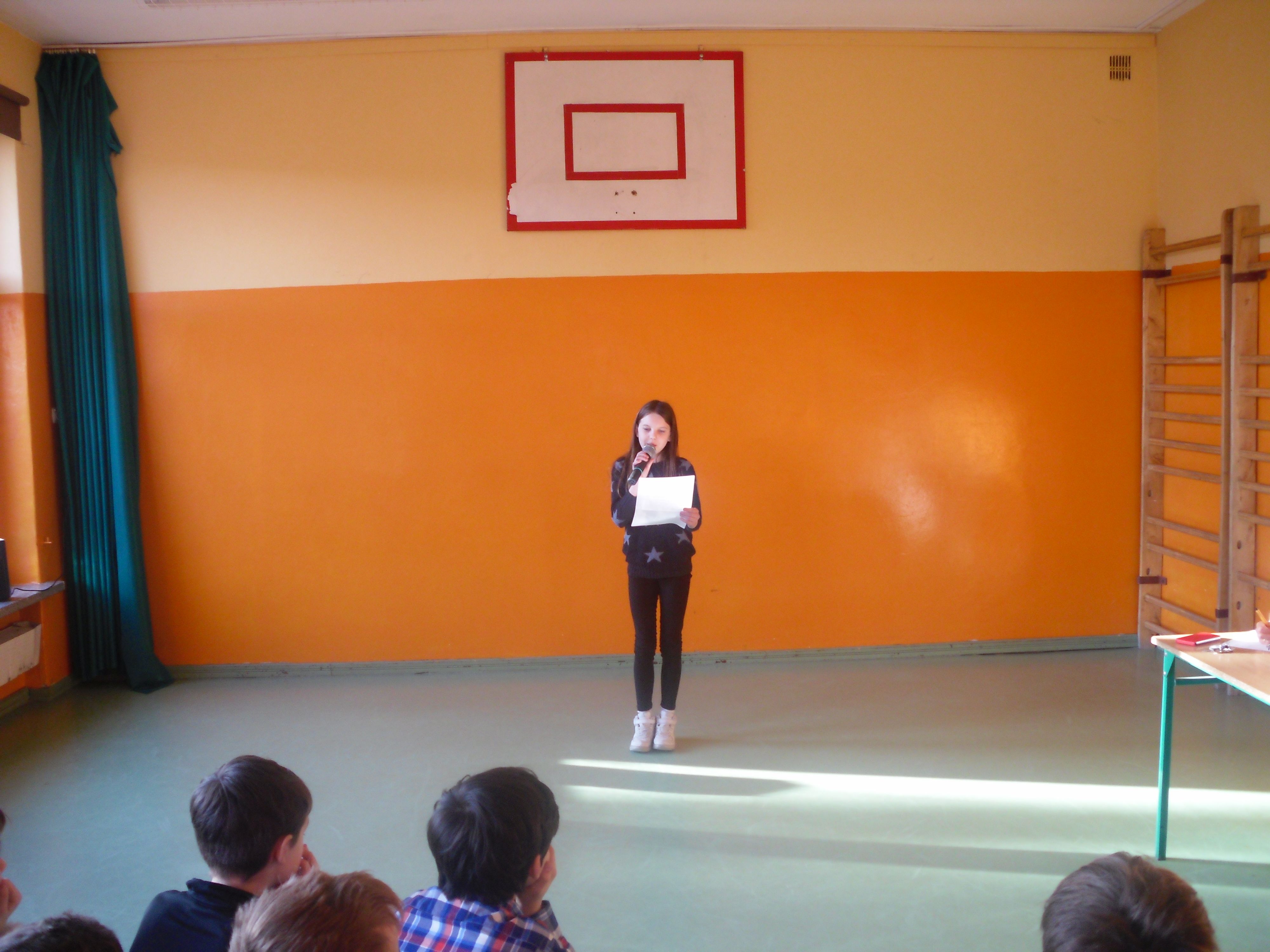 zakwalifikowano 15 najciekawszych prac. Jury miało trudny orzech do zgryzienia, gdyż poziom był wysoki i wyrównany. Uczniowie proponowali różne, ciekawe rozwiązania- od podwyżek dla nauczycieli po rozbudowę salki gimnastycznej. Co ciekawe, padały bardzo restrykcyjne propozycje ograniczania dostępu do smartfonów na terenie szkoły. Najlepiej wypadła w prezentacji uczennica klasy VI- Wiktoria Rosolska. Drugie miejsce zdobyła Iga Zapadka z klasy IV, a na trzecim miejscu znalazło się aż 5
