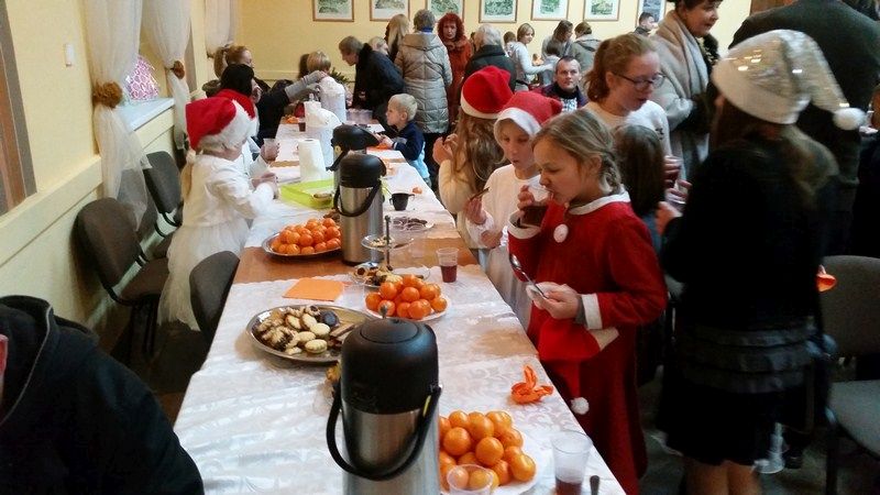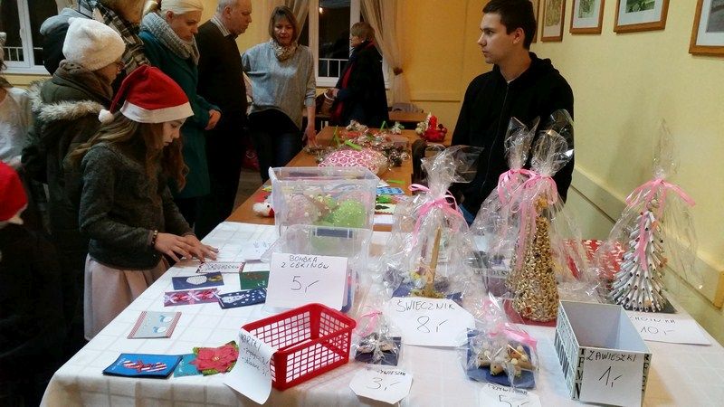 W ramach ” Świetlicowego kolędowania” odbył się także kiermasz świąteczny, podczas którego można było kupić m.in. pyszne pierniczki, piękne ozdoby świąteczne, kartki bożonarodzeniowe. Wszystko oczywiście wykonane przez dzieci i rodziców. Stoiska z ozdobami świątecznymi przygotowały dzieci ze szkoły w Słonem, świetlicy w Koźli oraz przedstawiciele Młodzieżowej Rady Gminy. Przyjemnym akcentem na zakończenie spotkania był słodki poczęstunek ufundowany przez Radę Rodziców, Klub Kiwanis i rodziców z Koźli.
