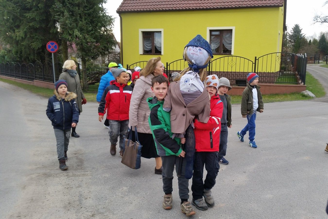 Później spacer z Marzanną i oczywiście tradycyjne topienie. ( Kukła w strumyku długo nie leżała.)