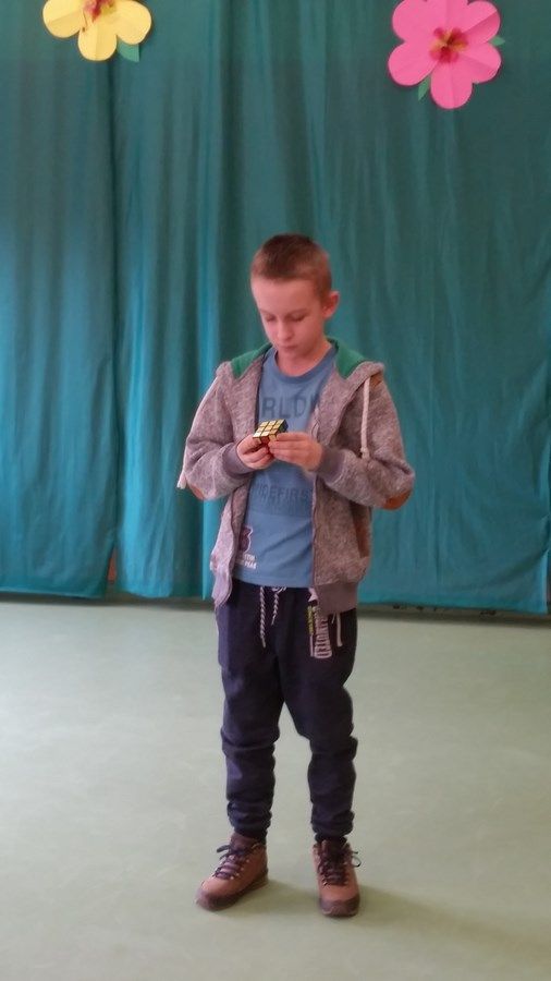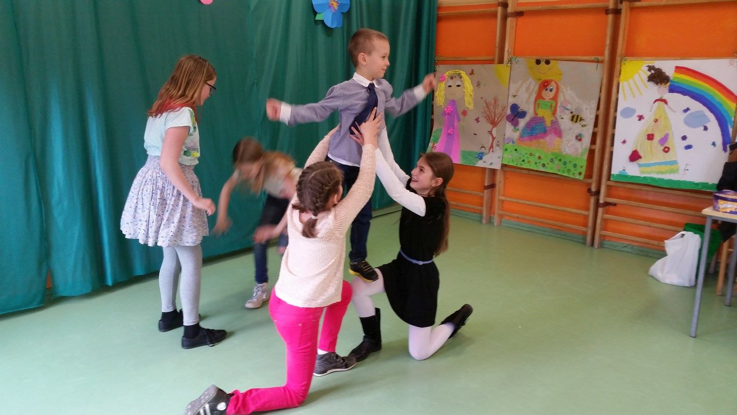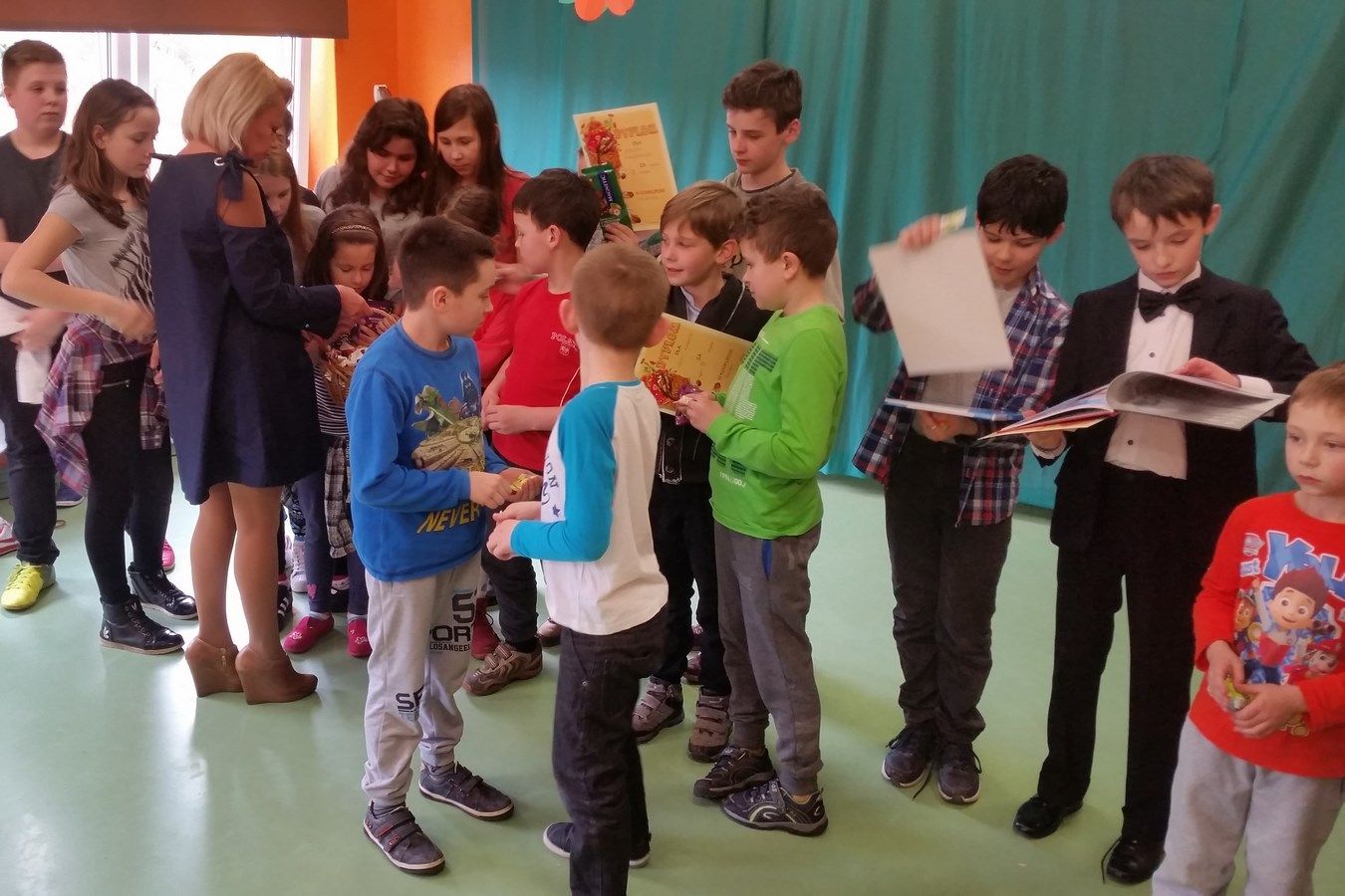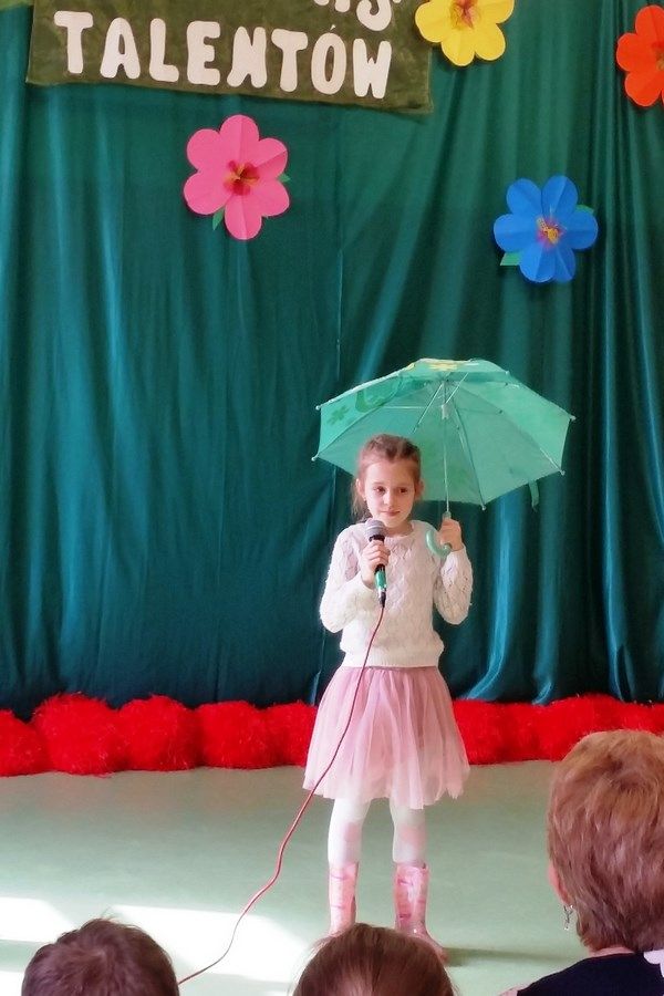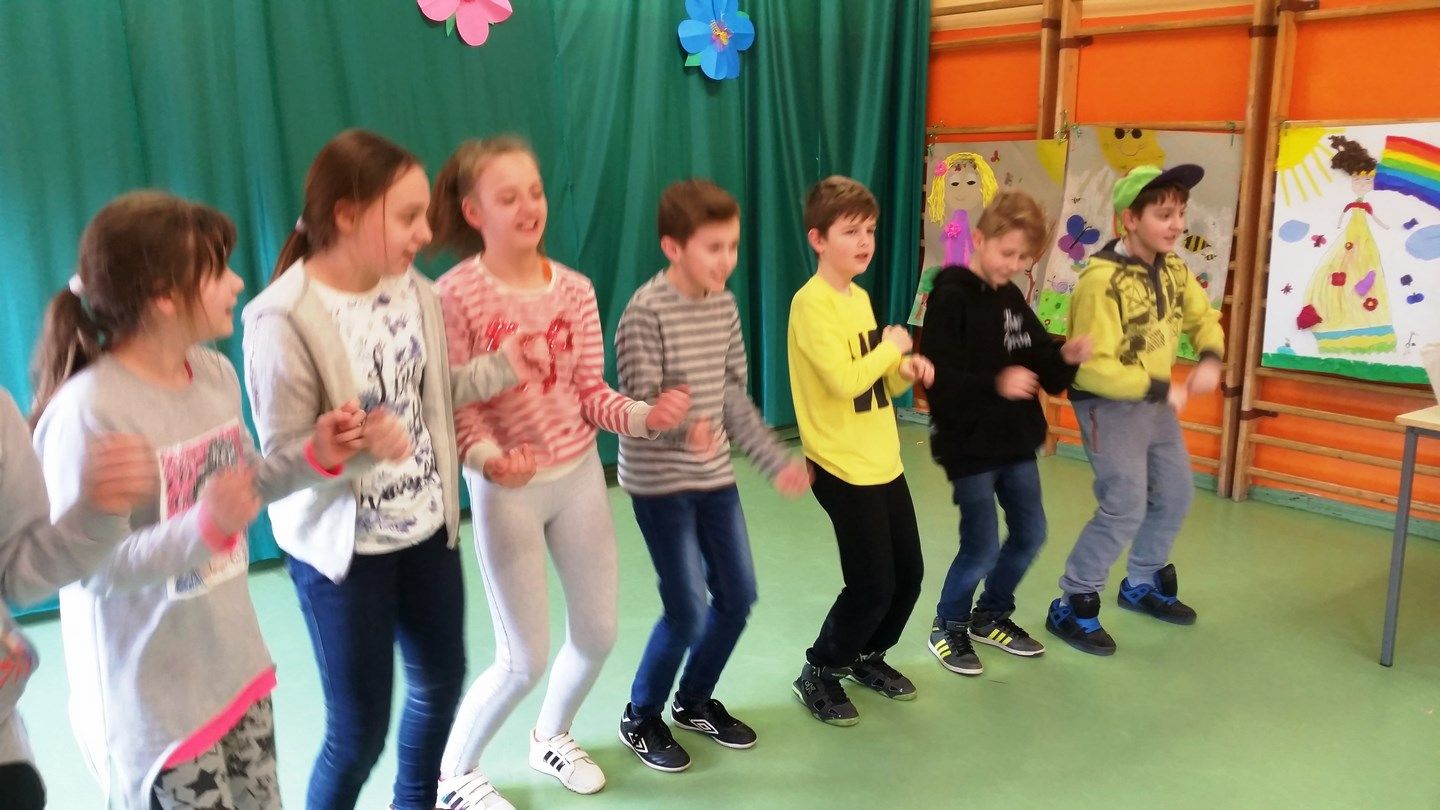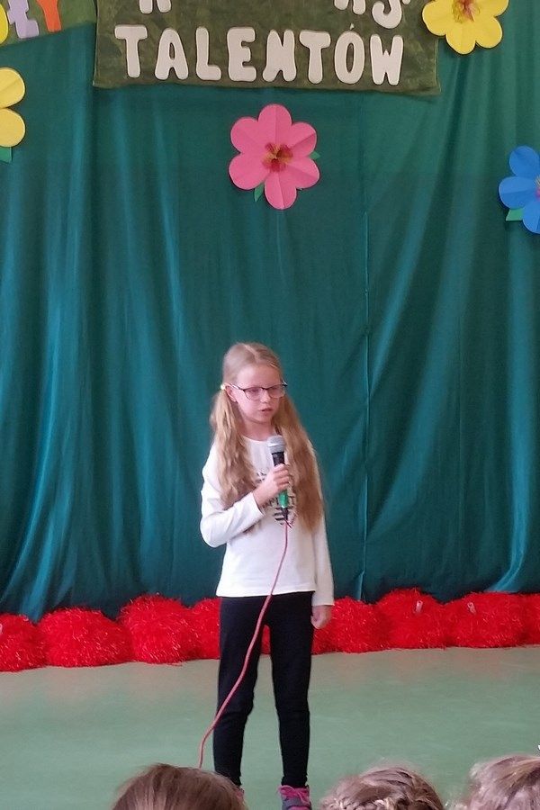 Dalszą część dnia wypełniliśmy naszymi umiejętnościami. W Konkursie Talentów chwaliliśmy się: śpiewem, tańcem, pokazami akrobatycznymi i karate, grą na gitarze, keyboardzie i akordeonie, układaniem na czas kostki Rubika, żonglerką piłką i kręceniem dwoma kołami hula-hop. Bawiliśmy się świetnie. Najciekawsze występy publiczność nagradzała brawami na stojąco. Jury miało ogromne problemy z przydzieleniem miejsc. Wszyscy byliśmy naj! Wśród uczniów klas młodszych I miejsce zajęła grupa taneczna z klasy III poprowadzona przez Oskara, który dodatkowo w Szkolnym Konkursie Talentów otrzymał tytuł „Najlepszego tancerza”. Wśród uczniów starszych I miejsce zajęli : akordeonista- Piotr Pawłowski i pianista Maciej Czekaj. Dużo emocji wywołała klasowa rywalizacja na najciekawszą choreografię do utworu „Pudi, Pudi”. Taneczne zmagania starszych kolegów oceniło bardzo liczne jury. Wszyscy uczniowie klas młodszych głosowali na ich zdaniem najciekawszy pokaz taneczny. Największą ilość głosów i tytuł ” Giga Pudi” zdobyła klasa VI. Poznaliśmy też wyniki konkursu plastycznego. Najpiękniejszą Panią Wiosnę namalowały dziewczyny z klasy V. Drugie miejsce zdobyła praca dziewczynek z klasy IV a trzecie Tęczowa Wiosna chłopców z klasy IV. Na zakończenie obchodów Dni Szkoły wręczono nagrody najlepszym graczom w szachy i warcaby.