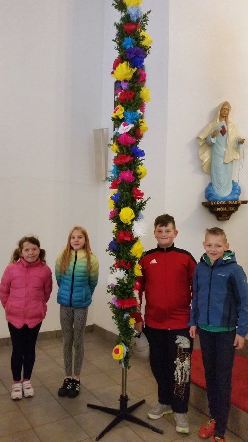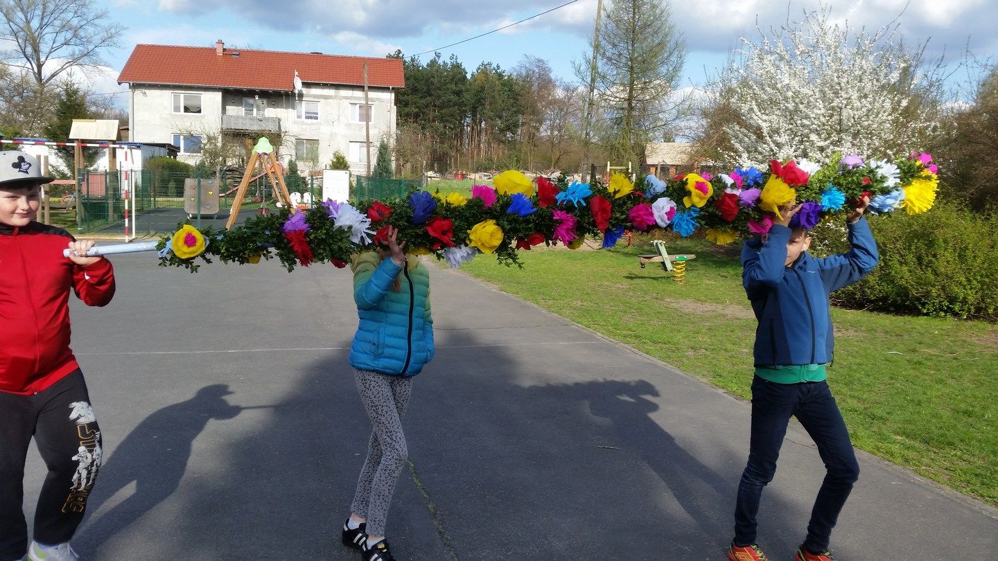 Tradycyjnie już, przed Niedzielą Palmową podczas zajęć świetlicy środowiskowej pracowaliśmy nad wykonaniem przepięknej palmy wielkanocnej. W produkcję kwiatów włączyła się też klasa IV. Nasza 3,5 metrowa palma stanęła już w Kościele w Słonem. Bardzo jesteśmy z niej dumni. Materiały plastyczne i roślinne otrzymaliśmy od Rady Sołeckiej wsi Słone.