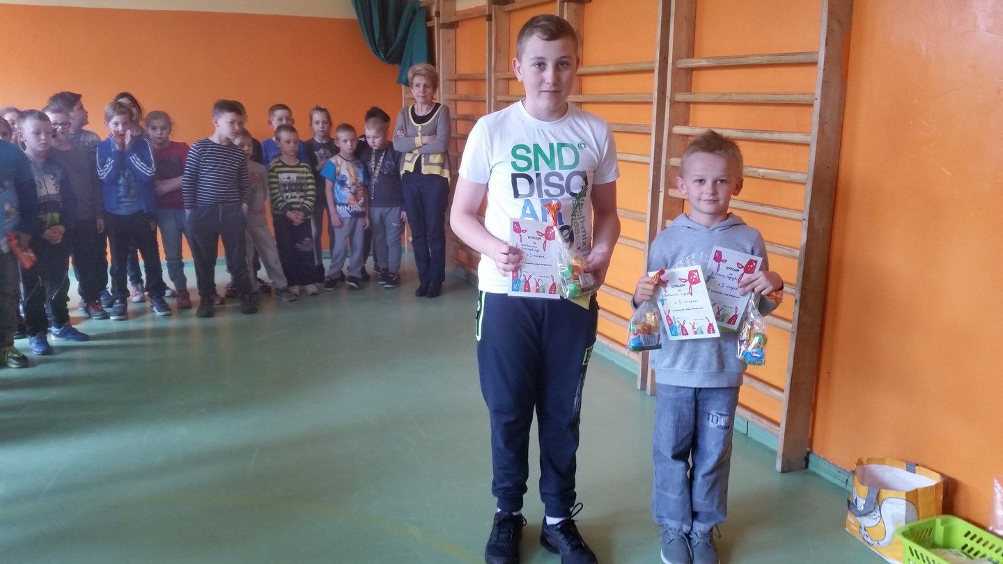 Przyznano też nagrody dzieciom z kl. „0” : Marcie Korotusz i Oliwierowi Śliwa.
