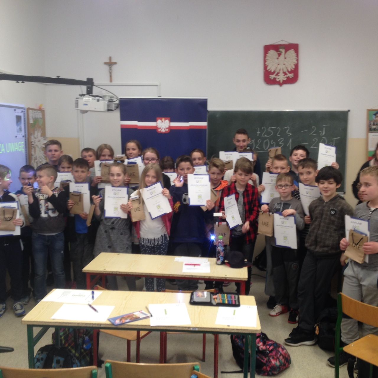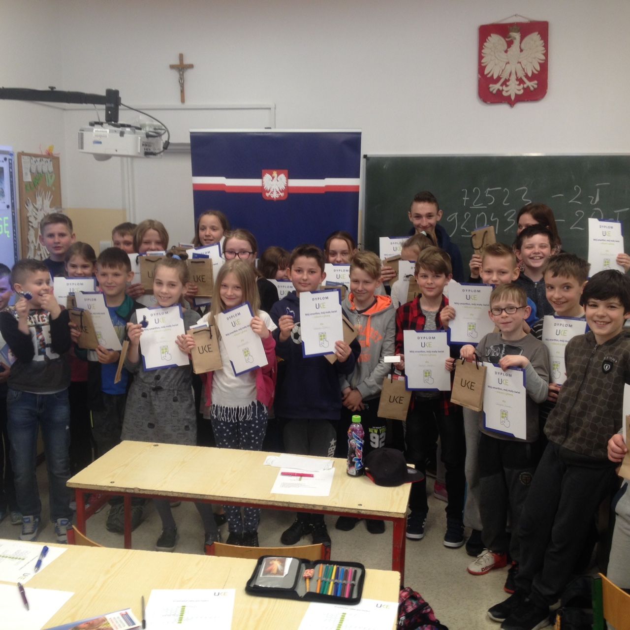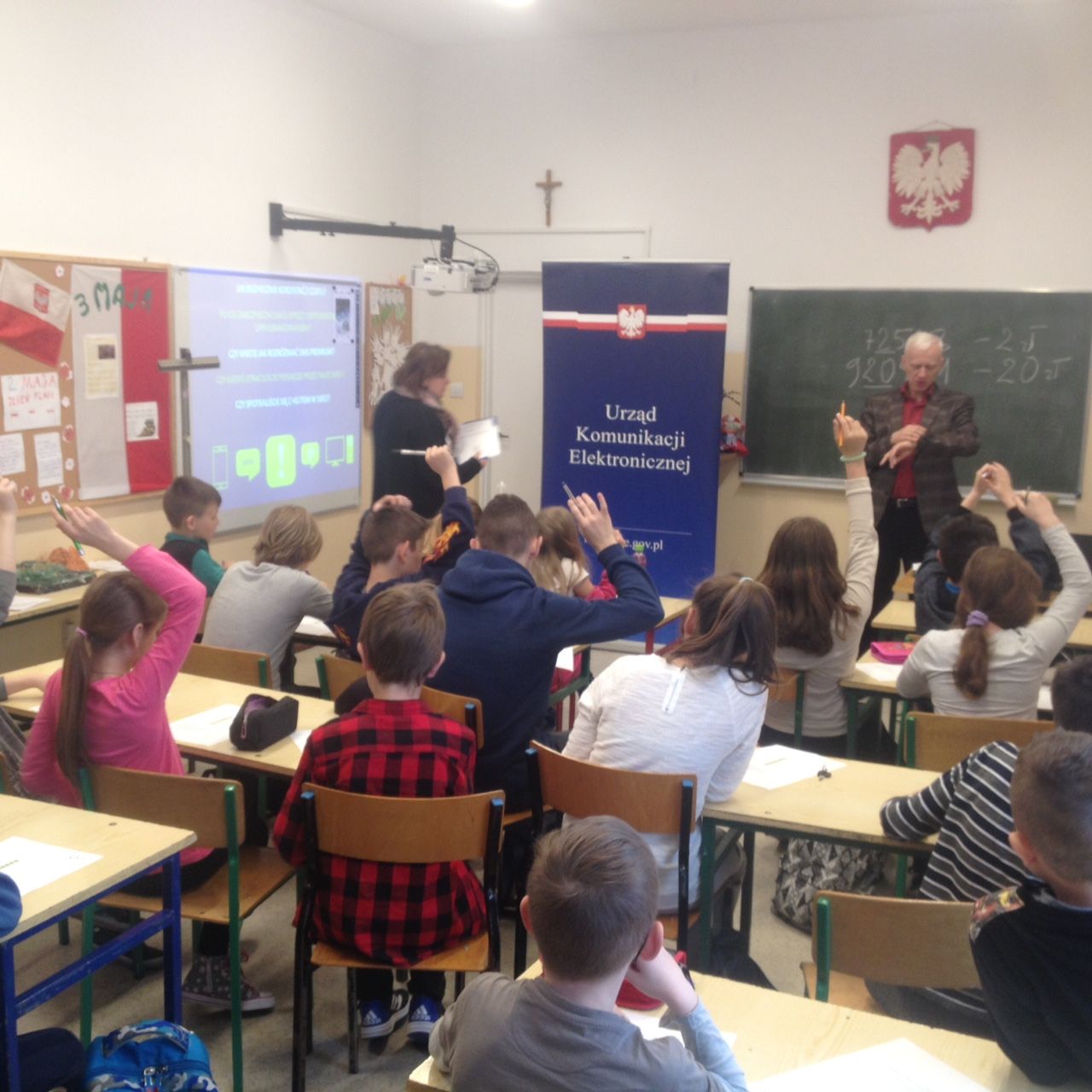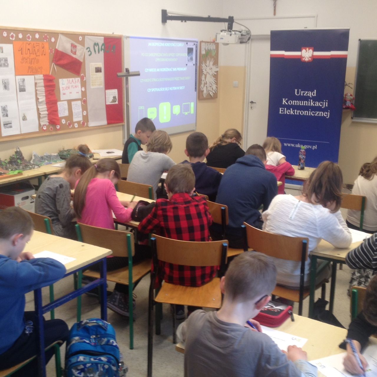 9 maja 2017 r. gościliśmy przedstawicieli Urzędu Komunikacji Elektronicznej, którzy przeprowadzili w klasach IV-VI pogadankę na temat bezpieczeństwa w sieci. Dostarczyli uczniom wiedzy o ochronie prywatności i danych osobowych oraz zasadach bezpiecznego korzystania z Internetu. Goście zaprezentowali film edukacyjny oraz przeprowadzili konkurs w formie krzyżówki. Na zakończenie spotkania wszyscy uczniowie otrzymali upominki i dyplomy.