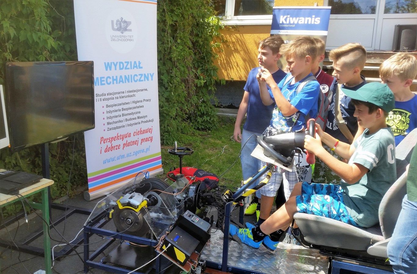 Wspaniałe atrakcje: symulator jazdy studentów UZ z Wydziału Mechanicznego, pokaz karate, popisy strażaków, tresura psów policyjnych, elektryczny samochód oraz jazda motocyklem.