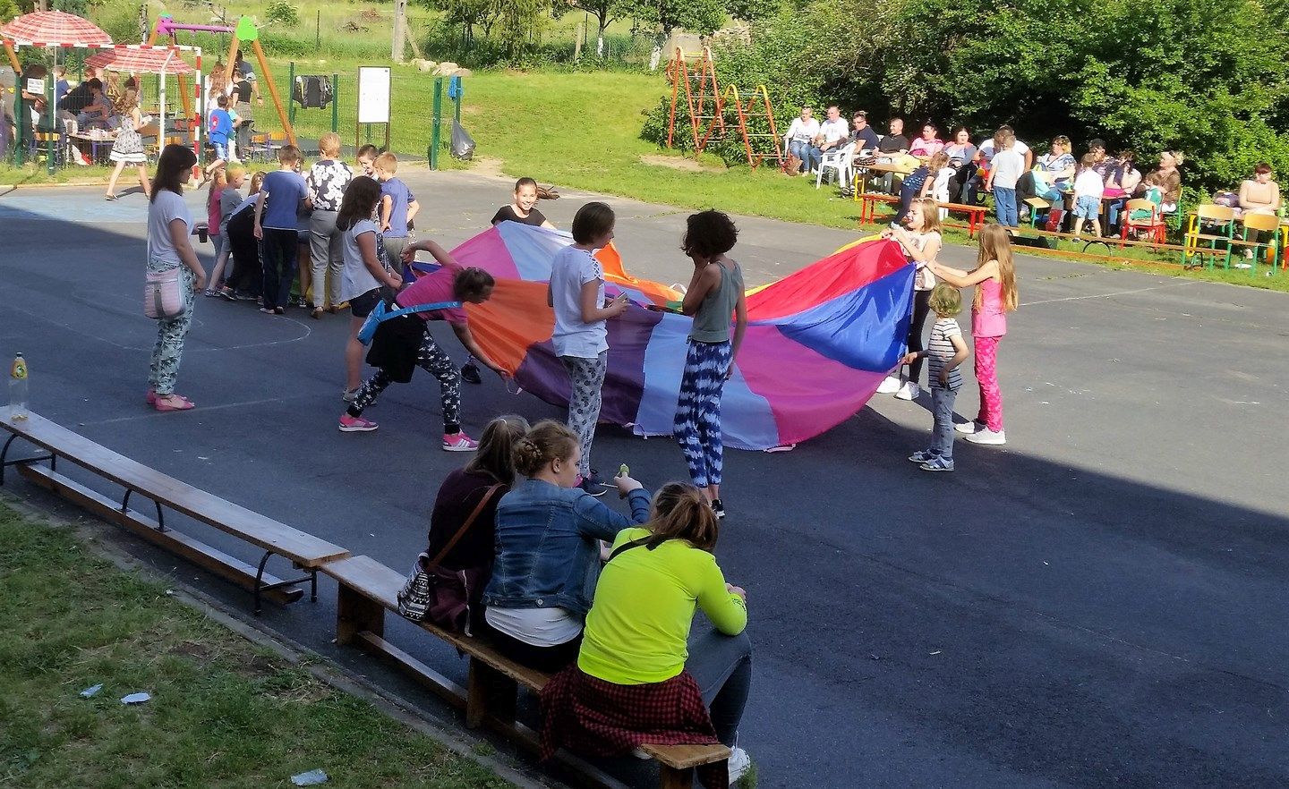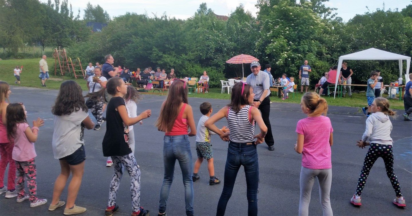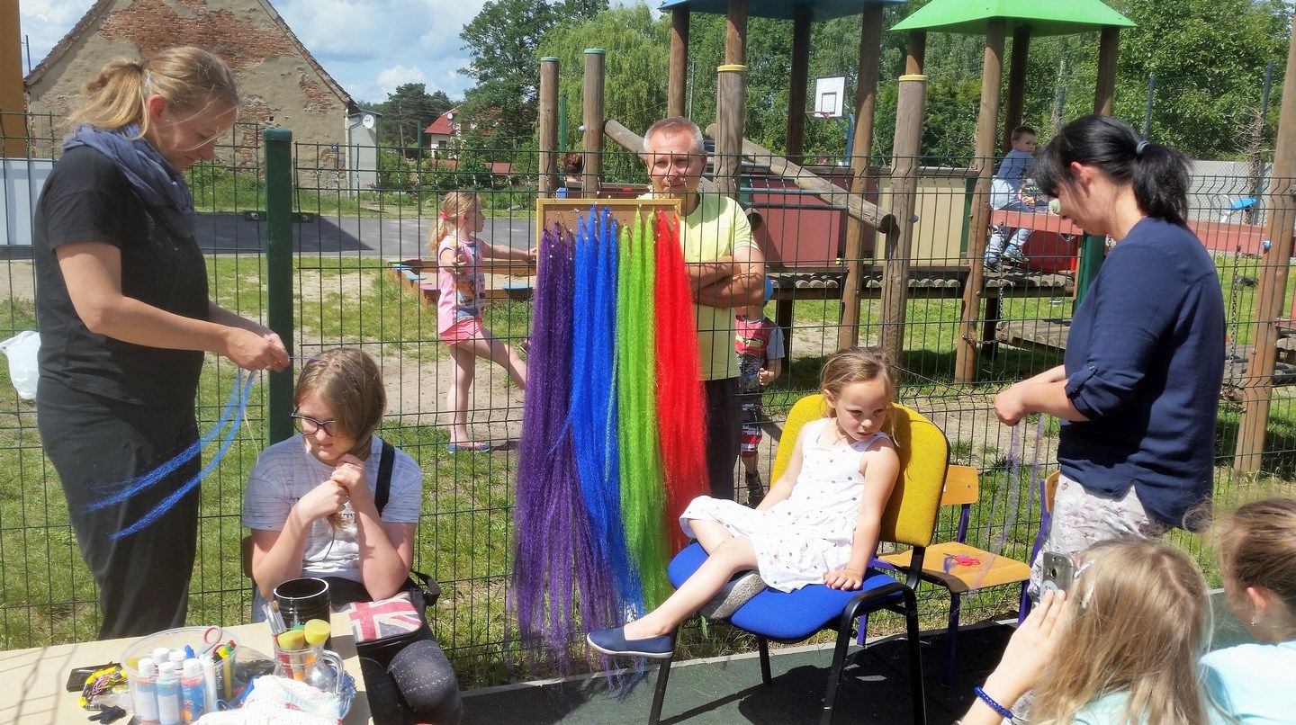 Dobra zabawa dla dzieci i dorosłych: konkursy sprawnościowe, malowanie twarzy, włosów i kolorowe warkoczyki, turniej rodzin, tańce z ks. Dariuszem oraz loteria i aukcja.