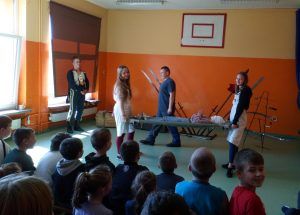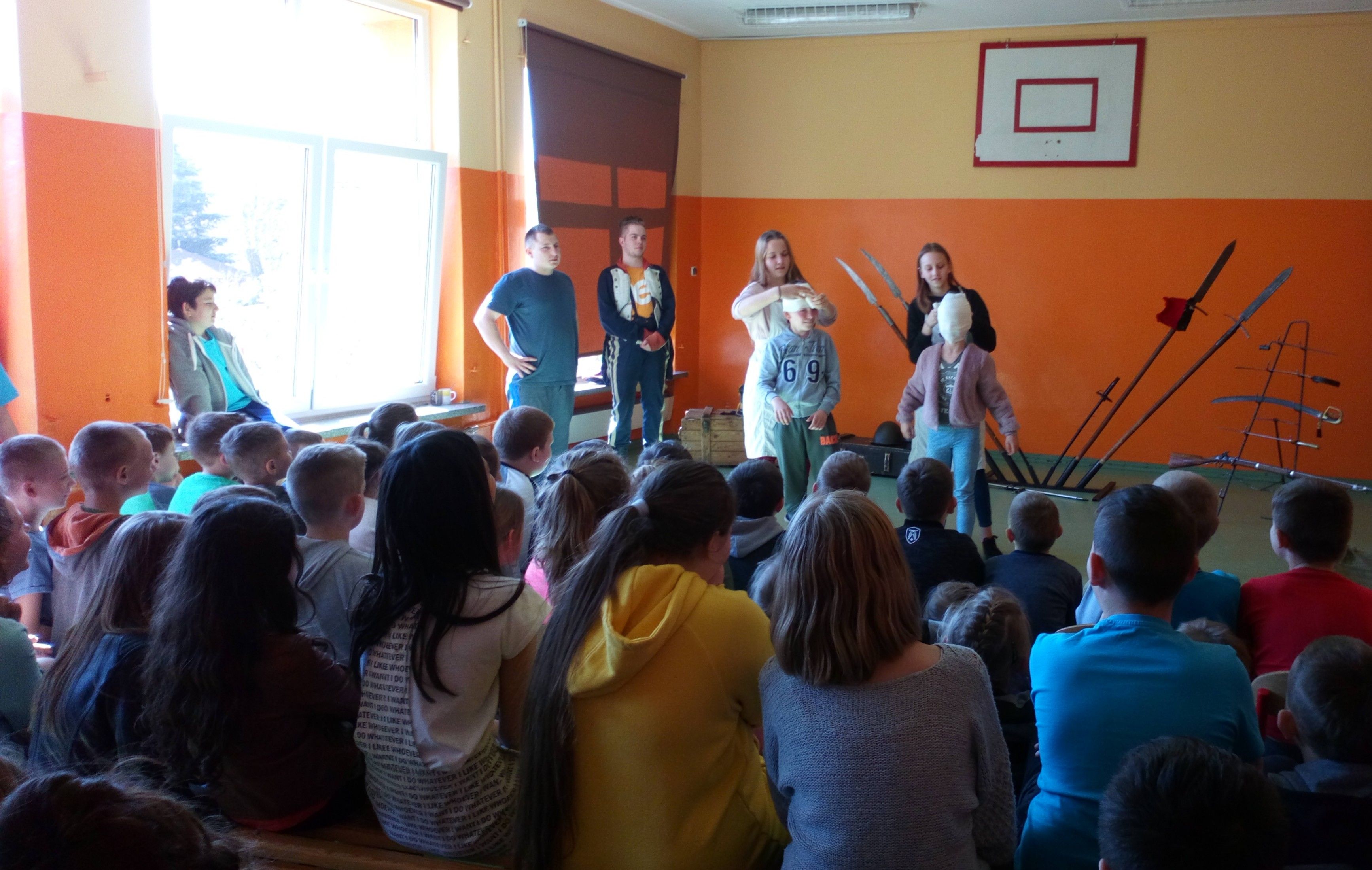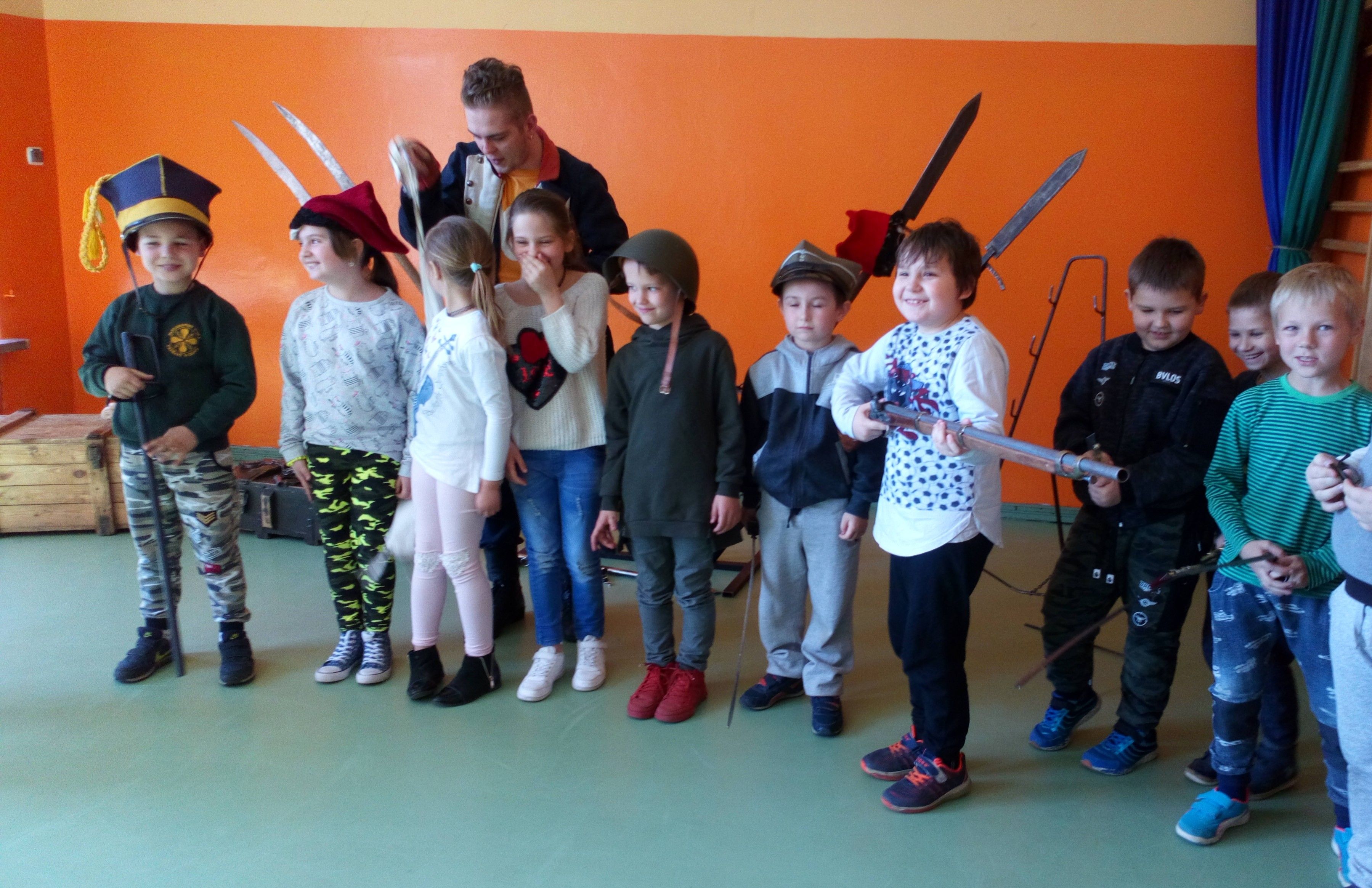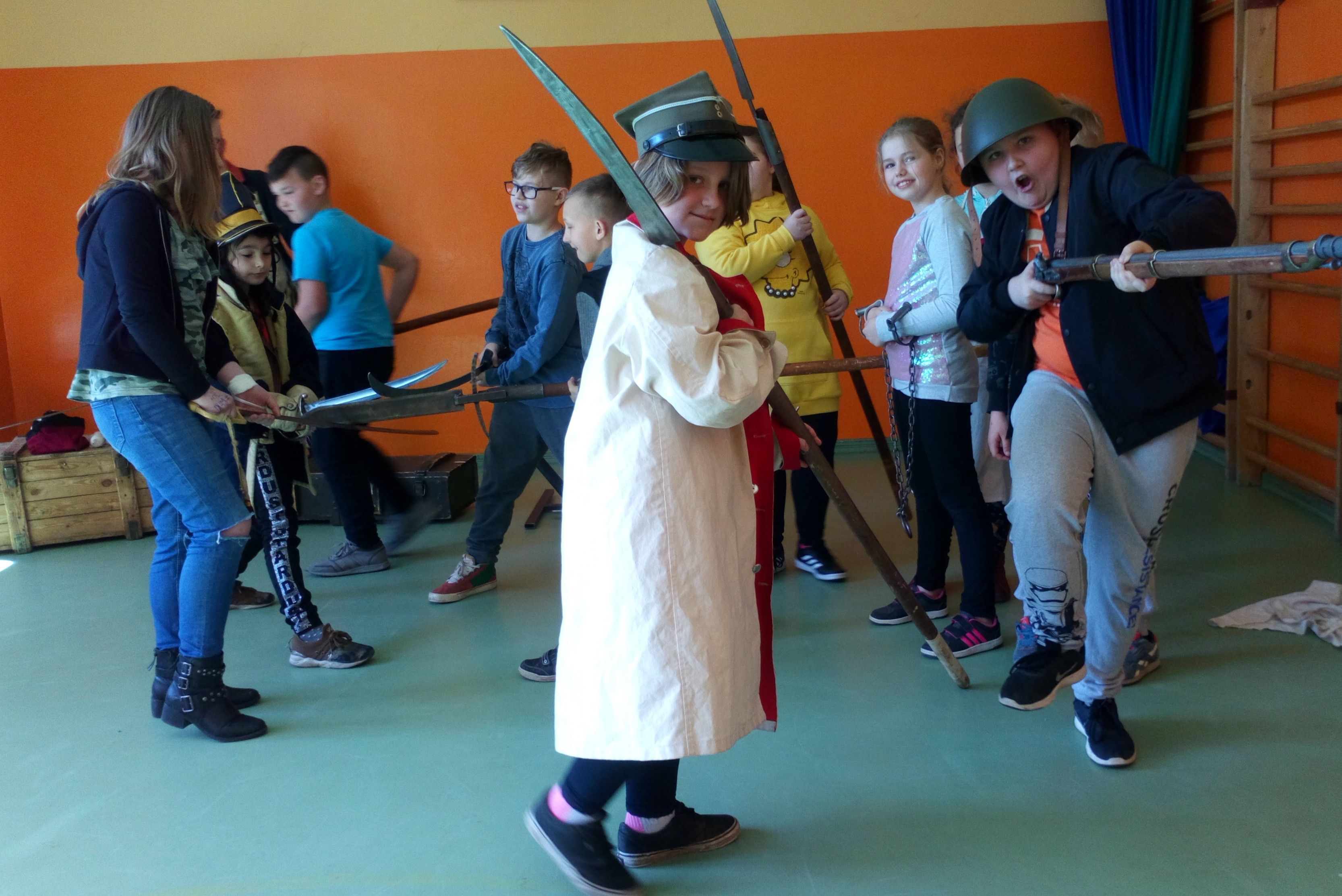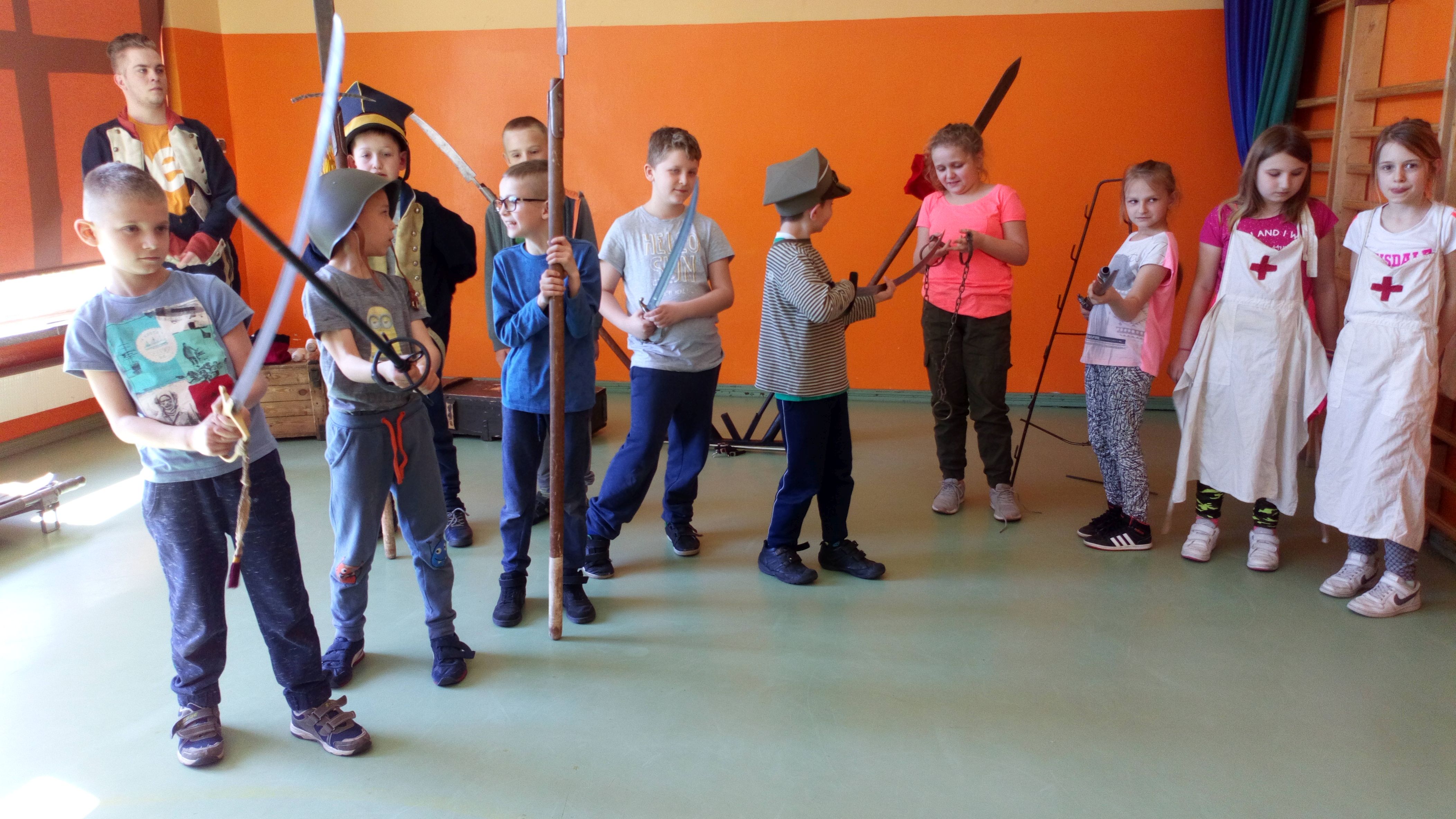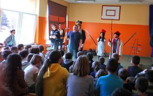 4 kwietnia gościliśmy w naszej szkole Grupę Artystyczną Rekonstrukto, która w formie pokazu przedstawiła nam opowieść o tym jak bohaterowie walczyli o wolność, honor i ojczyznę. Wesoła lekcja historii, upamiętniła dążenia niepodległościowe. Obejrzeliśmy stroje z epoki (szwoleżer, powstaniec, kosynier, oficer I brygady Legionów Polskich), kolekcję replik broni używanych przez powstańców i w I wojnie światowej.
