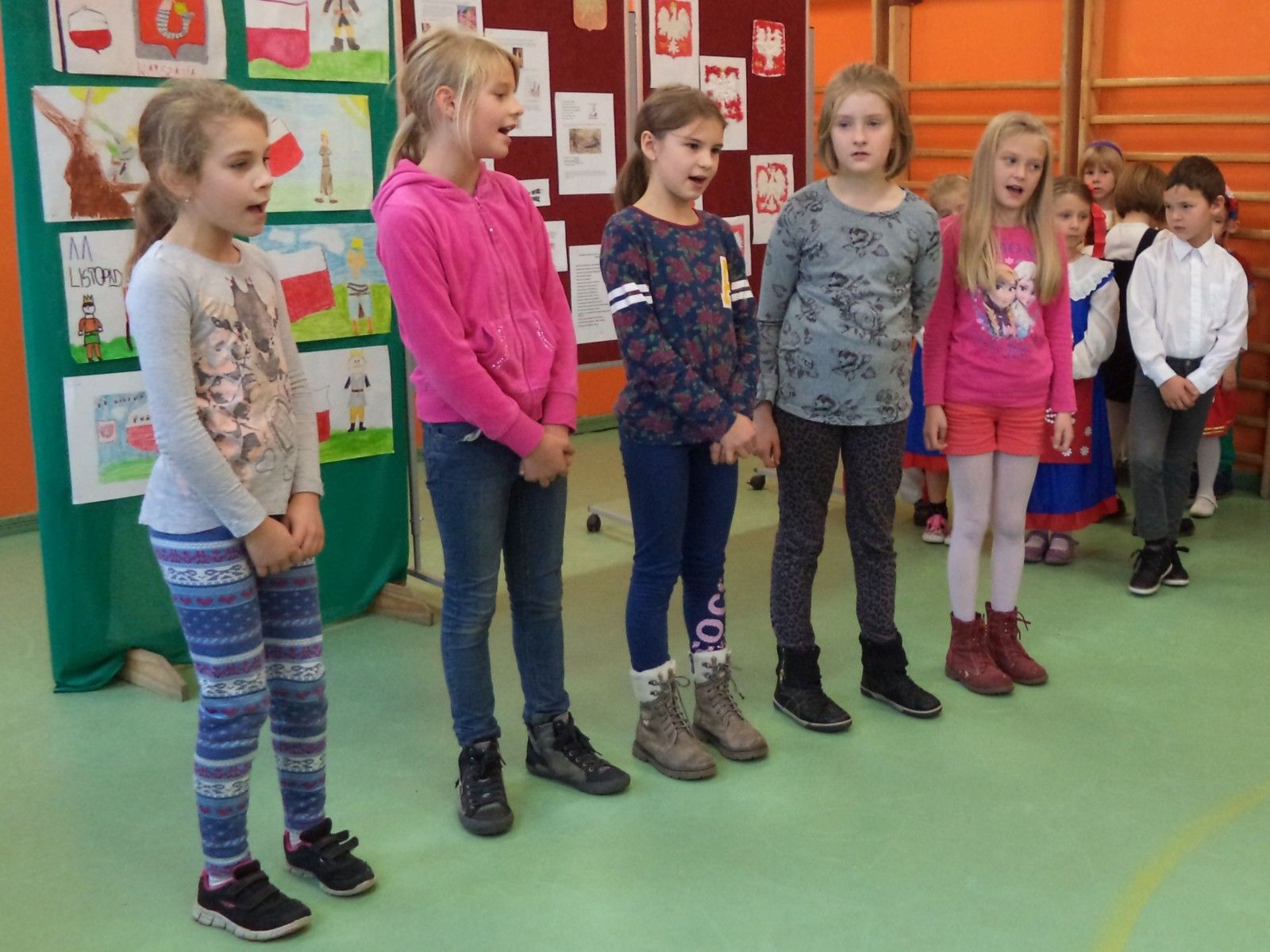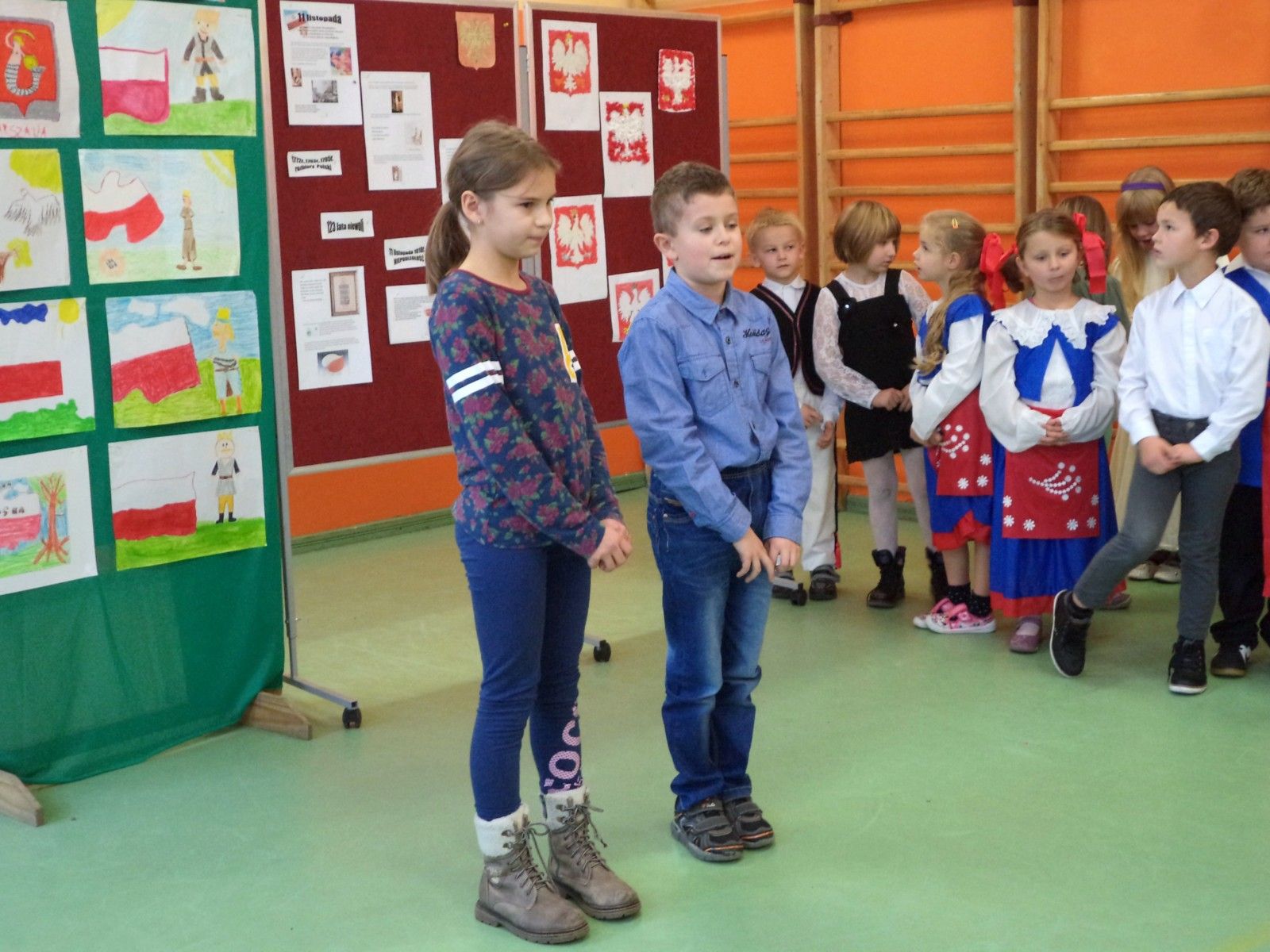 Obchody 11 listopada zakończyła uroczysta akademia, podczas której uczniowie klas I – III prezentowali wiersze i piosenki o ojczyźnie oraz tańce narodowe.