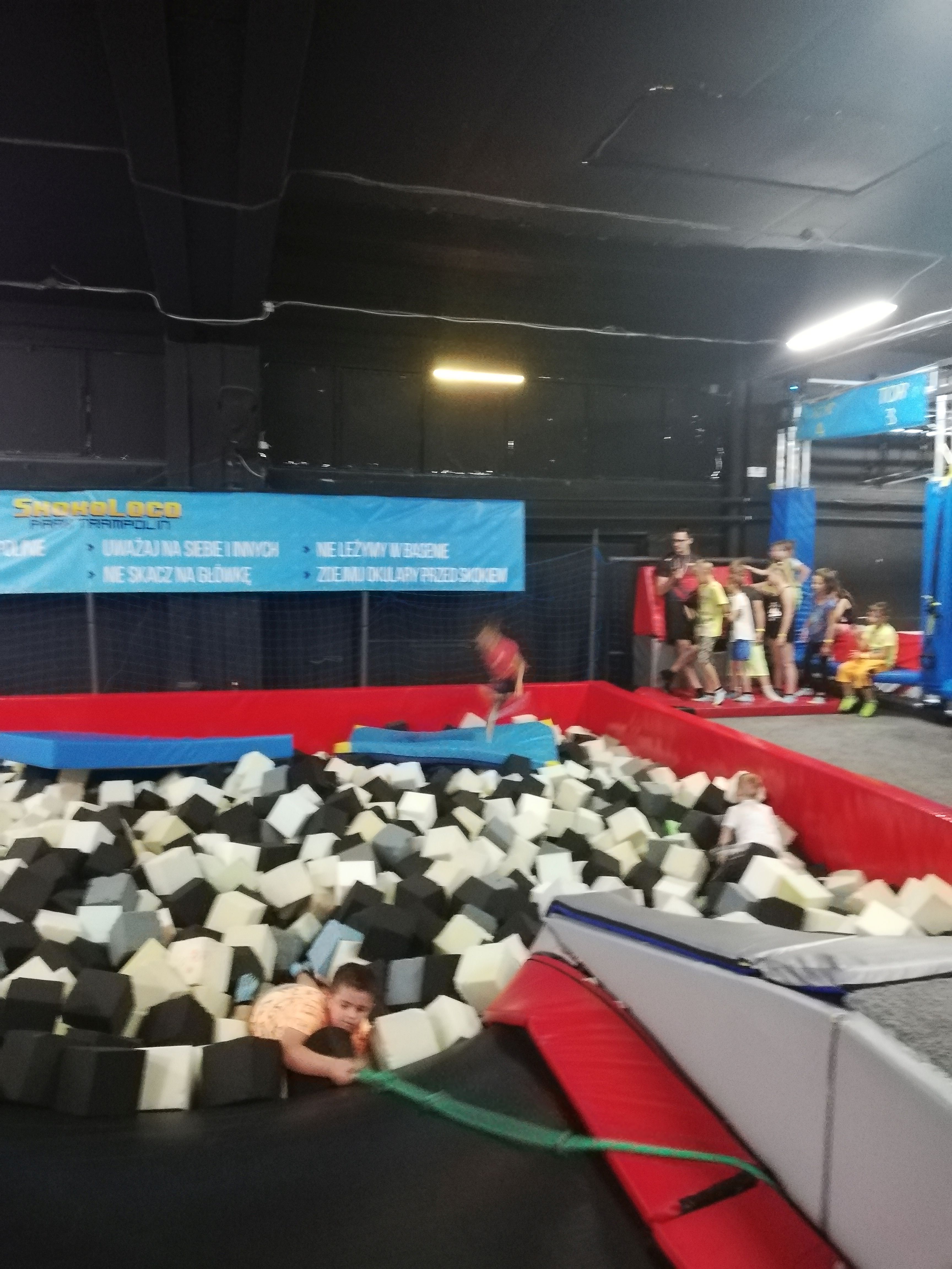 Kolejną z nich był wyjazd 10 czerwca do Skokoloco- Parku Trampolin w Zielonej Górze, gdzie pod okiem profesjonalnych instruktorów dzieci mogły cieszyć się zabawą. Po udanym treningu udaliśmy się do kawiarni San Remo na lody. Każdy mógł zamówić sobie deser lodowy. Pieniądze na lody pochodziły ze zbiórki nakrętek , które zbieraliśmy przez trzy lata