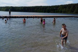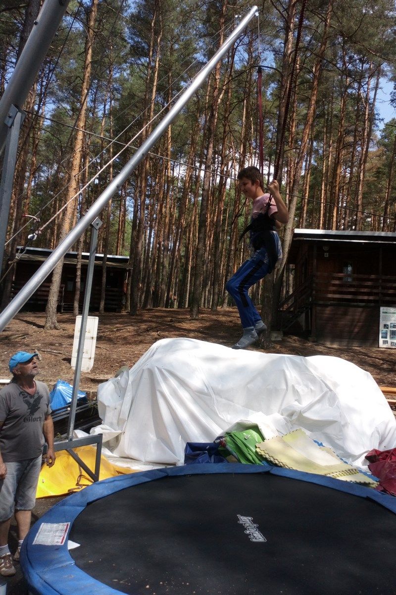 13 czerwca uciekając przed upałami i nie mogąc doczekać się wakacji, klasa V i VI wyjechała nad Jezioro Wielkie do Dąbia. Ośrodek Temar przywitał nas letnią ulewą. Nie przejęliśmy się tym specjalnie, bo i tak mieliśmy w planach kąpiel. Bardzo szybko mijał nam czas na tyrolce, chomiku, parku linowym. Kąpiel w jeziorze zaliczyliśmy już przy pełnym słońcu i powracającym upale. Przed obiadem wykonaliśmy na euro bungee kilka podniebnych ewolucji i po posiłku z żalem rozstaliśmy się z wakacyjnymi klimatami. Na krótko ☺