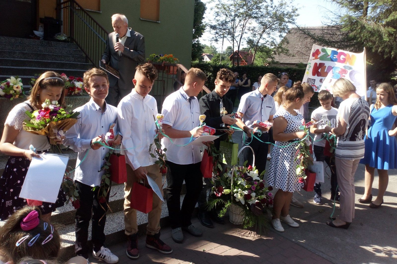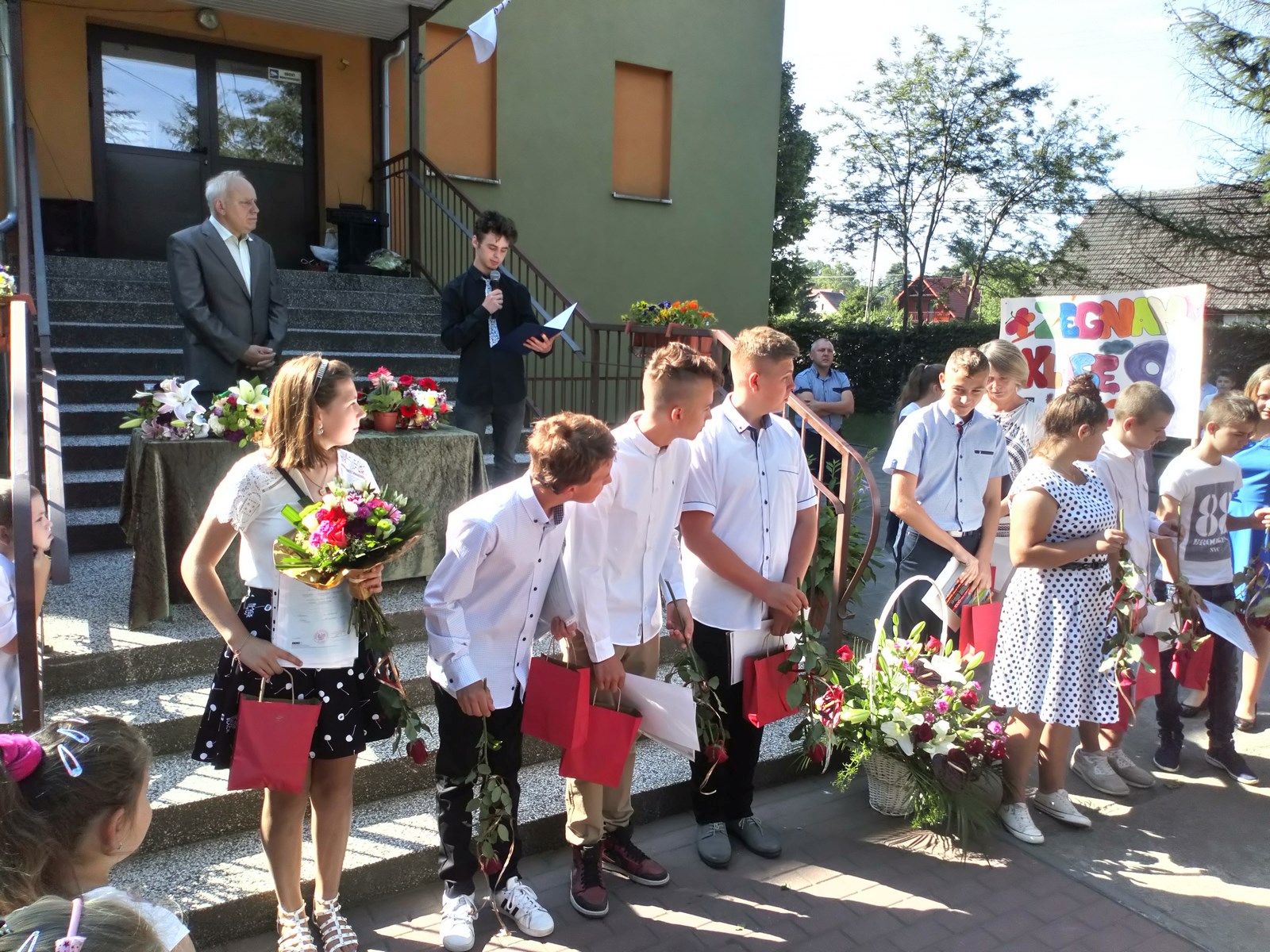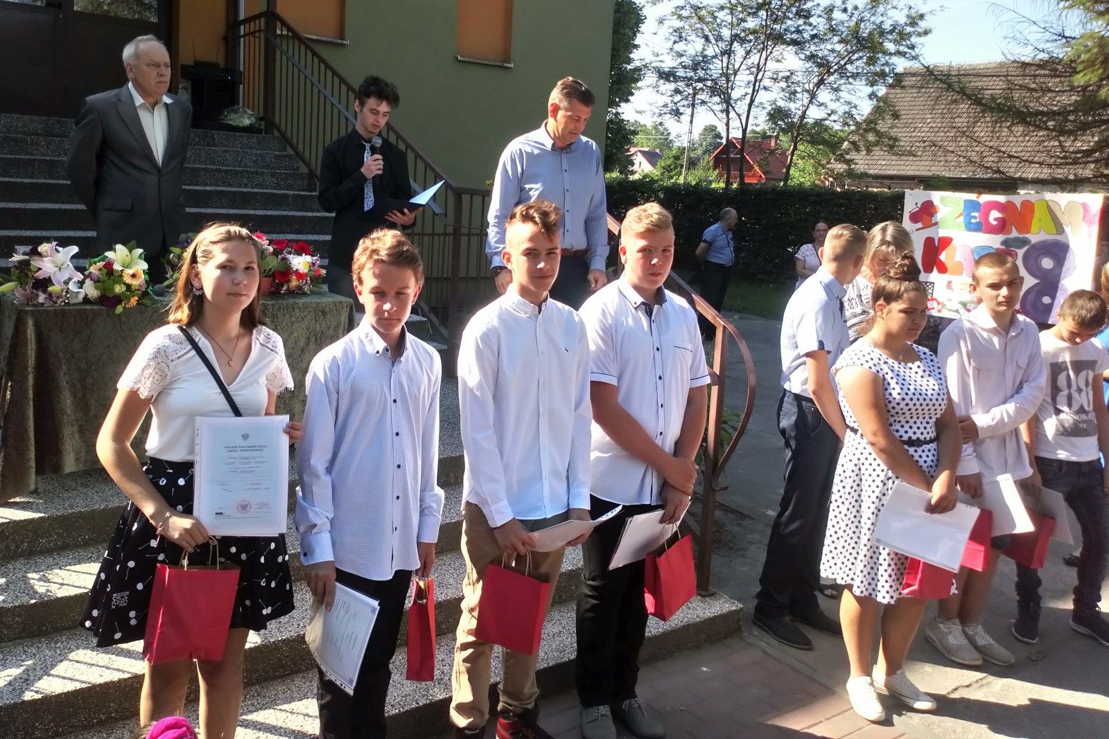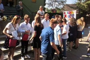 19 czerwca 2019 r. – długo wyczekiwany przez uczniów dzień – zakończenie roku szkolnego. Uroczysty apel rozpoczęły przedszkolaki hymnem państwowym. Następnie głos zabrał Wójt Gminy Świdnica p. Krzysztof Stefański, który wręczył nagrodę wyróżniającemu się absolwentowi – Mateuszowi Zarzyckiemu oraz list pochwalny Państwu Arlecie i Maciejowi Zarzyckim. Dyrektor szkoły podziękował rodzicom za pomoc i współpracę. Rozdano świadectwa z wyróżnieniem, statuetki lidera szkoły, które otrzymali w kategorii klas I – III – Krystian Sochacki, w kategorii klas IV – VIII – Natalia Kuźmicka. Pożegnano klasę ósmą.