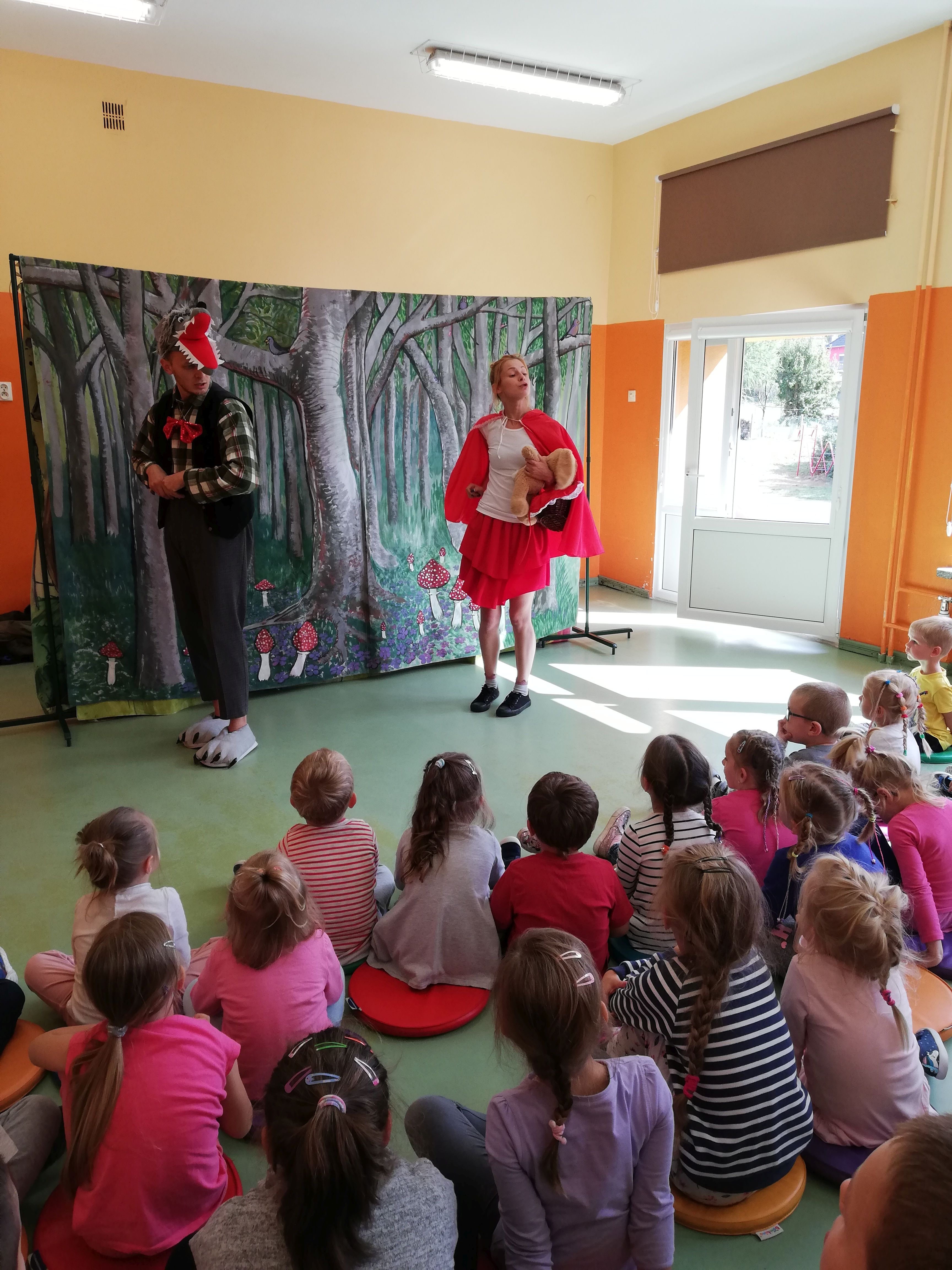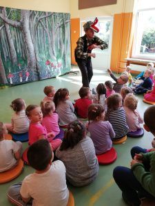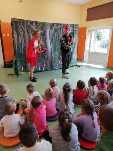 W dniu 19 września dzieci z przedszkola i klas I- III miały możliwość obejrzenia przedstawienia pt. „Czerwony Kapturek” w wykonaniu aktorów teatru Blaszany Bębenek. Dzieci brały udział w spektaklu – śpiewały, tańczyły, a przede wszystkim … głośno się śmiały. Podziwiały stroje, scenerię oraz profesjonalną grę aktorów, którzy wcielili się w rolę Czerwonego Kapturka, wilka czy myśliwego. Teatr ,,żywego aktora” jest dla nas zawsze niezapomnianym przeżyciem i ciekawą przygodą.