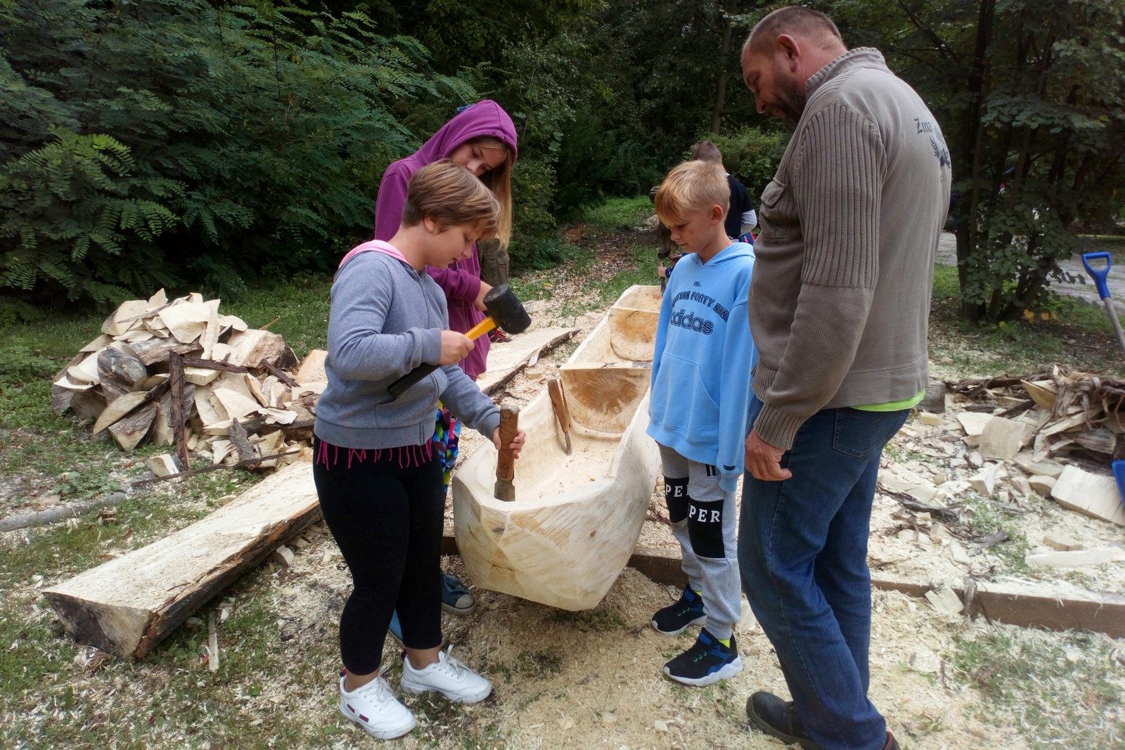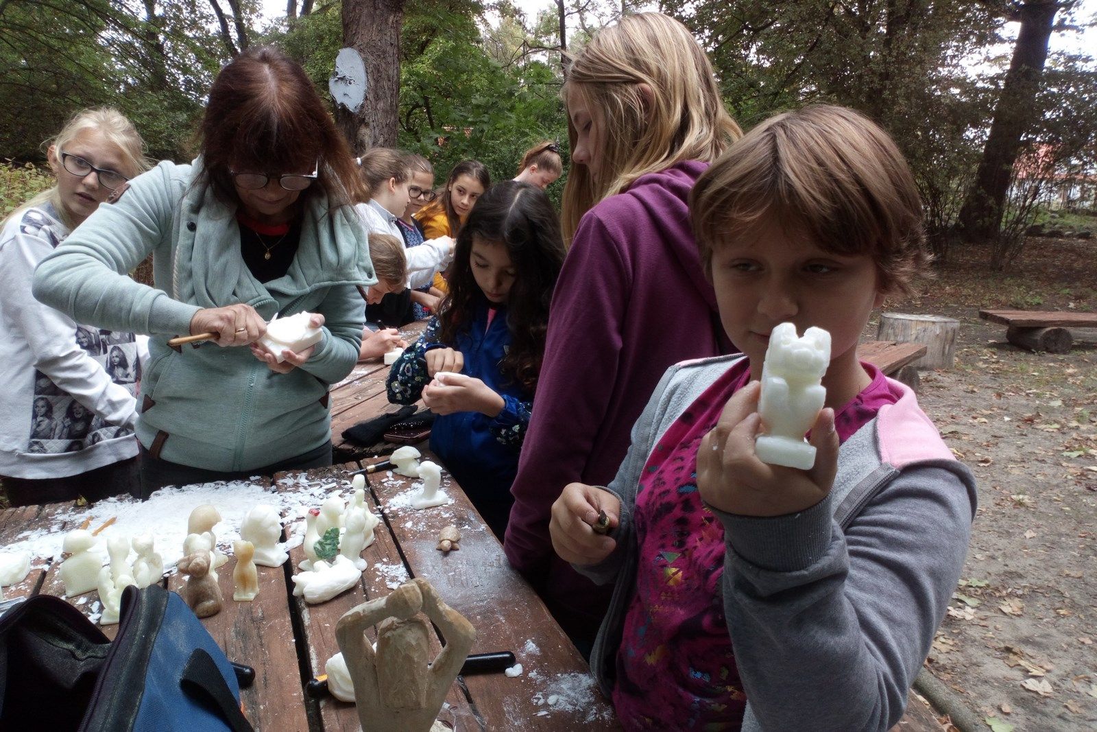 12 września grupa uczniów z klasy piątej uczestniczyła w warsztatach rzeźbiarskich zorganizowanych w ramach XI Pleneru Rzeźbiarskiego w Świdnicy. Pani Hanna Najdowska zapoznała uczniów z techniką rzeźbienia w mydle. Mieliśmy także okazję obserwować i troszkę pomagać w tworzeniu drewnianego czółna i bardzo uroczej ławki. Zajęcia odbywały się na terenie Muzeum Archeologicznego Środkowego Nadodrza.
