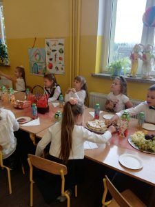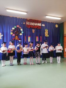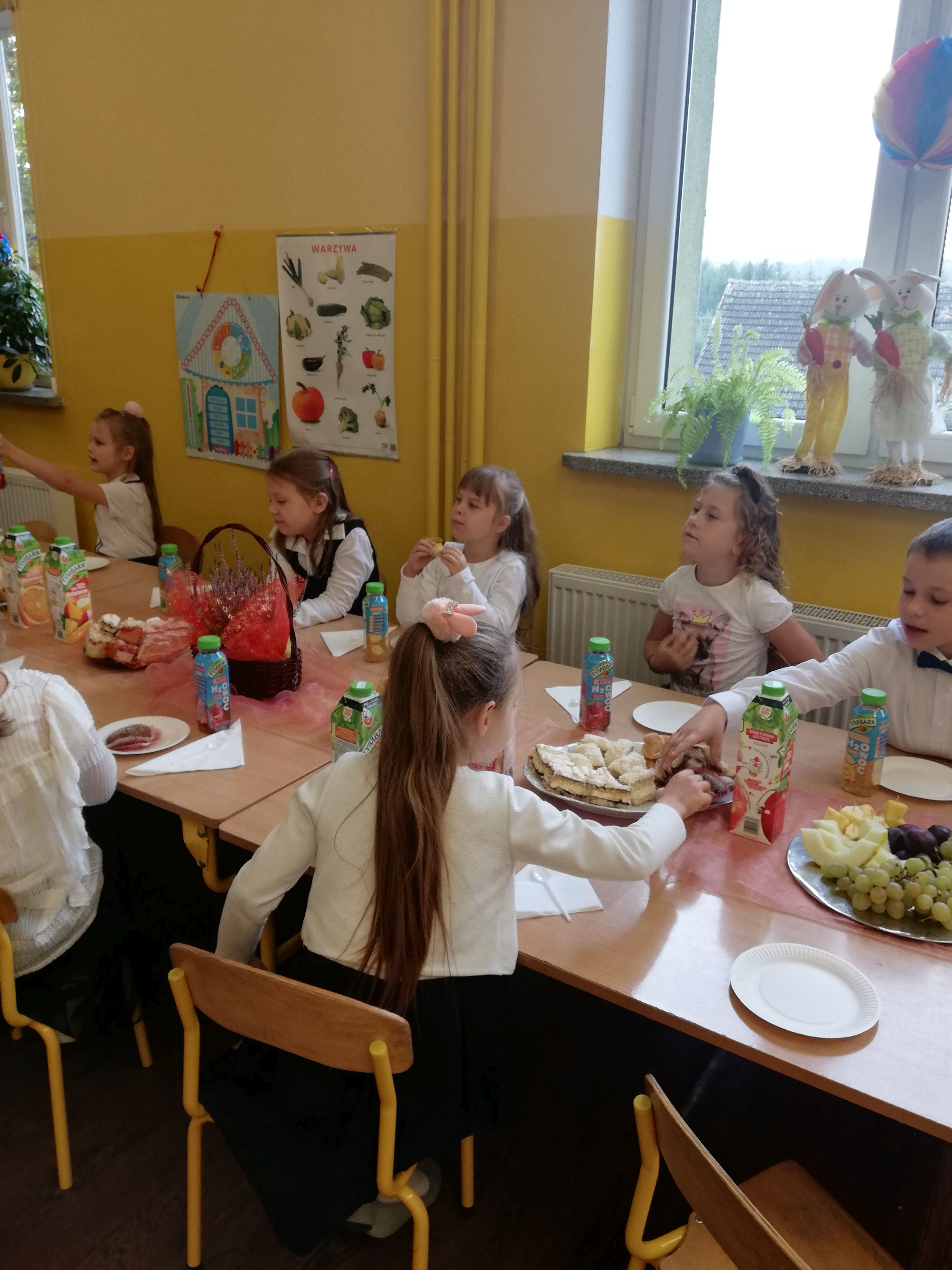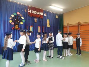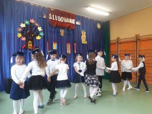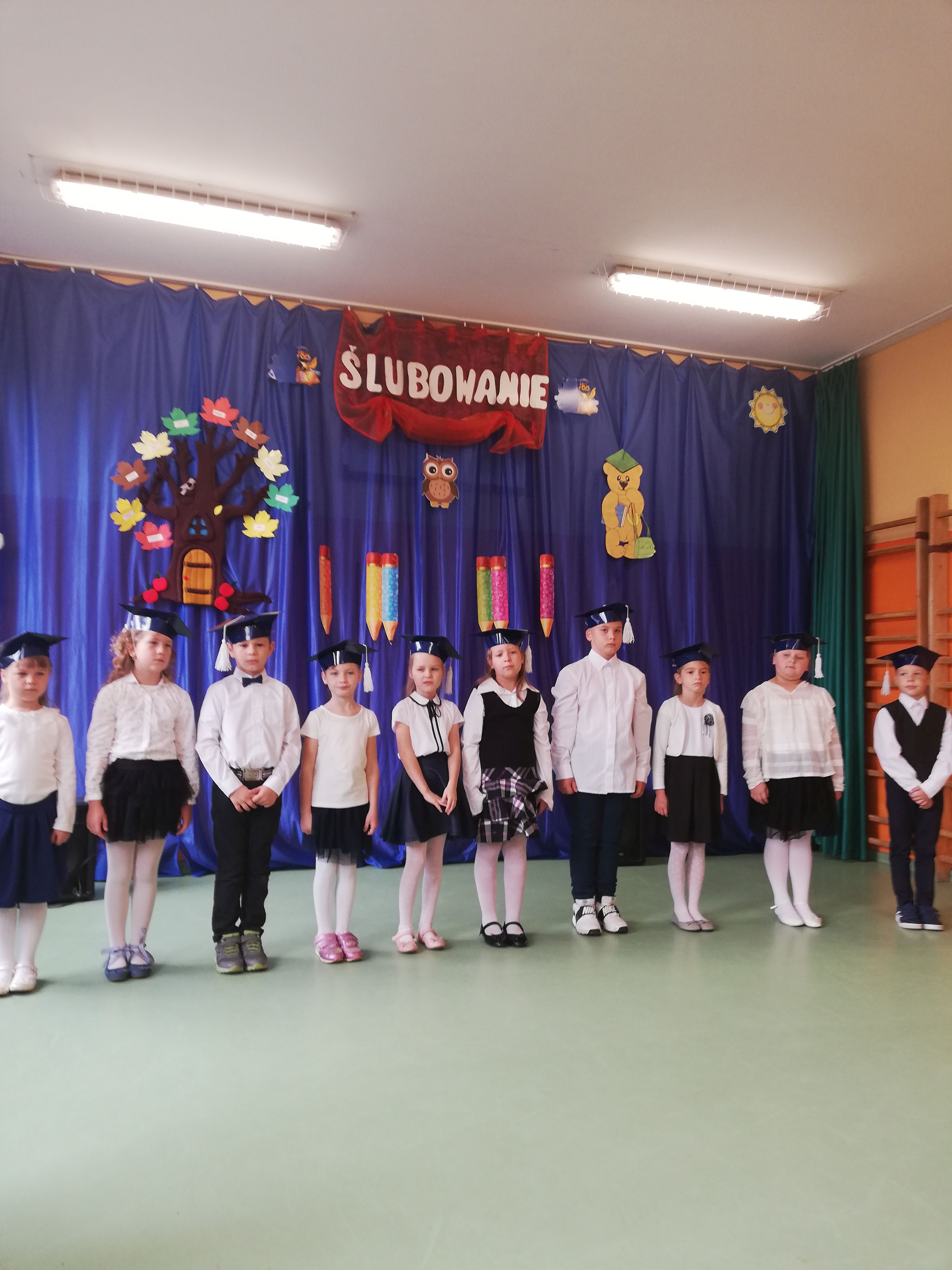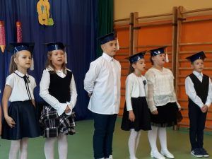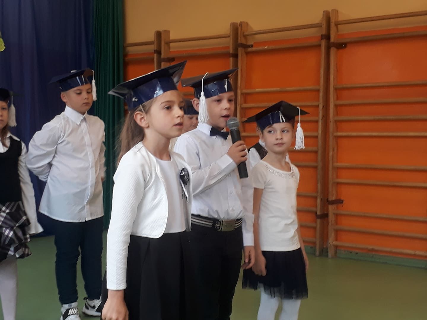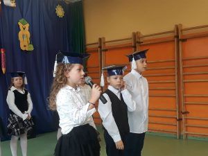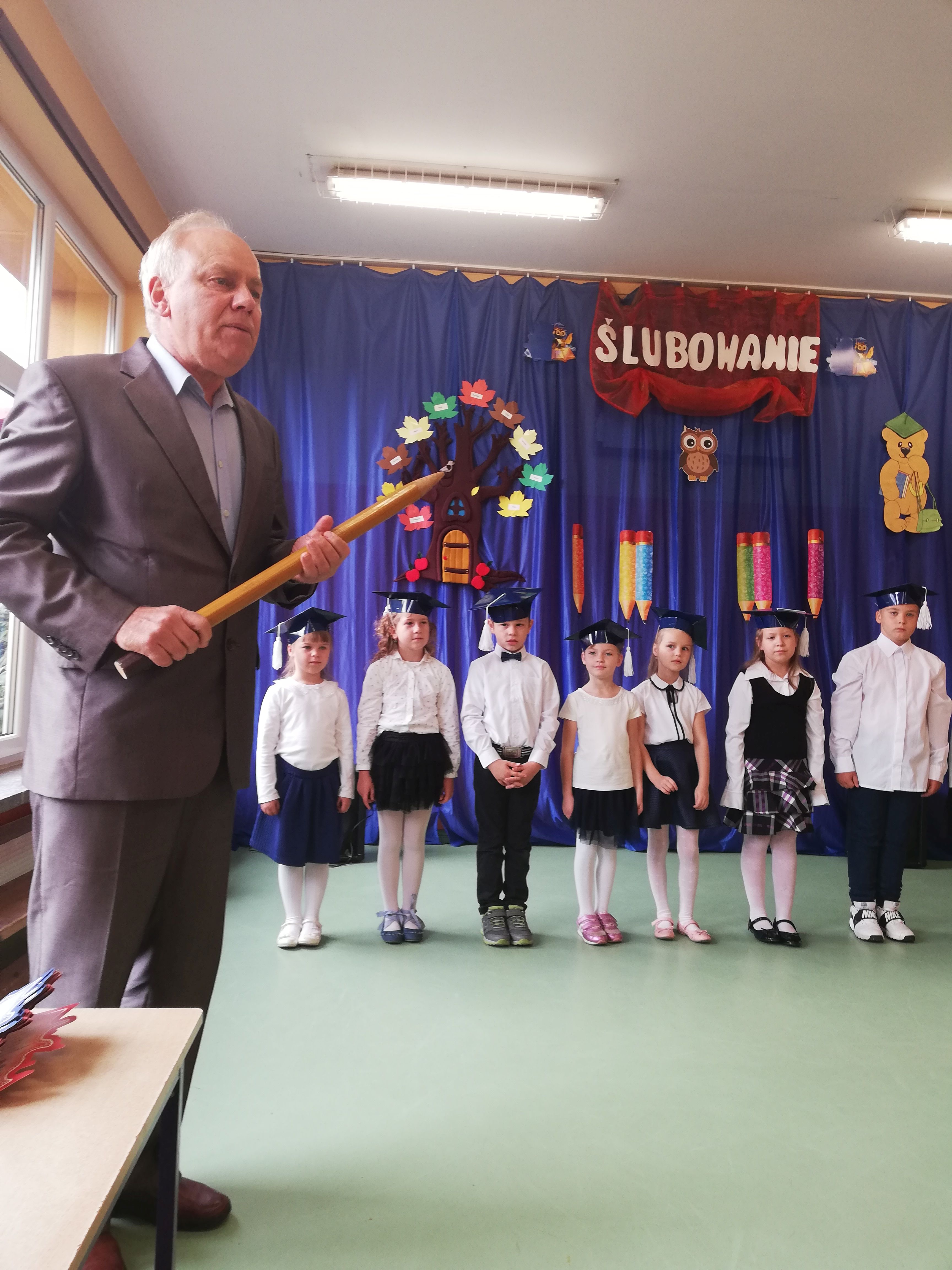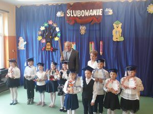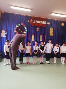 Na początku dzieci wspaniale zaprezentowały swoje umiejętności recytatorskie i muzyczne. Po części artystycznej, w niezwykle podniosłej atmosferze, pierwszaki ślubowały być dobrymi Polakami, godnie reprezentować swoją szkołę, a swym zachowaniem sprawiać radość rodzicom i nauczycielom. Następnie pan Dyrektor dokonał symbolicznego pasowania na ucznia. Na pamiątkę tego wydarzenia dzieci otrzymały pamiątkowe dyplomy, mnóstwo życzeń i prezentów, od starszych kolegów i koleżanek z klas II i III oraz od przedszkolaków. Również rodzice pamiętali o święcie. Przybyli w licznym gronie i zorganizowali ”słodko – owocowe” przyjęcie dla swoich pociech. Ten dzień z pewnością na długo pozostanie pierwszakom w pamięci. Miejmy nadzieję, że słowa przyrzeczenia, które składali, będą dla nich drogowskazem na długie, długie lata szkolne.