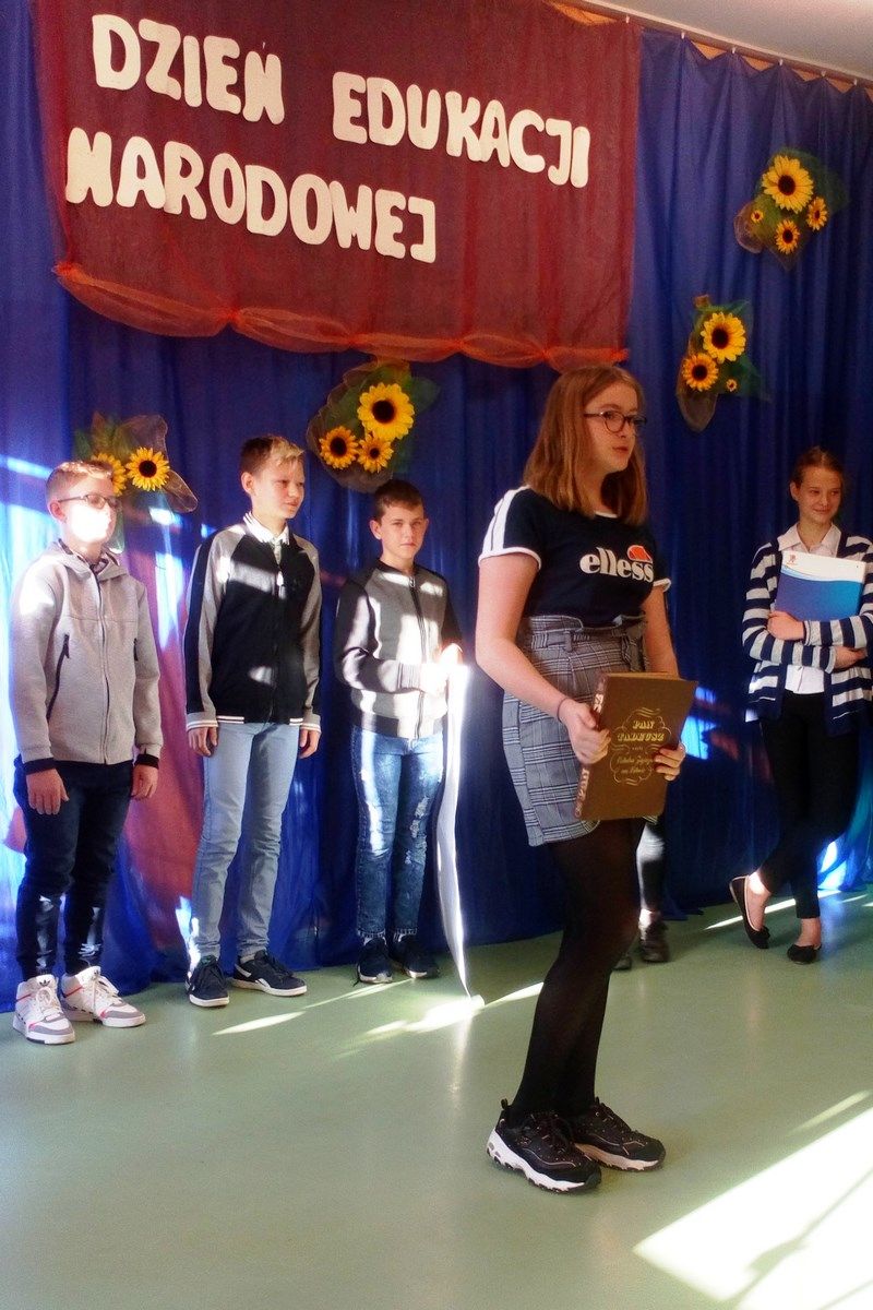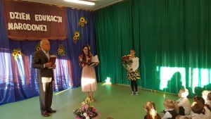 Dzień Edukacji Narodowej to polskie święto oświaty i szkolnictwa wyższego ustanowione 27 kwietnia 1792 r. Upamiętnia rocznicę powstania Komisji Edukacji Narodowej, która została utworzona z inicjatywy króla Stanisława Augusta Poniatowskiego. Powszechnie, dzień ten nazywany jest Dniem Nauczyciela. 14 października 2019 roku w Szkole Podstawowej w Słonem odbyła się uroczysta akademia z tej okazji. Na uroczystość przybyli : P. Izabela Mazurkiewicz – wicewójt Gminy Świdnica, nauczyciele, pracownicy administracji i obsługi, przedstawiciele Rady Rodziców oraz uczniowie. W części oficjalnej głos zabrał Pan dyrektor Waldemar Puchalski oraz Pani Wójt, którzy złożyli serdeczne życzenia wszystkim pracownikom szkoły, podziękowali za trud włożony każdego dnia w kształcenie i wychowanie młodych pokoleń oraz wręczyli Nagrody Wójta i Dyrektora wyróżnionym pracownikom szkoły.