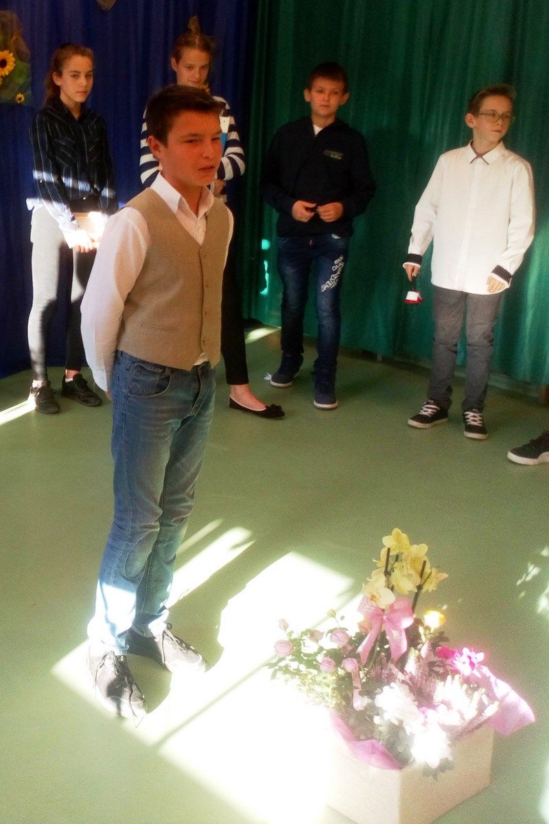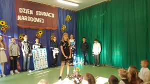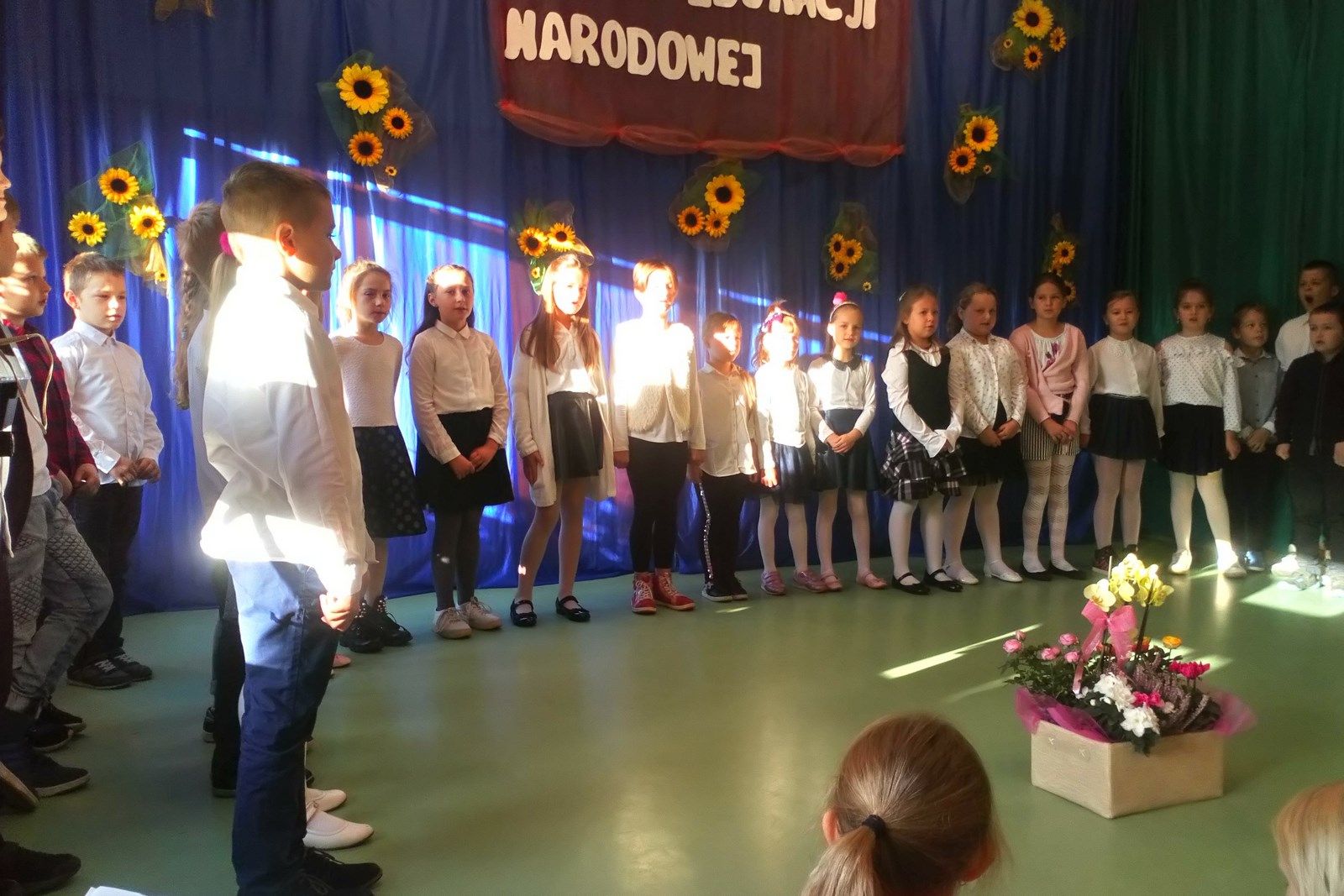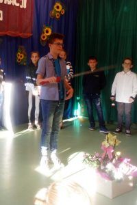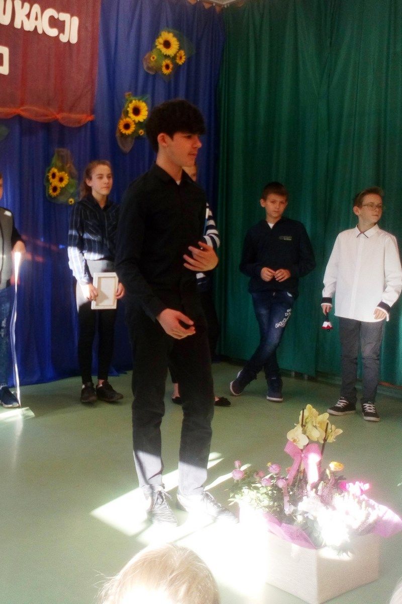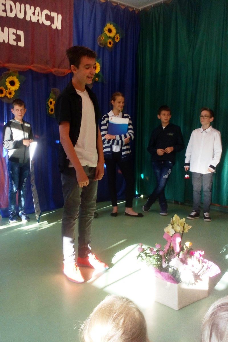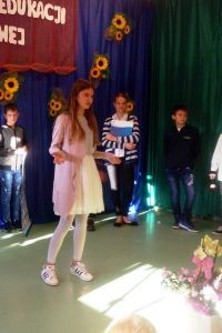 W części artystycznej uczniowie z klas młodszych oraz uczniowie z koła teatralnego śpiewem, wierszem i zabawnymi wierszykami o nauczycielach wyrazili swoje podziękowanie i słowa uznania dla trudnej pracy pedagogów.