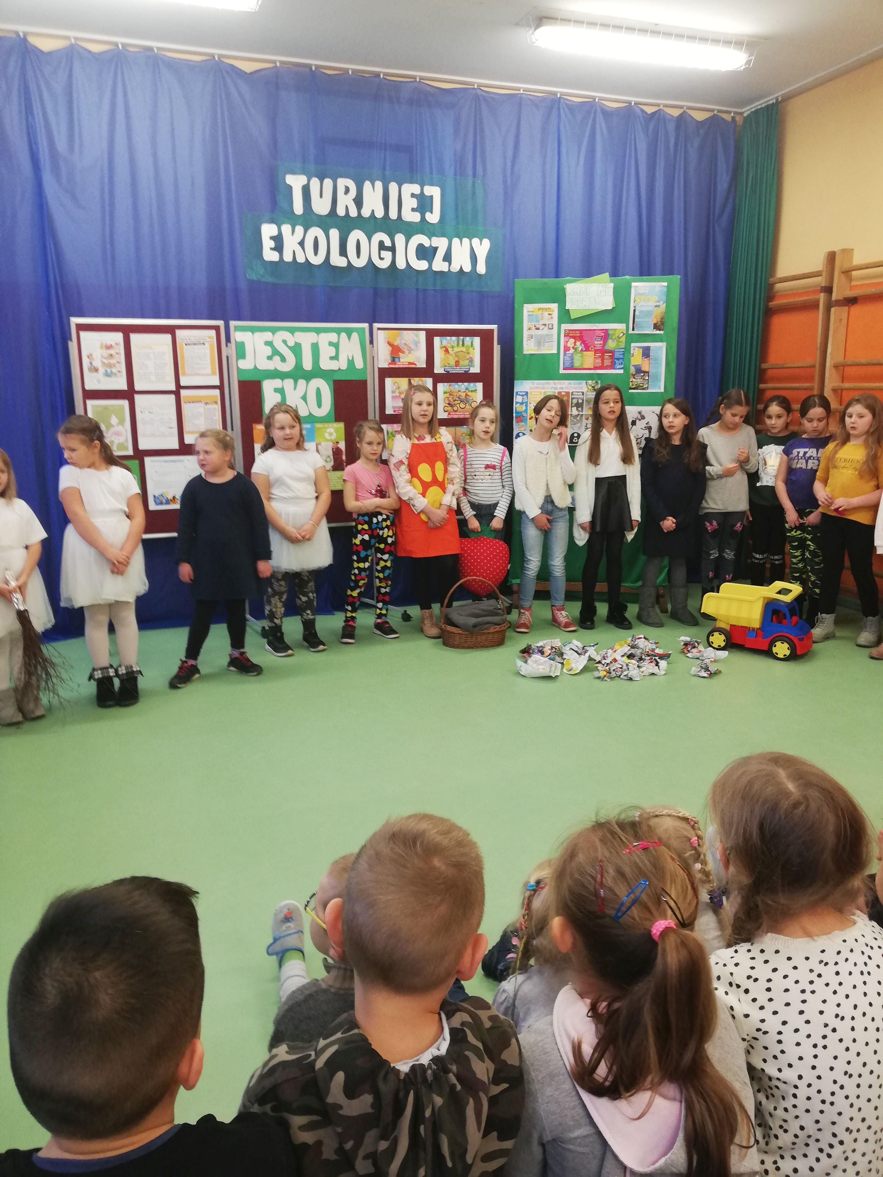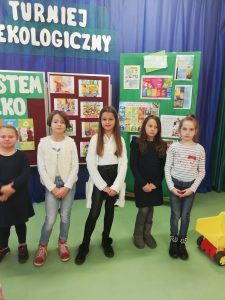 25 listopada odbył się w naszej szkole Turniej Ekologiczny klas I-III. Przed przystąpieniem do konkursu dzieci zaprezentowały program artystyczny składający się z przedstawienia pt.”Żyj z przyrodą w zgodzie „oraz piosenek „Ekologia”, „Moja planeta”. Potem dzieci podzielone na 8 grup przystąpiły do konkursu podczas którego rozwiązywały zagadki, krzyżówki oraz test wiedzy składający się z 20 pytań. Rozwiązując liczne zadania dzieci uczyły się od siebie wzajemnie. Celem turnieju było: