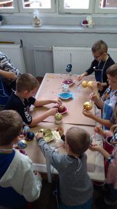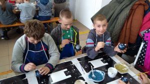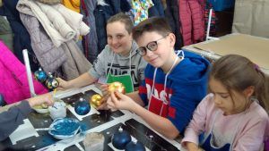 W miniony wtorek odwiedziliśmy fabrykę bombek w Złotoryi. Jest to największa taka fabryka w tej części kraju. Na wstępie mogliśmy samodzielnie przygotować bombki na nasze choinki. Następnie zwiedzaliśmy zakład produkcyjny, pierwsza sala, którą odwiedziliśmy to dmuchalnia, gdzie zobaczyliśmy jak szklana rurka zamienia się w bombkę. Następnym przystaniem była „srebrzalnia”. Tutaj zobaczyliśmy jak zasrebrza się ozdoby za pomocą związku azotanu srebra. Kolejny odwiedzonym działem była maczalnia, gdzie zobaczyliśmy w jaki sposób bombki barwi się na jednolity kolor. Potem udaliśmy się do najciekawszej sali – dekoratorni. Tu powstają prawdziwe dzieła: cukierki, samochody czy bałwanki.