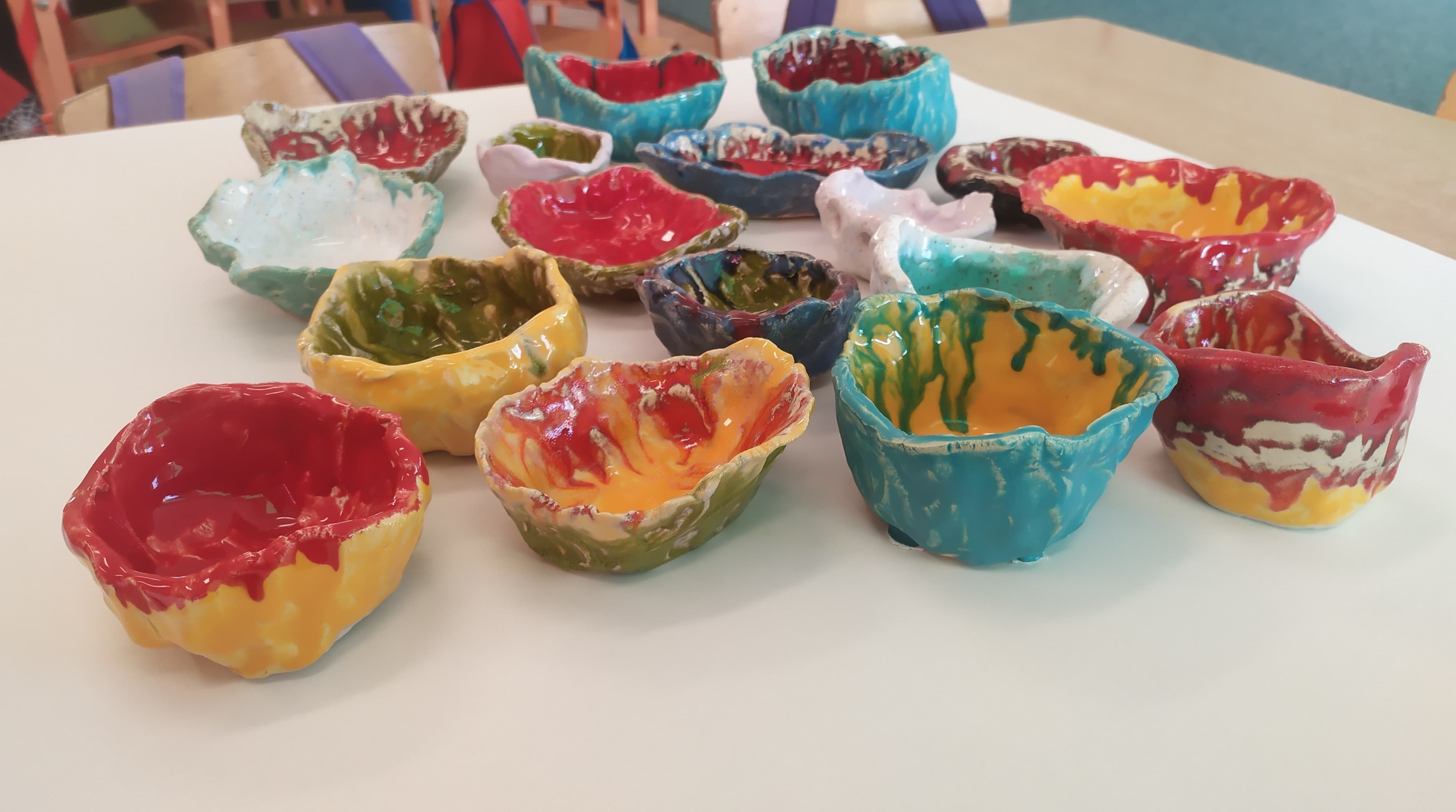 W ramach programu plastycznego „Ceramiczny przedszkolak” dzisiaj Smoki odbierały swoje pierwsze prace z ceramiki. Prace są ulepione i szkliwione przez dzieci. Program odbywa się we współpracy z GOK-iem ( udostępniony piec do wypału), zajęcia prowadzi wychowawca grupy Anna Furmanek.