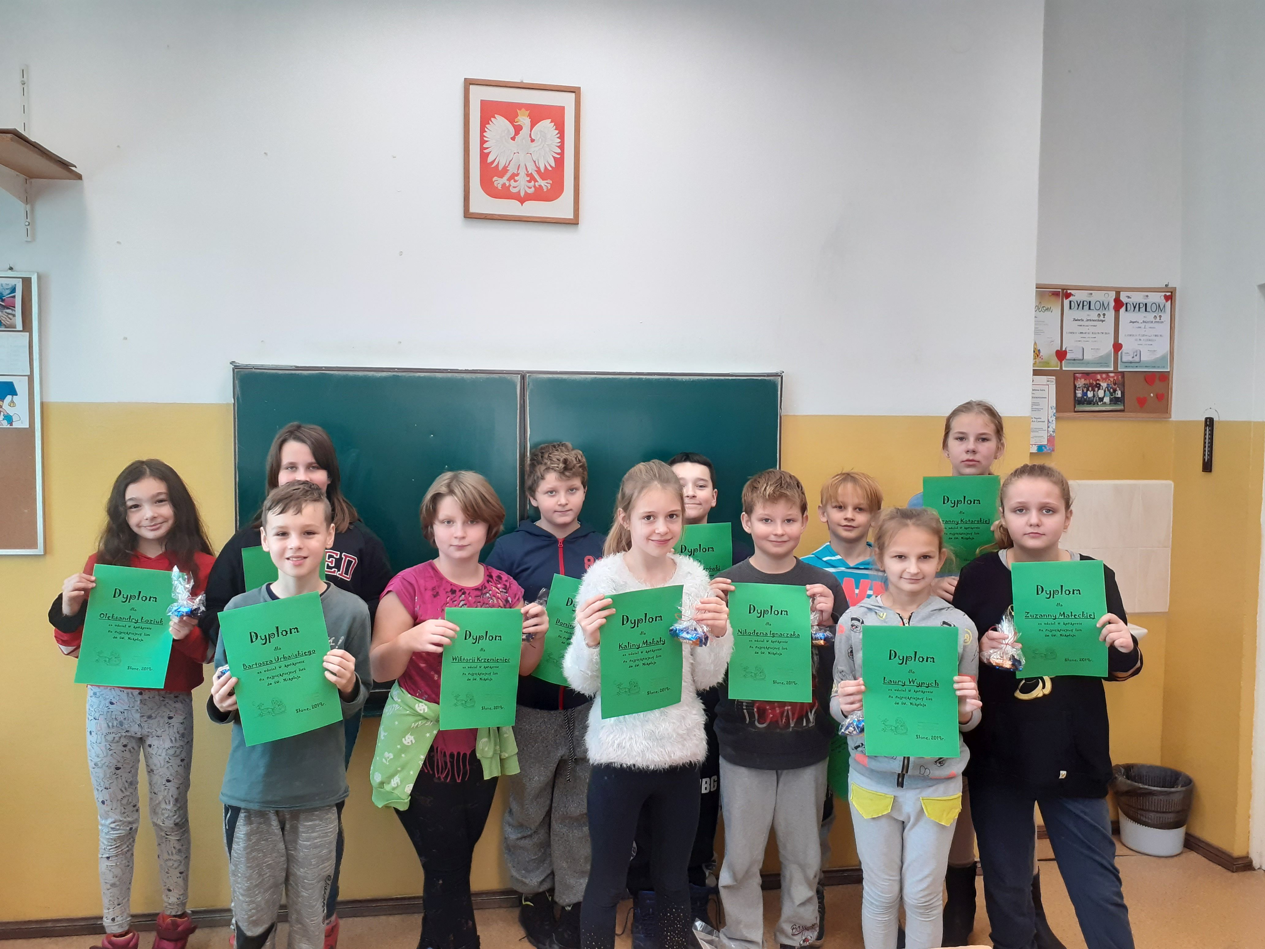 Szkolny konkurs na list do Św. Mikołaja został rozstrzygnięty. Wpłynęło sporo prac. Najbardziej jednak urzekły treścią listy M. Kostrzewy – I miejsce, H. Serbinowskiego – II miejsce oraz S. Musiał- III miejsce. Wszyscy uczestnicy otrzymali dyplomy i upominki.