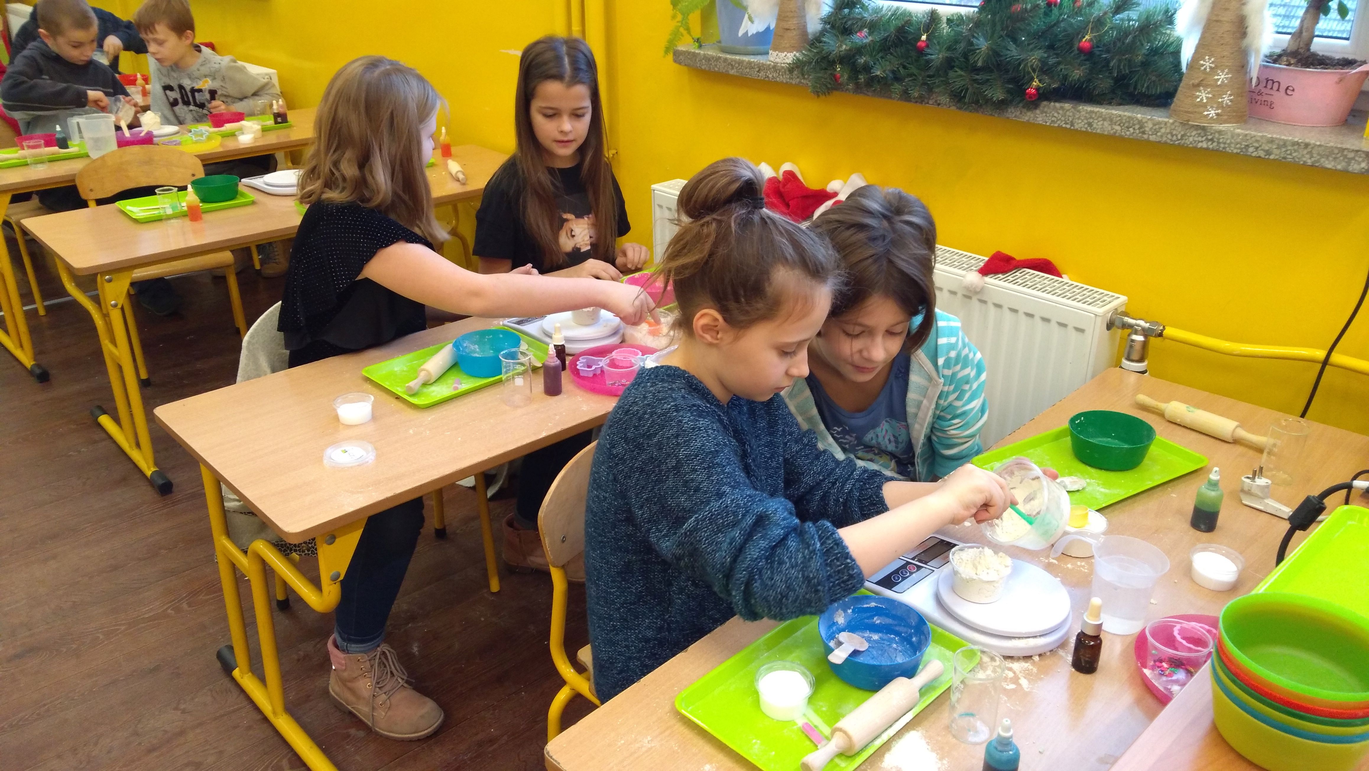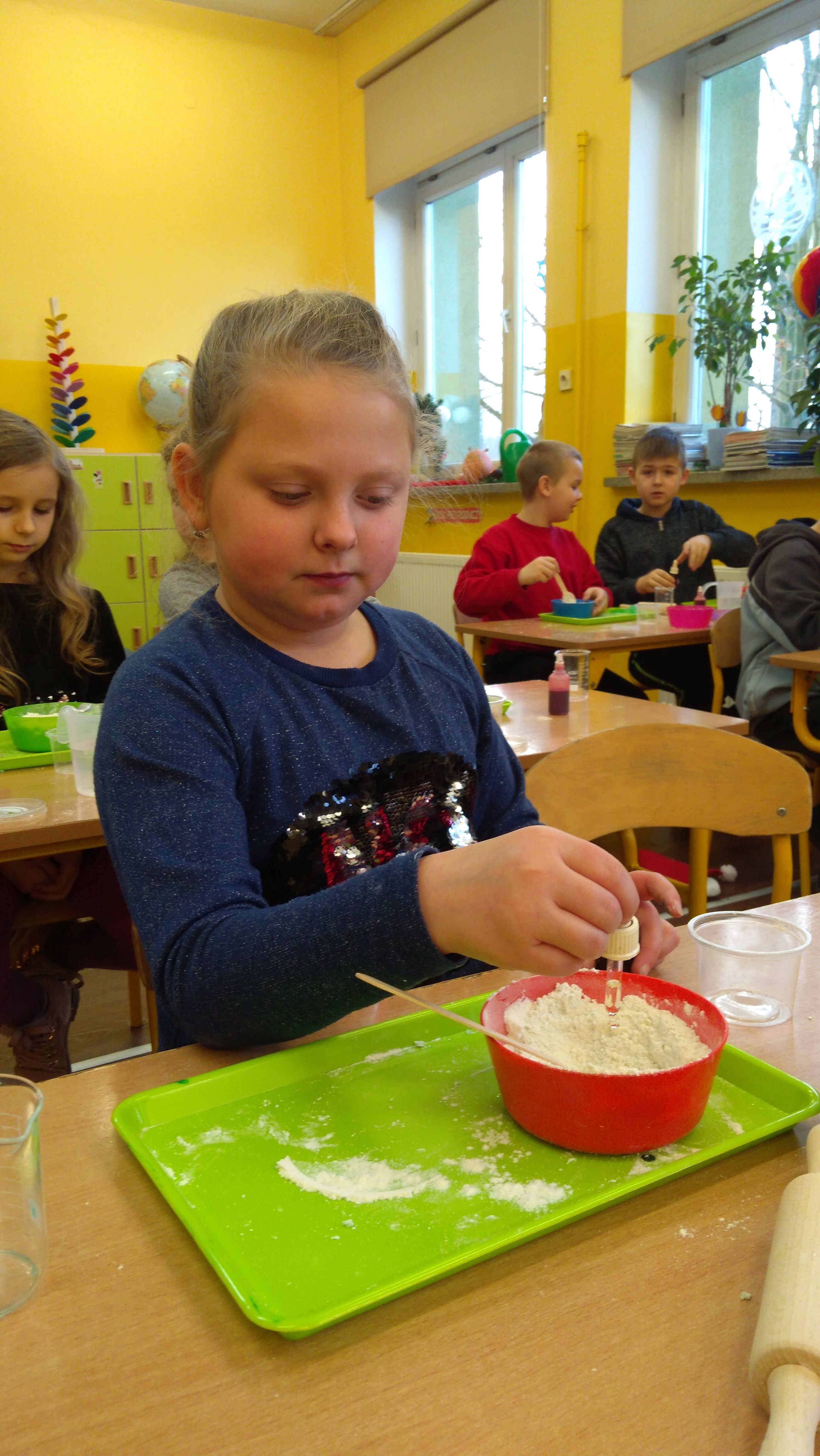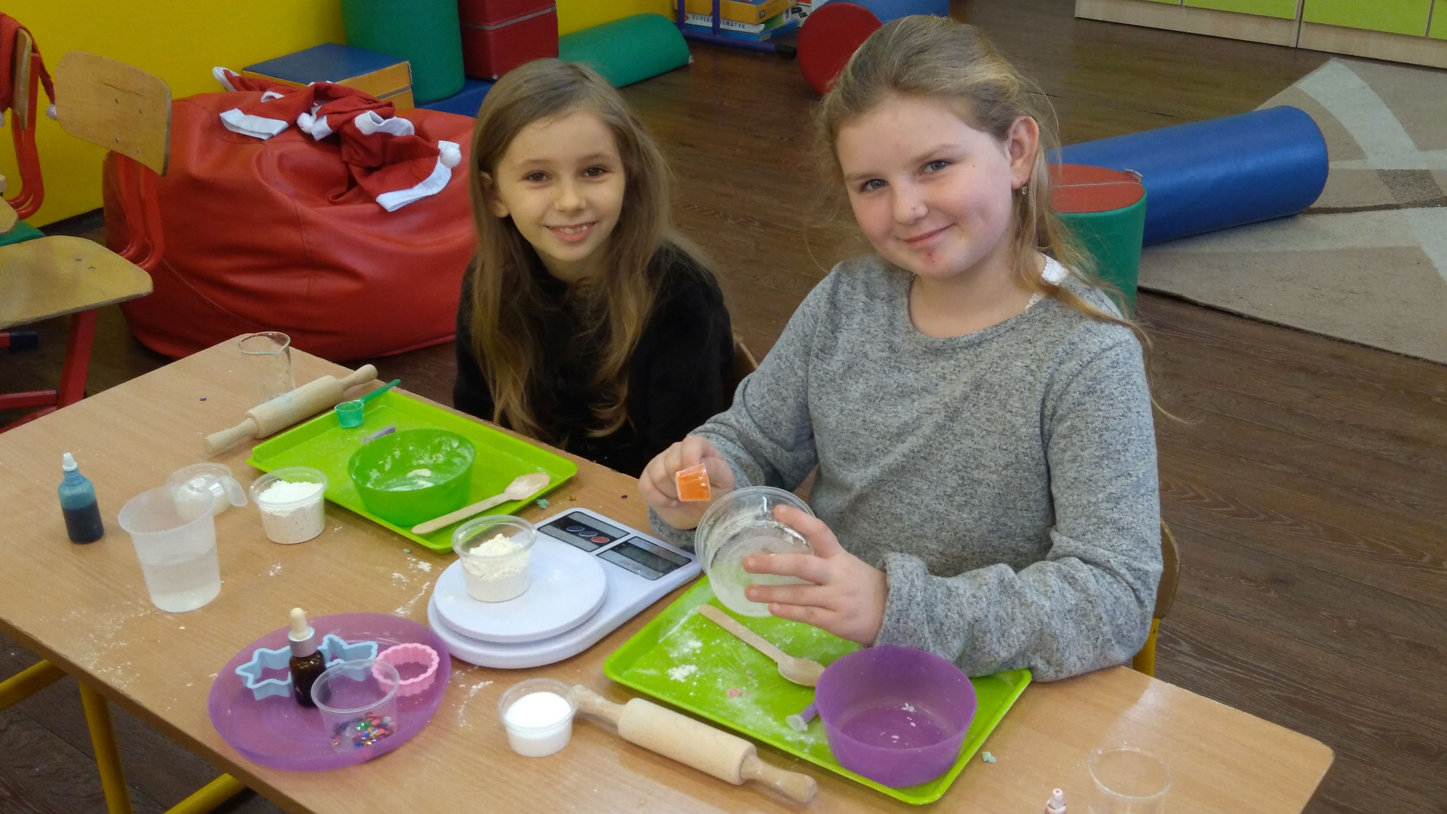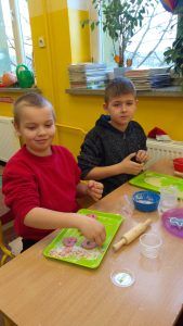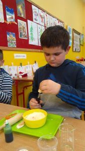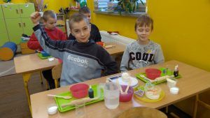 W piątek trzynastego odbyły się kolejne zajęcia z Krainą Eksperymentu. Tym razem nasi uczniowie samodzielnie przygotowali pachnącą, kolorową masę plastyczną na bazie mąki. W klasach roznosiły się intensywne, piękne zapachy. Każdy z małych chemików musiał samodzielnie ważyć składniki na idealną konsystencję masy, następnie dodawane były różne aromaty i barwniki. Dlatego każda z przygotowanych mas była wyjątkowa.