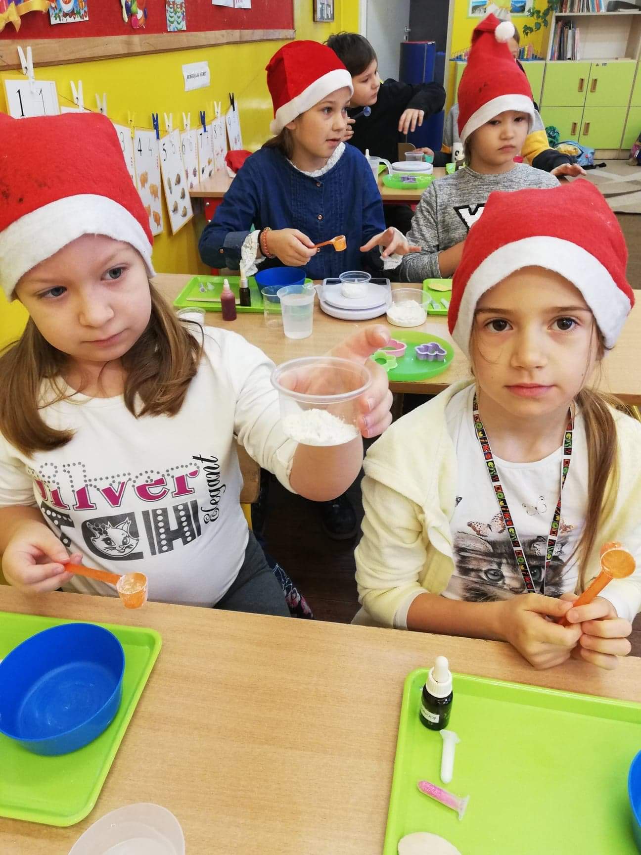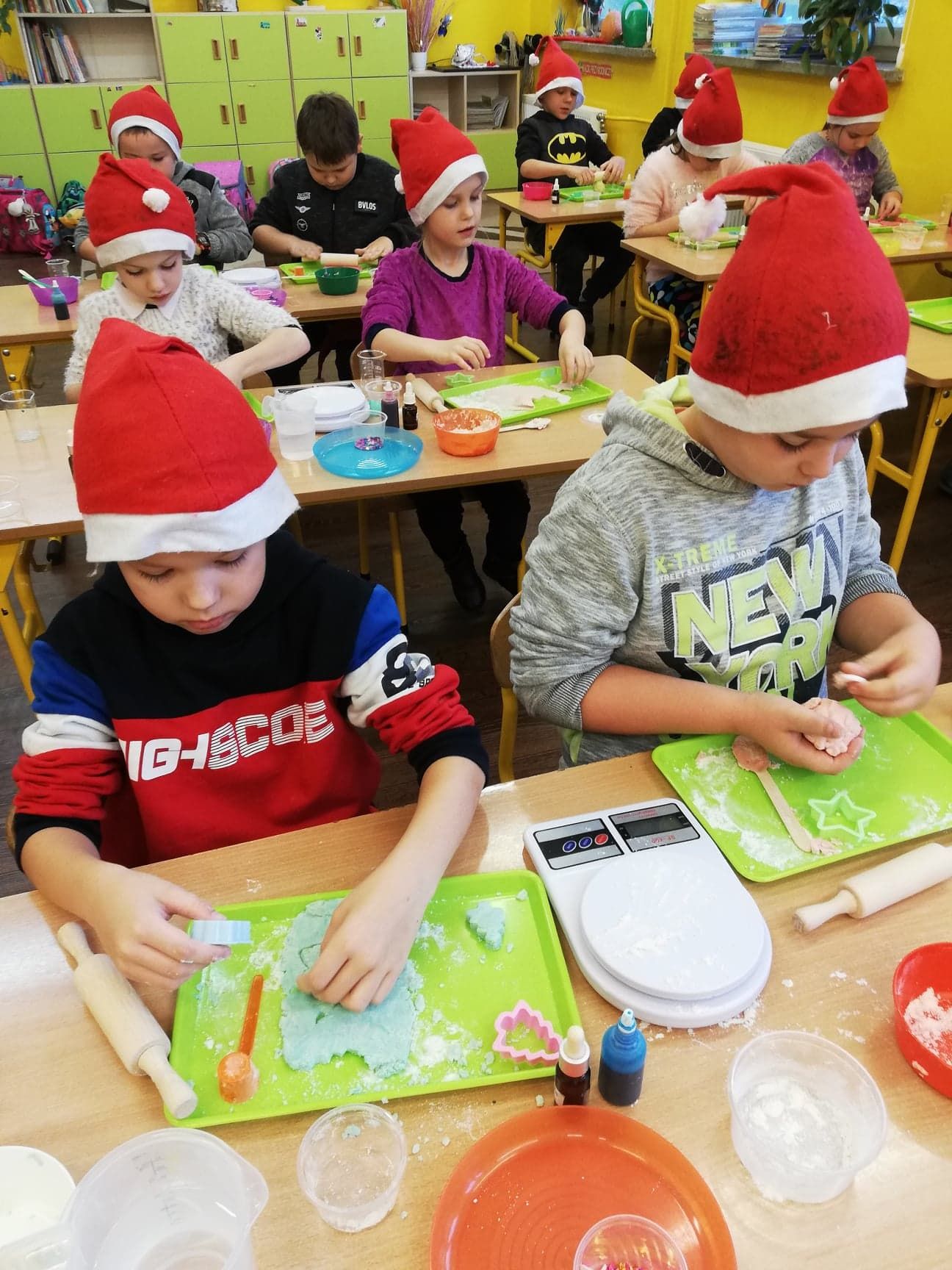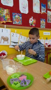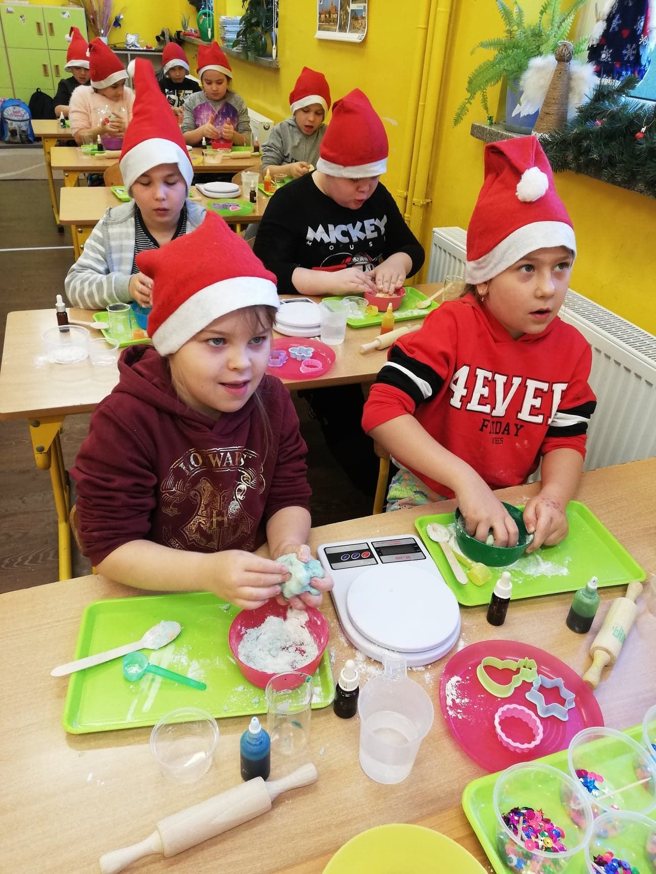 W piątek trzynastego odbyły się kolejne zajęcia z Krainą Eksperymentu. Tym razem nasi uczniowie samodzielnie przygotowali pachnącą, kolorową masę plastyczną na bazie mąki. W klasach roznosiły się intensywne, piękne zapachy. Każdy z małych chemików musiał samodzielnie ważyć składniki na idealną konsystencję masy, następnie dodawane były różne aromaty i barwniki. Dlatego każda z przygotowanych mas była wyjątkowa.