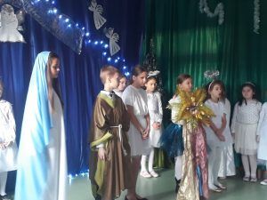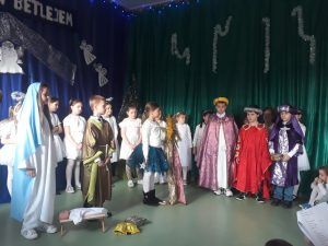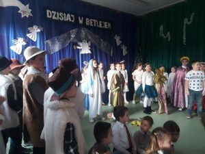 W minionym tygodniu w naszej szkole świętowaliśmy Dzień Babci i Dziadka, w środę uczniowie klas I-III zaprezentowali swoim gościom tegoroczne przedstawienie jasełkowe, mali artyści przygotowali również piękne życzenia oraz specjalne piosenki dla swoich dziadków. W przedszkolu uroczystości odbyły się dzień później, dziadkowie zostali porwani przez swoich wnuków do tańca i wspólnego śpiewania przy akompaniamencie Pana Artura Jachimowicza, który prowadzi również rytmikę. Przedszkolaki przygotowały wiersze i piosenki dla swoich babć i dziadków. Każdy z przybyłych do naszej szkoły gości został obdarowany piękną laurką z najserdeczniejszymi życzeniami.