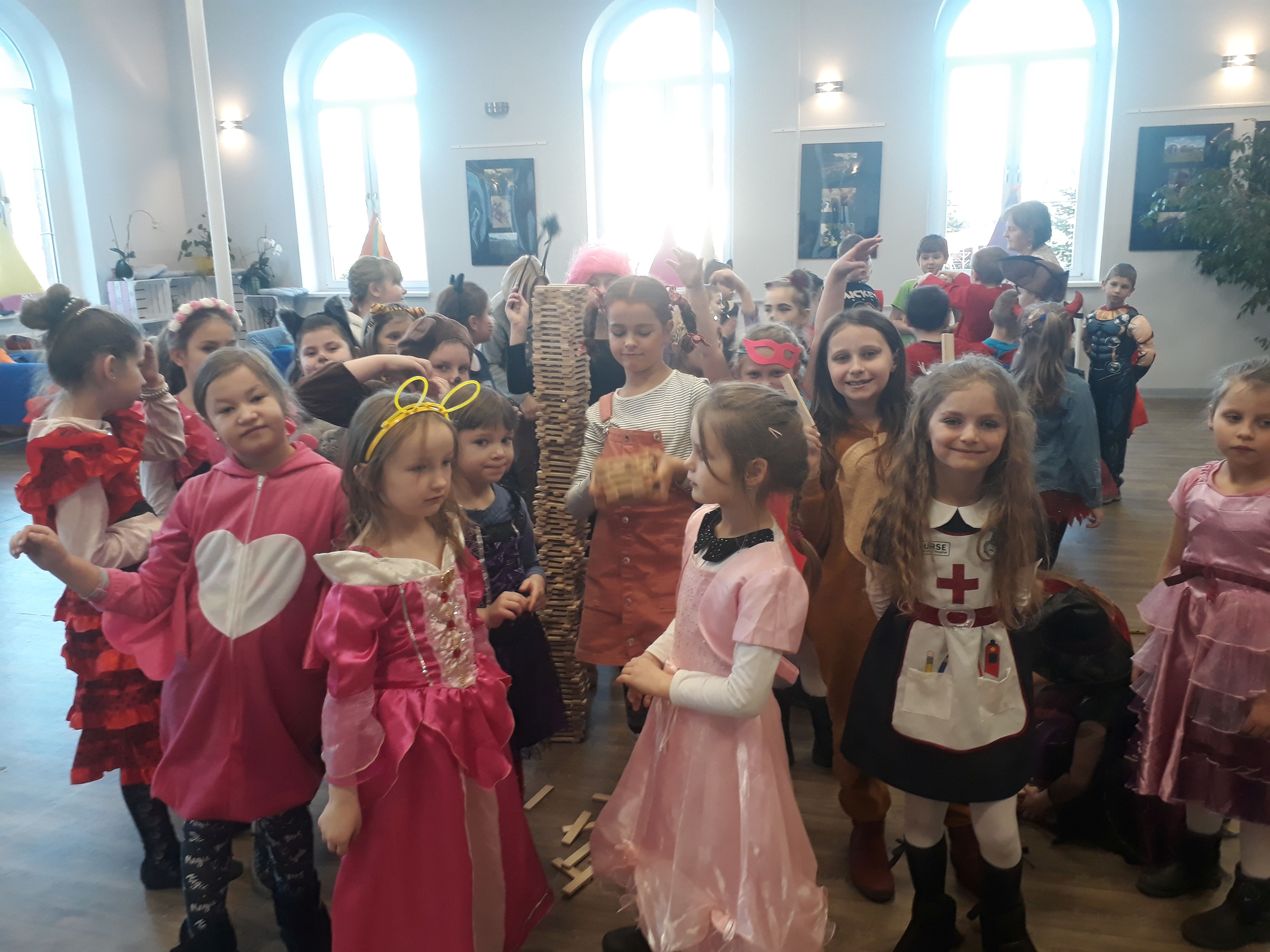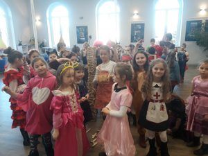 porywał towarzystwo do dalszej zabawy. Przygotował dla dzieci mnóstwo fantastycznych zabaw. Nasi uczniowie jak co roku nie zawiedli i wykazali się pomysłowością jeśli chodzi o stroje karnawałowe.