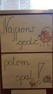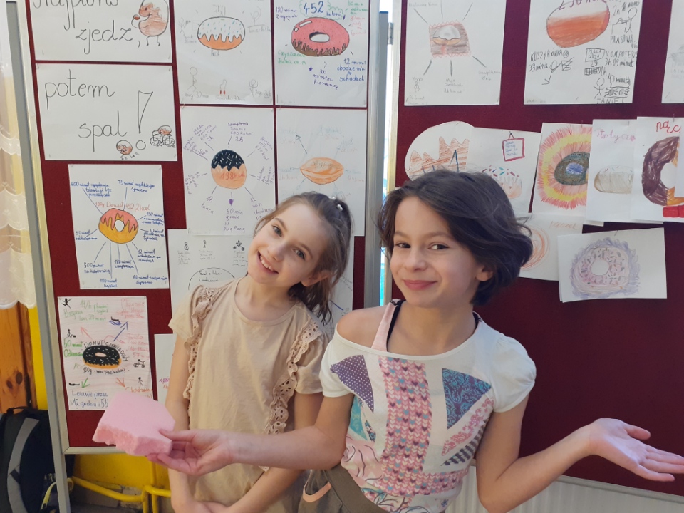 Szkolne obchody najsłodszego święta w roku obchodziliśmy pod hasłem ” Najpierw zjedz, potem spal”. Klasa piąta dbając o zdrowie i dobry wygląd koleżanek i kolegów przygotowała plakaty, z których poznaliśmy kaloryczność różnych rodzajów pączków oraz dowiedzieliśmy się co i jak długo trenować żeby pączek ” nie poszedł w boczki”. Święto stało się też okazją do wykonania pięknych „portretów” ulubionych pączków i starannego zapisania samodzielnie ułożonych wierszy i rymowanek. Za każdą pracę plastyczną i rymowankę uczniowie klasy VII wręczali smaczne pączki.