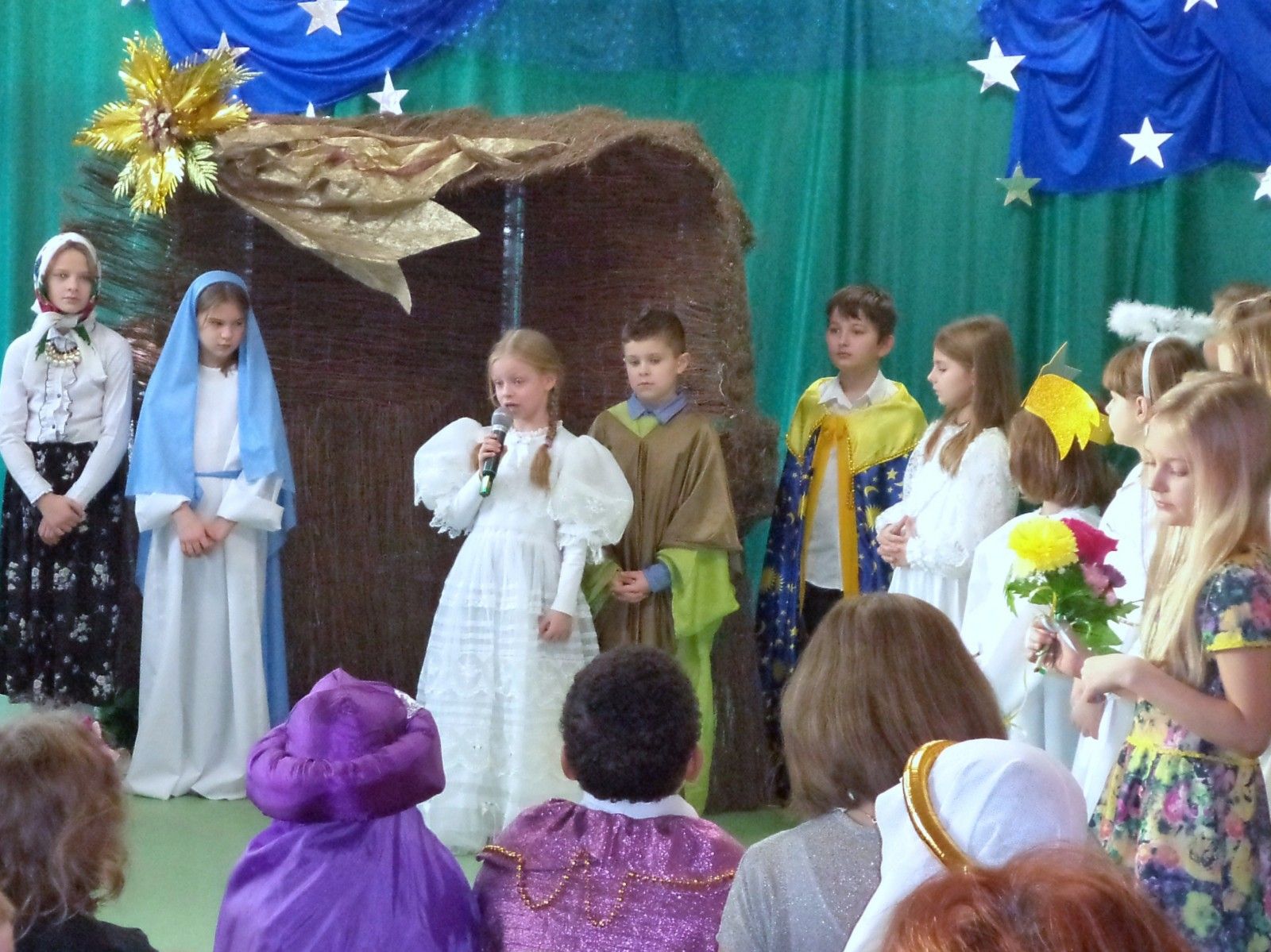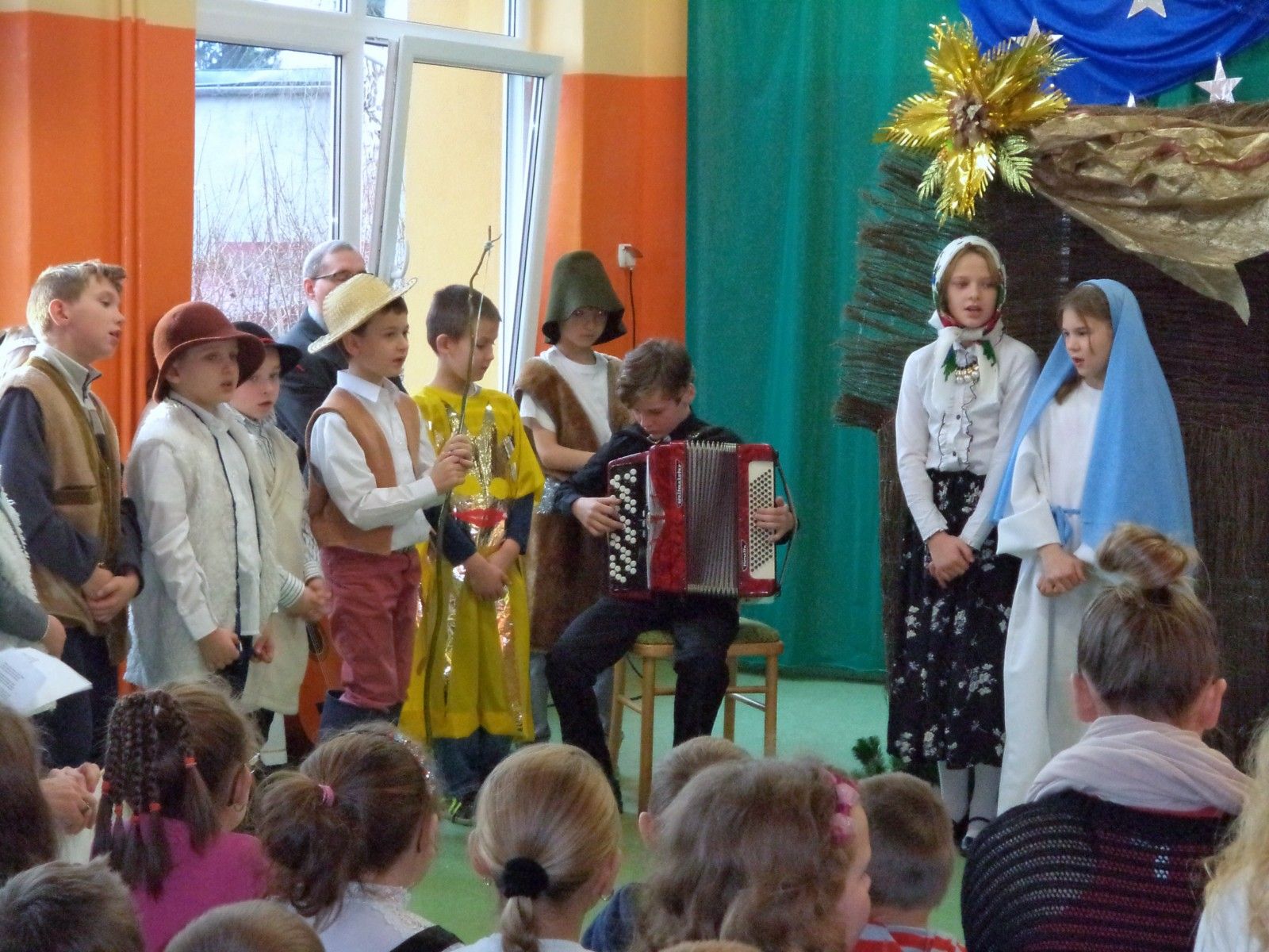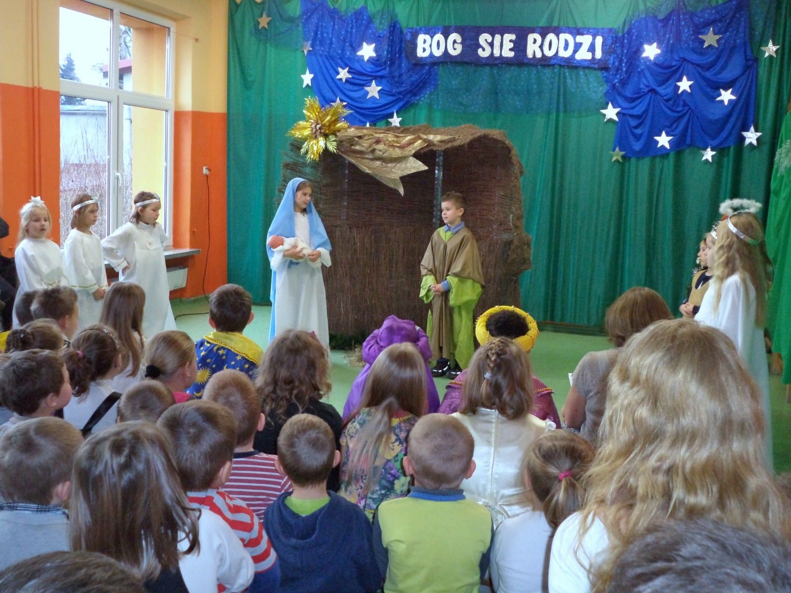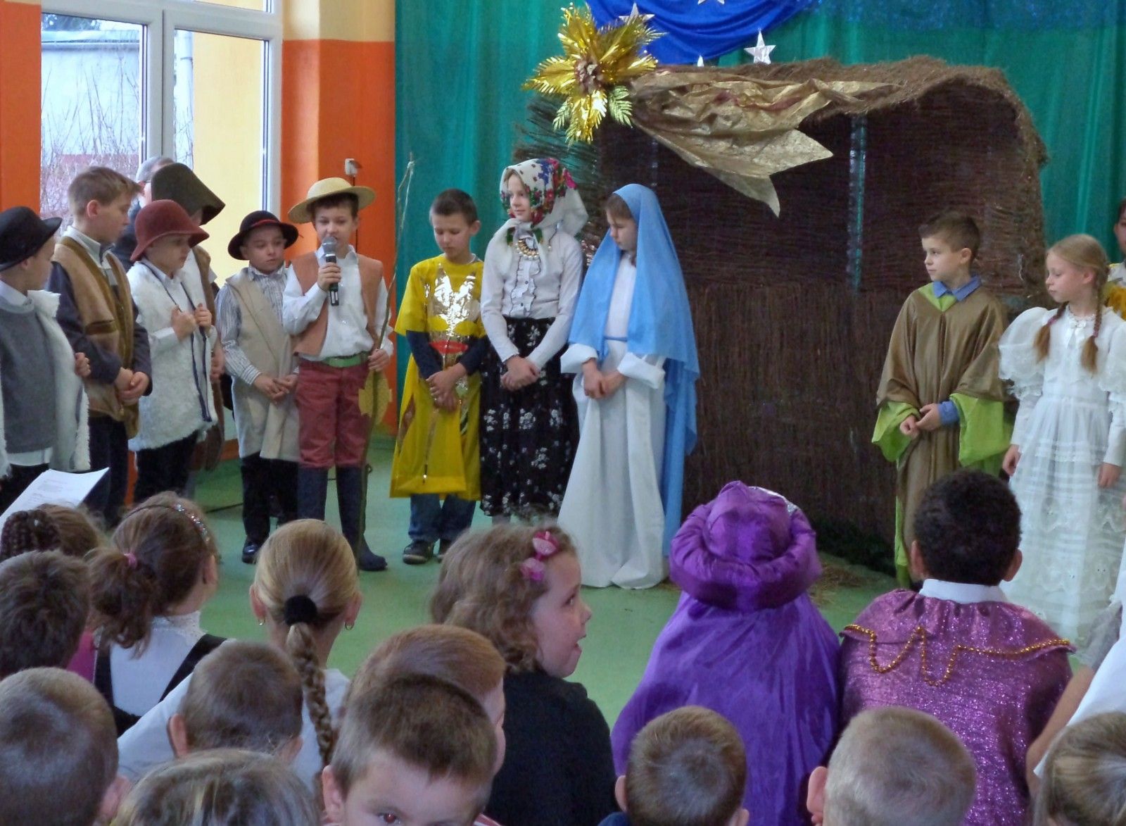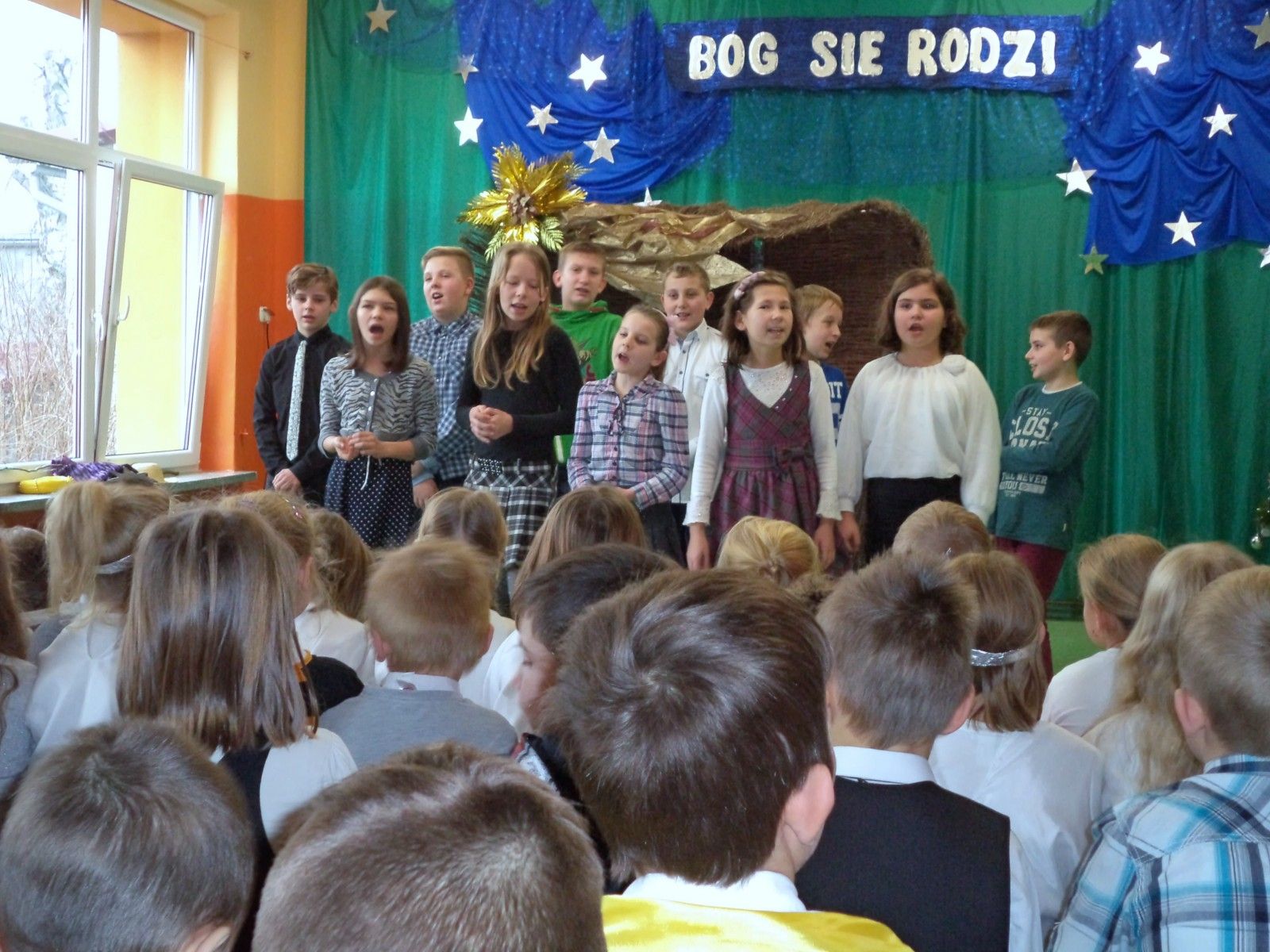 Tradycją naszej szkoły są coroczne jasełka przygotowane przez uczniów. Tegoroczne przedstawienie pt. „Bajkowe jasełka” przygotowały dzieci z klas I-III i odbyły się 22 grudnia w pięknie udekorowanej sali gimnastycznej. Wszystkich uczniów, nauczycieli i rodziców powitał dyrektor Waldemar Puchalski. Piękna scenografia i pierwsza kolęda pt.”Cicha noc” wprowadziły publiczność w świąteczny nastrój. Publiczność po raz kolejny mogła przeżyć historię Marii i Józefa szukających miejsca na noc. Zgodnie z tradycją była szopka bożonarodzeniowa, trzej królowie, pasterze, piękne anioły. Nowością w przedstawieniu były postacie z bajek: Kopciuszek, Calineczka, Królowa Śniegu, Rybak. Całość przedstawienia pokazująca scenki z życia nowonarodzonego dzieciątka, pasterzy, mędrców oraz aniołów przeplatana była kolędami. Dwie kolędy „Lulajże, Jezuniu” i „Pójdźmy wszyscy do stajenki” śpiewane były przy akompaniamencie akordeonu uczniów naszej szkoły Piotra Pawłowskiego i Juliana Lato. Ogólne wrażenie było bardzo pozytywne, wręcz wzruszające. Dzieci pokazały swoje umiejętności, potrafiły wydobyć z siebie swoje zdolności i pokazać to przed dużą publicznością. Na zakończenie zgromadzeni goście wysłuchali świątecznych życzeń i w radosnych nastrojach rozeszli się do sal, w których odbyły się klasowe spotkania wigilijne.