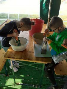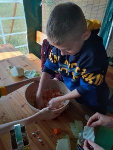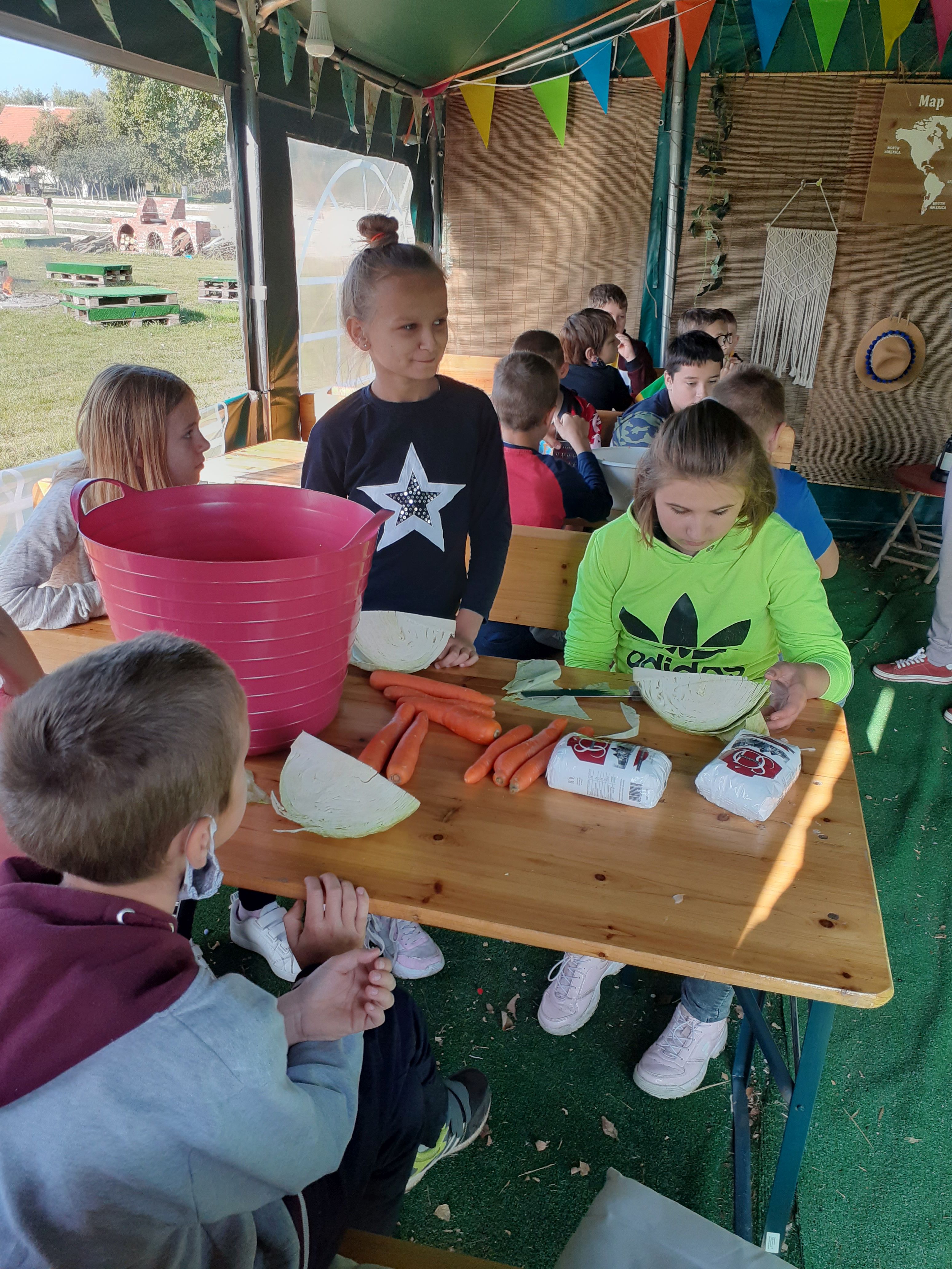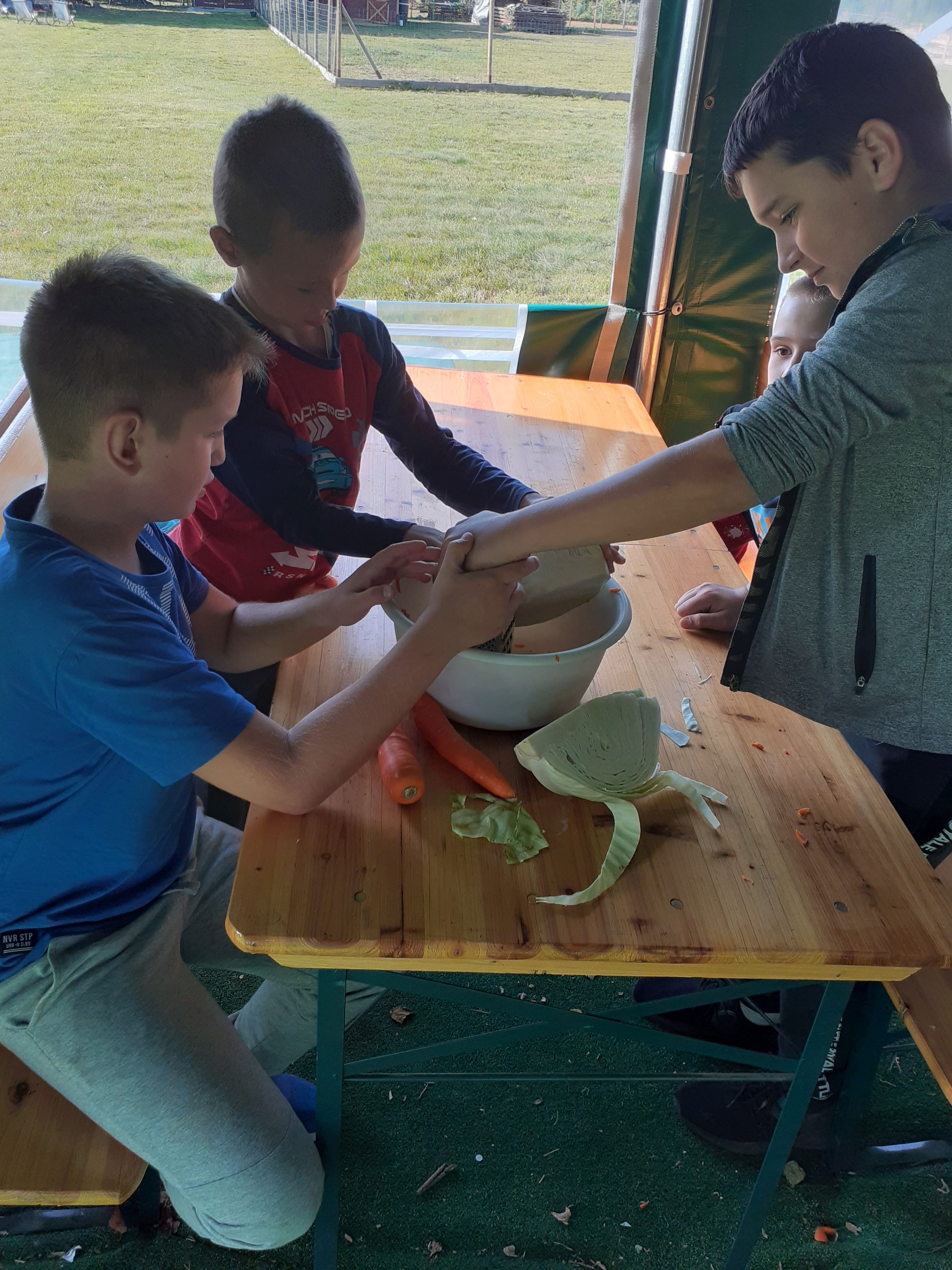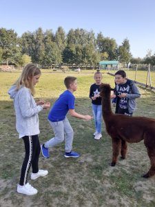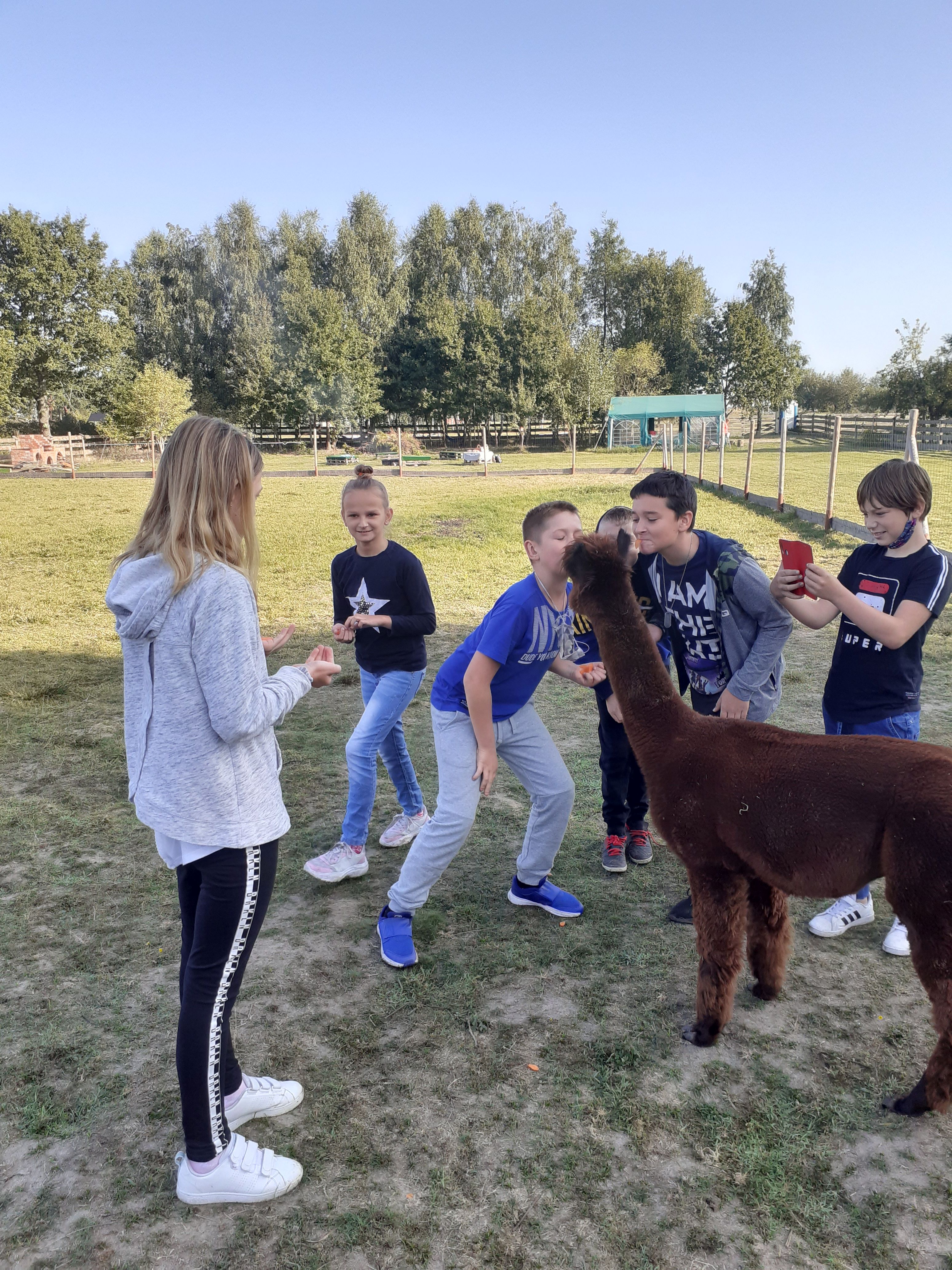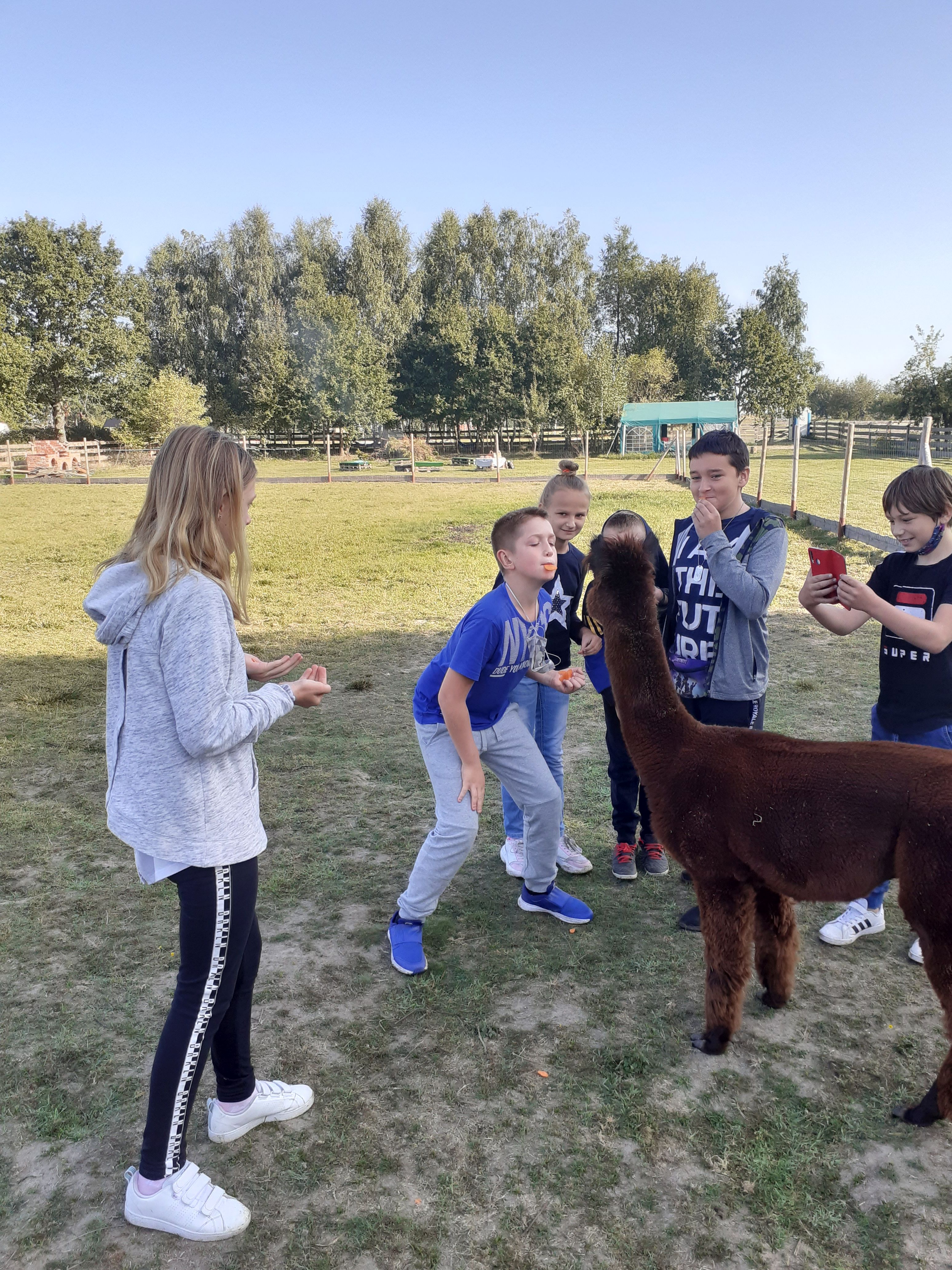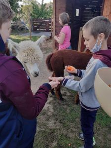 21 września Alpakową Zagrodę odwiedzili piątoklasiści. W czasie zajęć przygotowali alpakom ich ulubiony przysmak – marchewkę, poznali te interesujące zwierzęta. Dowiedzieli się skąd pochodzą, jak mieszkają, co lubią a czego nie. W dalszej części zajęć poznali etapy kiszenia kapusty : szatkowali, ugniatali. Po ciężkiej pracy odpoczywali przy ognisku. Pieczone kiełbaski dodały energii przed powrotem do szkoły. To był ciekawy i udany dzień.