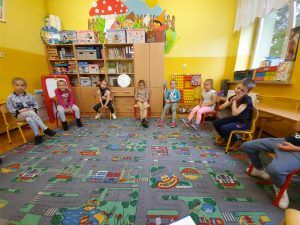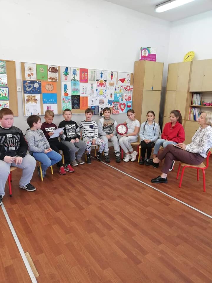 Uczniowie z uśmiechem na twarzach wysłuchali kociej opowieści Pani Haliny Bohuty-Stąpel.