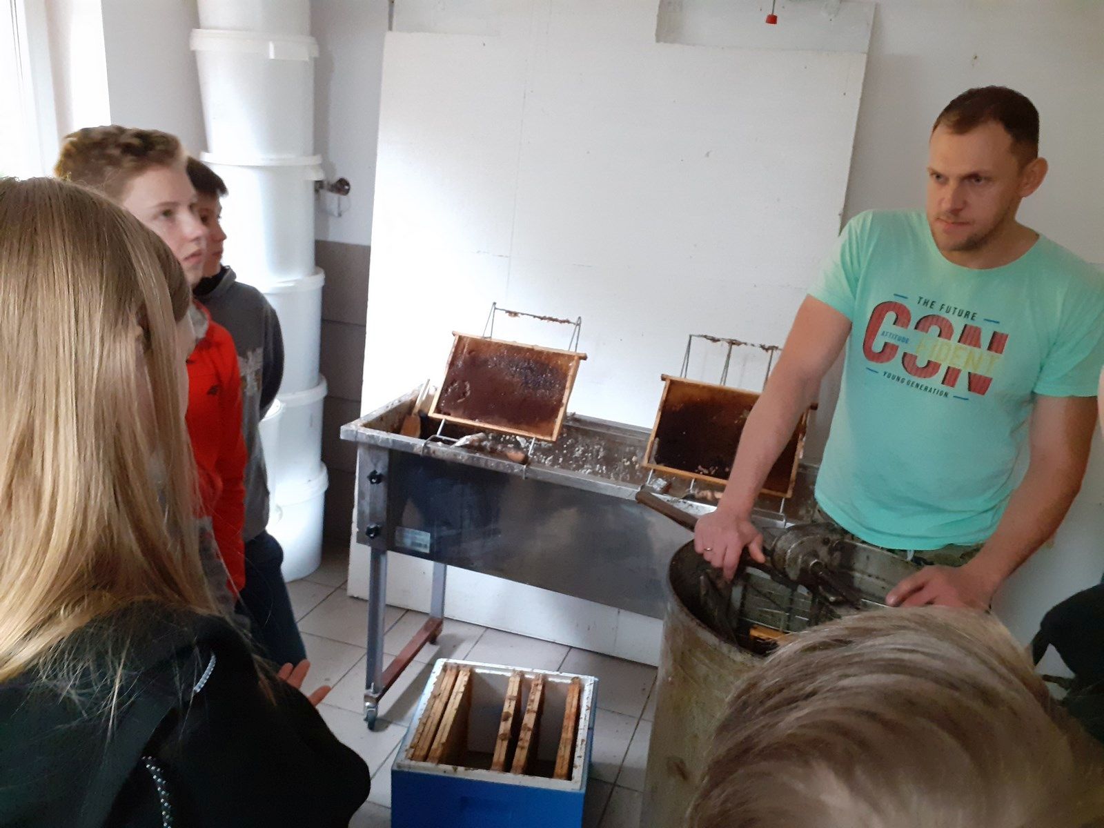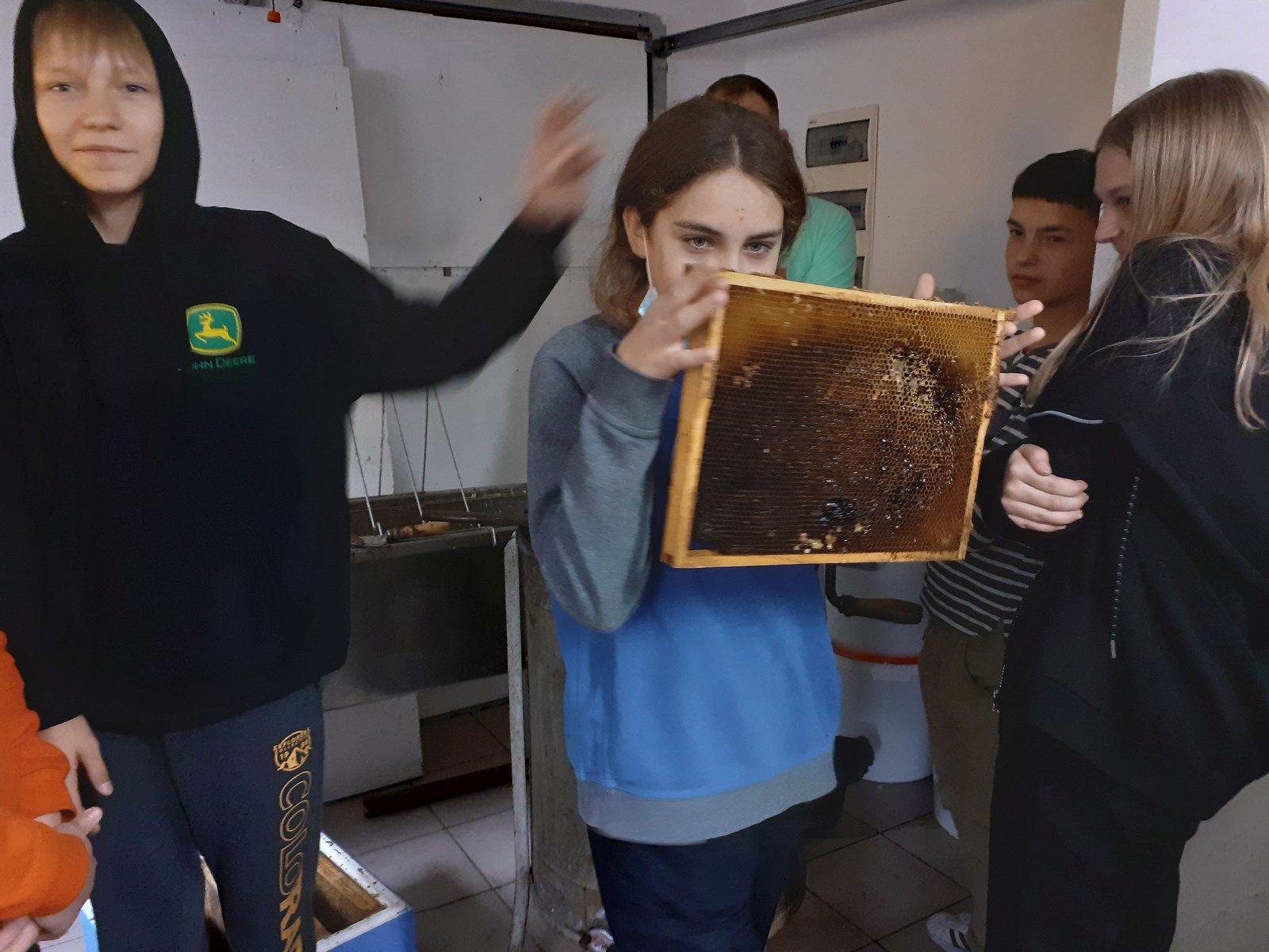 Właściciel pasieki przybliżył nam technologię wytwarzania miodu. Wprowadził nas w sekrety życia pszczół. Poznaliśmy rożne rodzaje miodu i ich dobroczynny wpływ na nasze zdrowie. Dowiedzieliśmy się ile lat i w jakich szkołach należny się kształcić aby zdobyć zawód pszczelarza. Znaleźliśmy też chwilę aby odwiedzić bardzo zadbanym plac zabaw w Radomi. Zajęcia odbyły się w ramach realizacji Projektu” Świat Nauki”.
