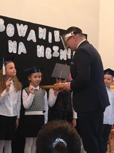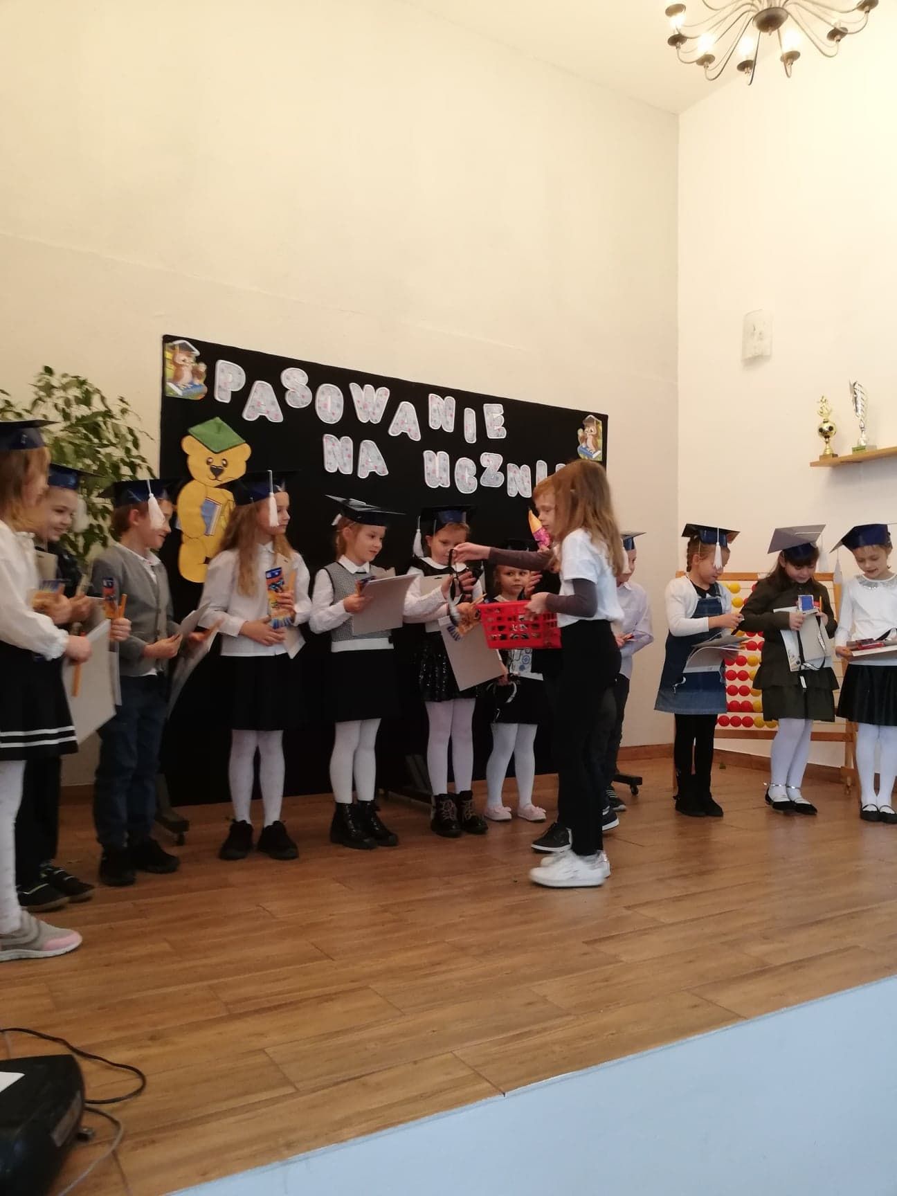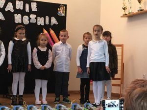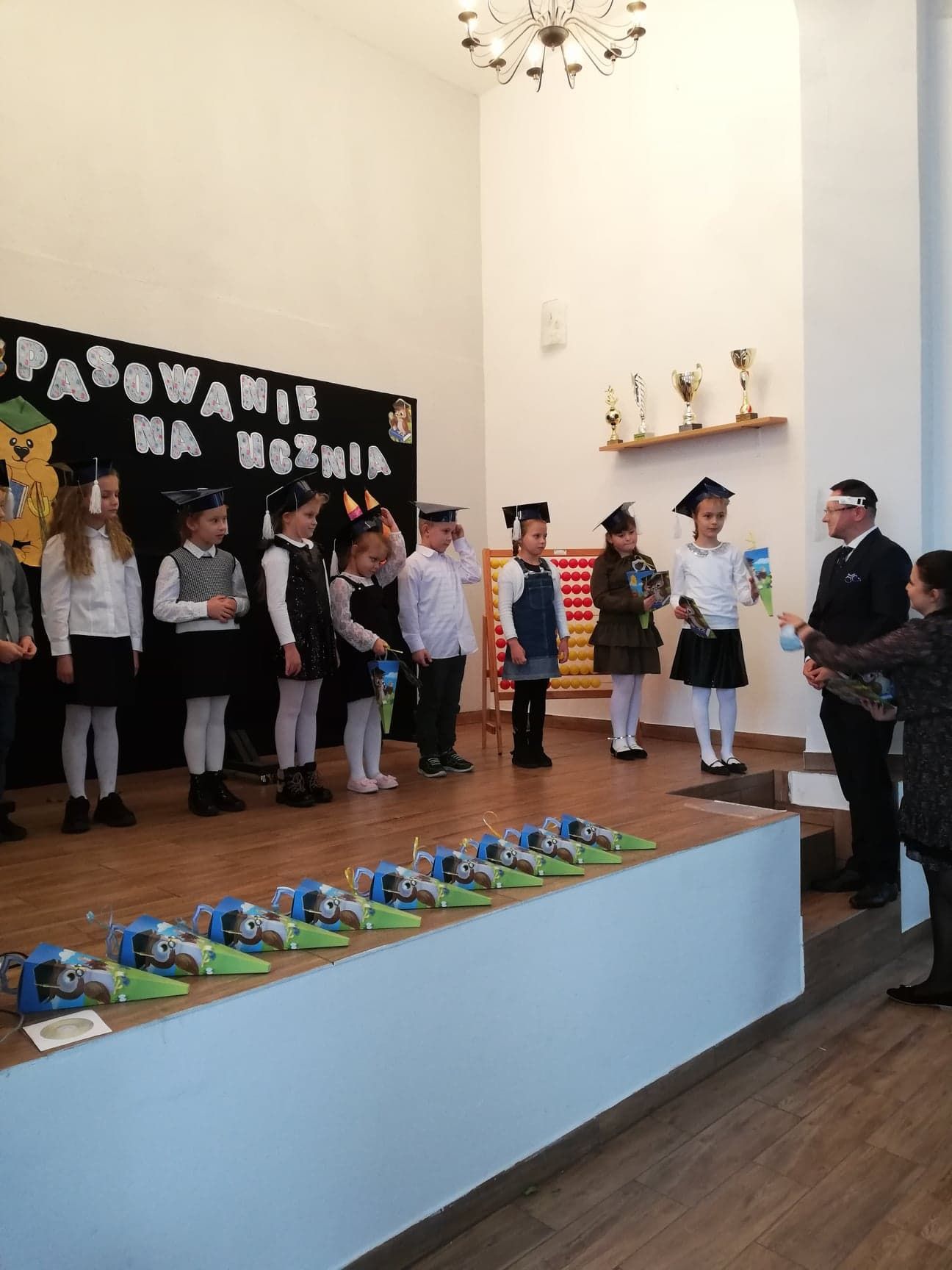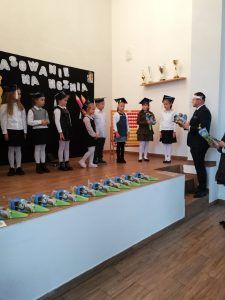 Najważniejszym elementem uroczystości było złożenie przez dzieci ślubowania oraz pasowanie na uczniów. Na koniec dzieci otrzymały pamiątkowe dyplomy oraz nagrody przygotowane przez klasę II i III, SKO oraz wychowawcę.
