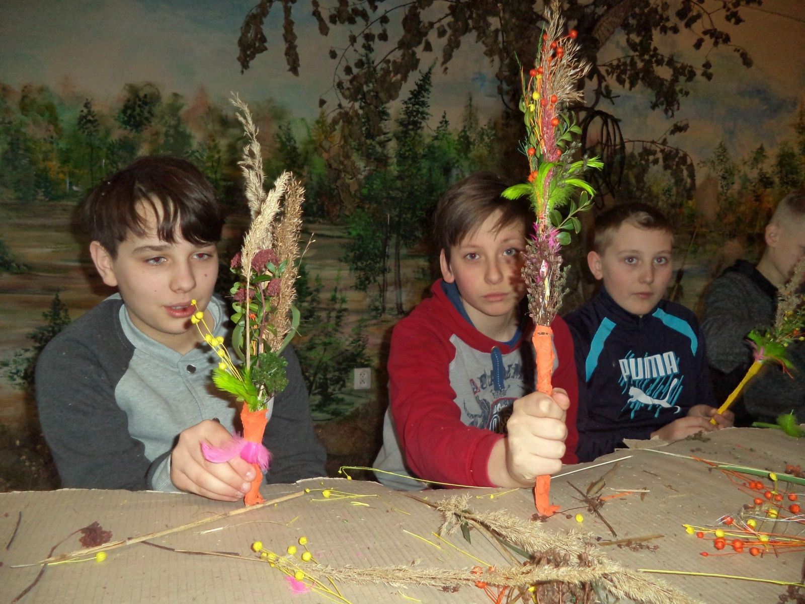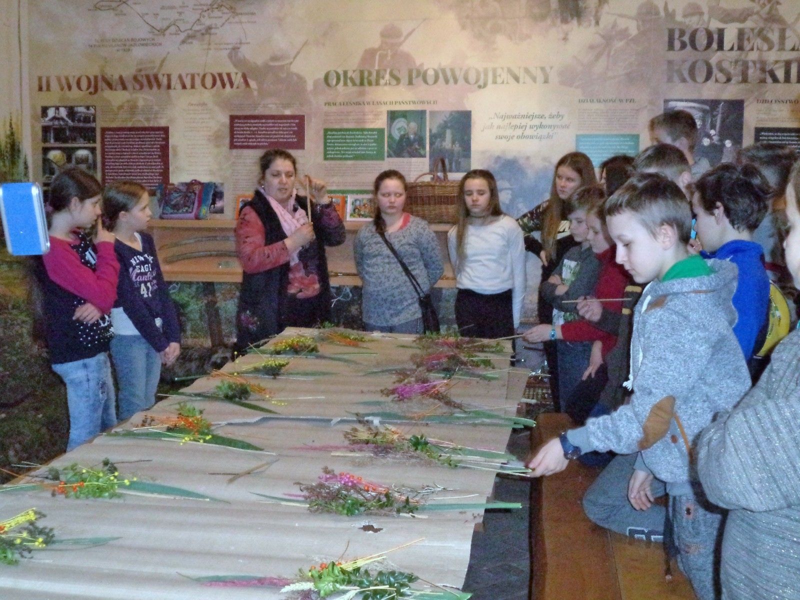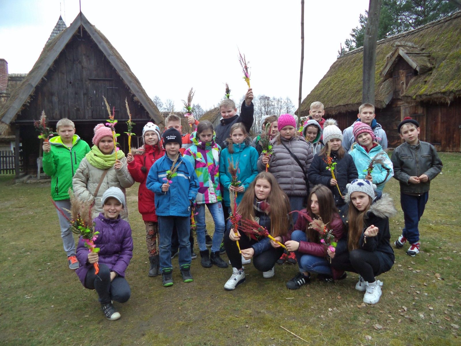 W ramach przygotowań do Świąt Wielkanocnych uczniowie klasy IV, V i VI wybrali się do Skansenu w Ochli. Uczestniczyli w warsztatach etnograficznych, podczas których zdobywali umiejętność wicia wileńskich palm wielkanocnych. Z suszonych traw, lnu, liści tataraku, piórek i bibuły powstały bardzo ciekawe prac, które z powodzeniem mogły stać się dekoracją wielkanocnego koszyczka lub stołu. Zajęcia zorganizowane zostały w sali. w której wyeksponowano zmumifikowane ssaki i ptaki. Uczniowie mogli sprawdzić znajomość nazw zgromadzonych gatunków i z bliska przyjrzeć się zwierzętom, które zazwyczaj unikają kontaktu z człowiekiem. Spacer między starą zabudową wiejską, uświadomił nam, jak bardzo zmieniła się dzisiejsza wieś.