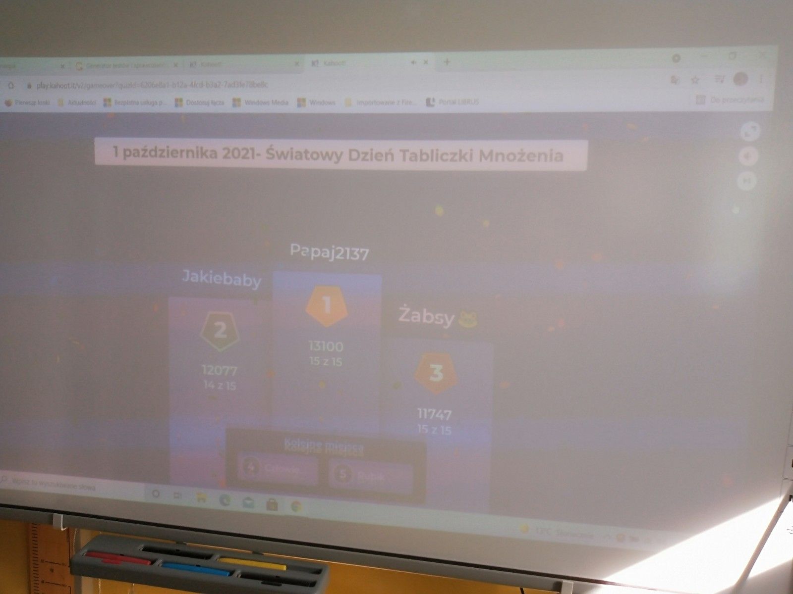 W czasie przerwy dodatkowo odbył się konkurs tabliczki mnożenia dla wszystkich uczniów w aplikacji Kahoot. Zwycięzcami zostały zespoły: