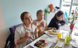 Turystyczny poniedziałek – coś dla głowy, mięśni i brzucha. Klasy: czwarta, szósta i ósma spędziły poniedziałek w Zielonej Górze. Najpierw z Panią przewodnik zwiedziliśmy zielonogórską starówkę. Poznaliśmy historię miasta, ciekawe miejsca oraz poszukiwaliśmy bachusików i bachantek. Utraconą podczas spaceru energię odzyskaliśmy dzięki pysznym naleśnikom. Korzystając z ładnej pogody i sytości pobawiliśmy się i potrenowaliśmy na placach zabaw i siłowniach znajdujących się w Parku Piastowskim. Czwarta klasa zdążyła nawet wdrapać się na Górę Tatrzańską.