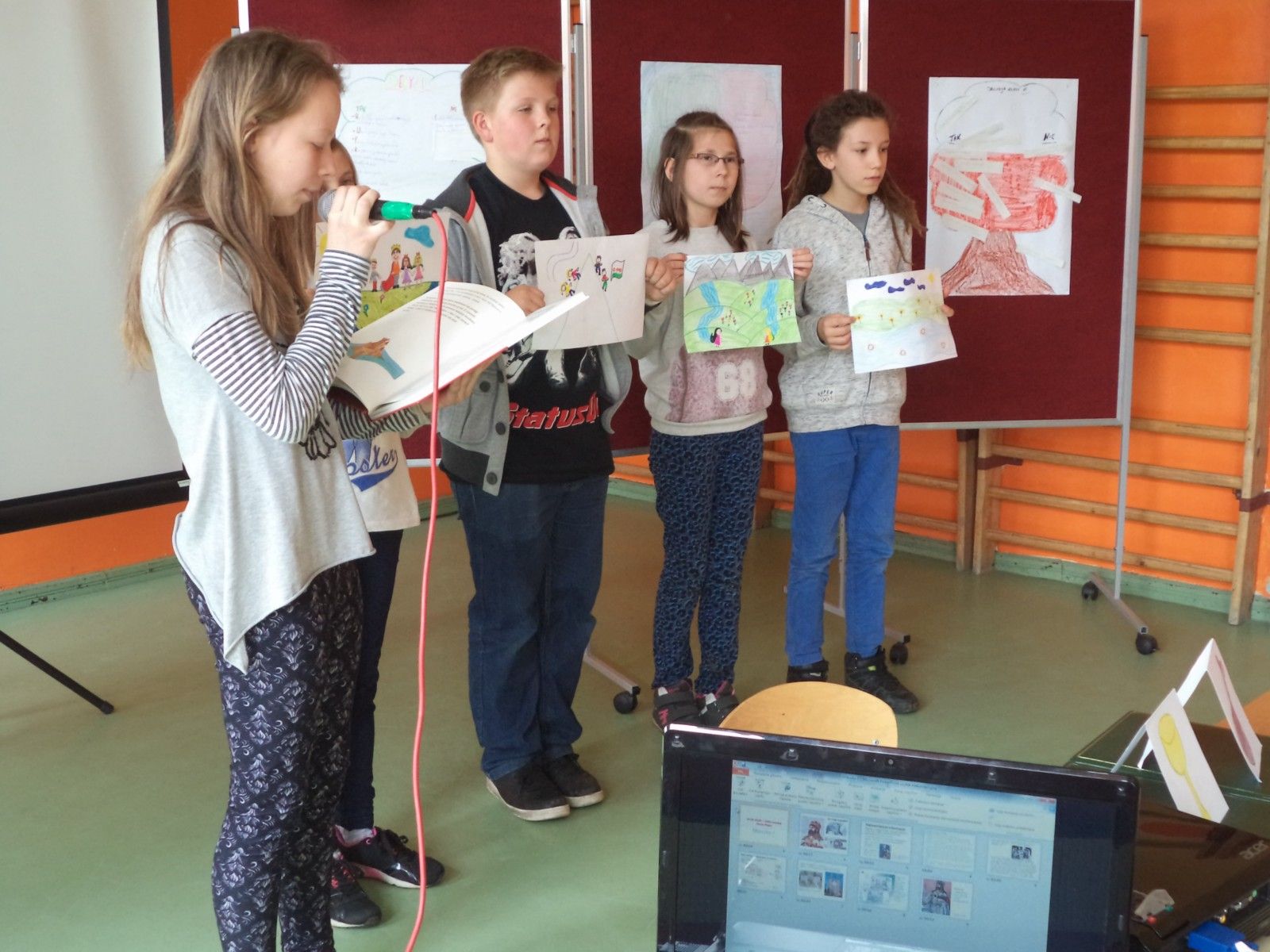 Efekty prac warsztatowych podziwiali wszyscy uczniowie podczas ciekawych prezentacji multimedialnych i scenek dramowych.